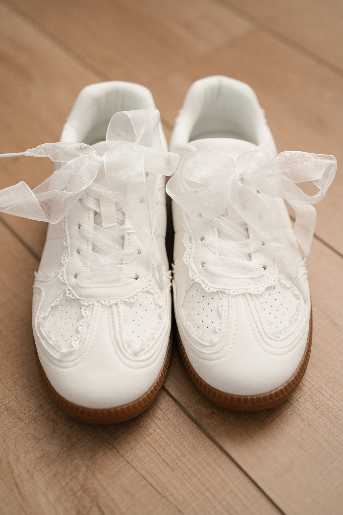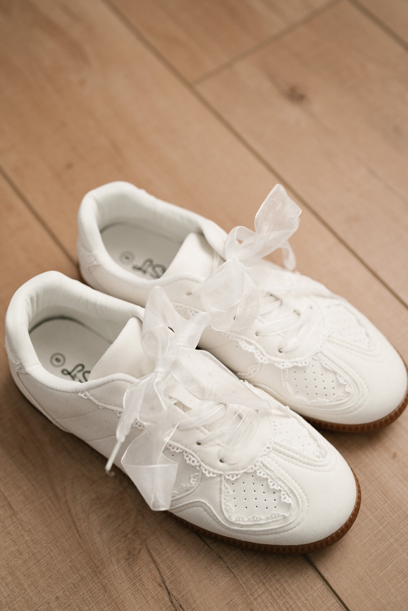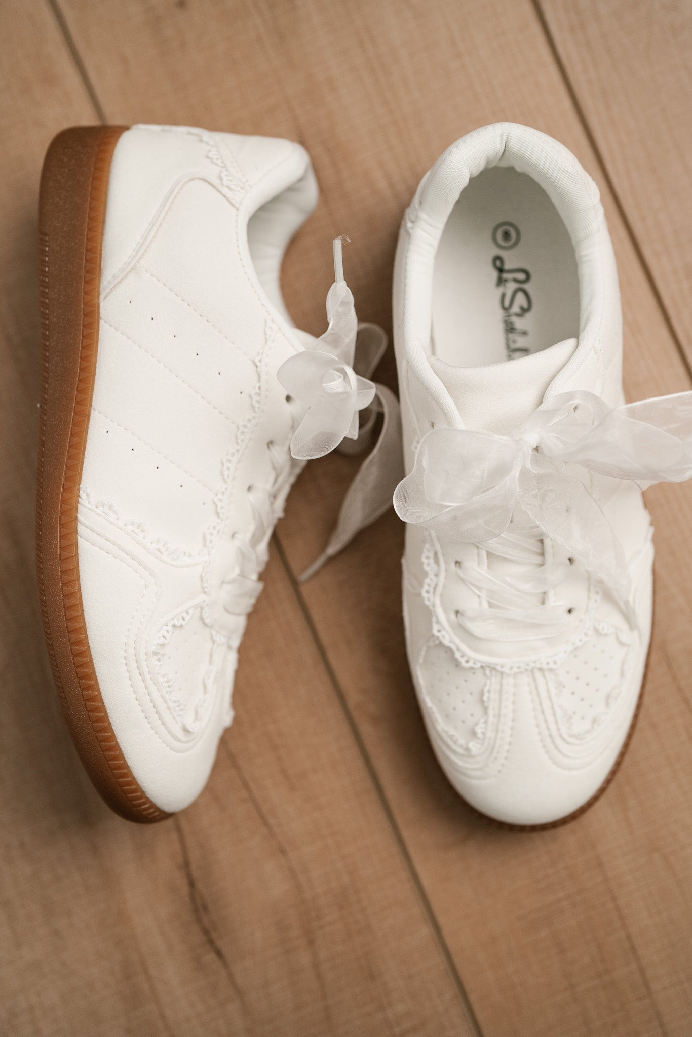 Bright Path Elegant Lace Trim Ribbon Sneakers - Vintage Inspired Comfort Shoes