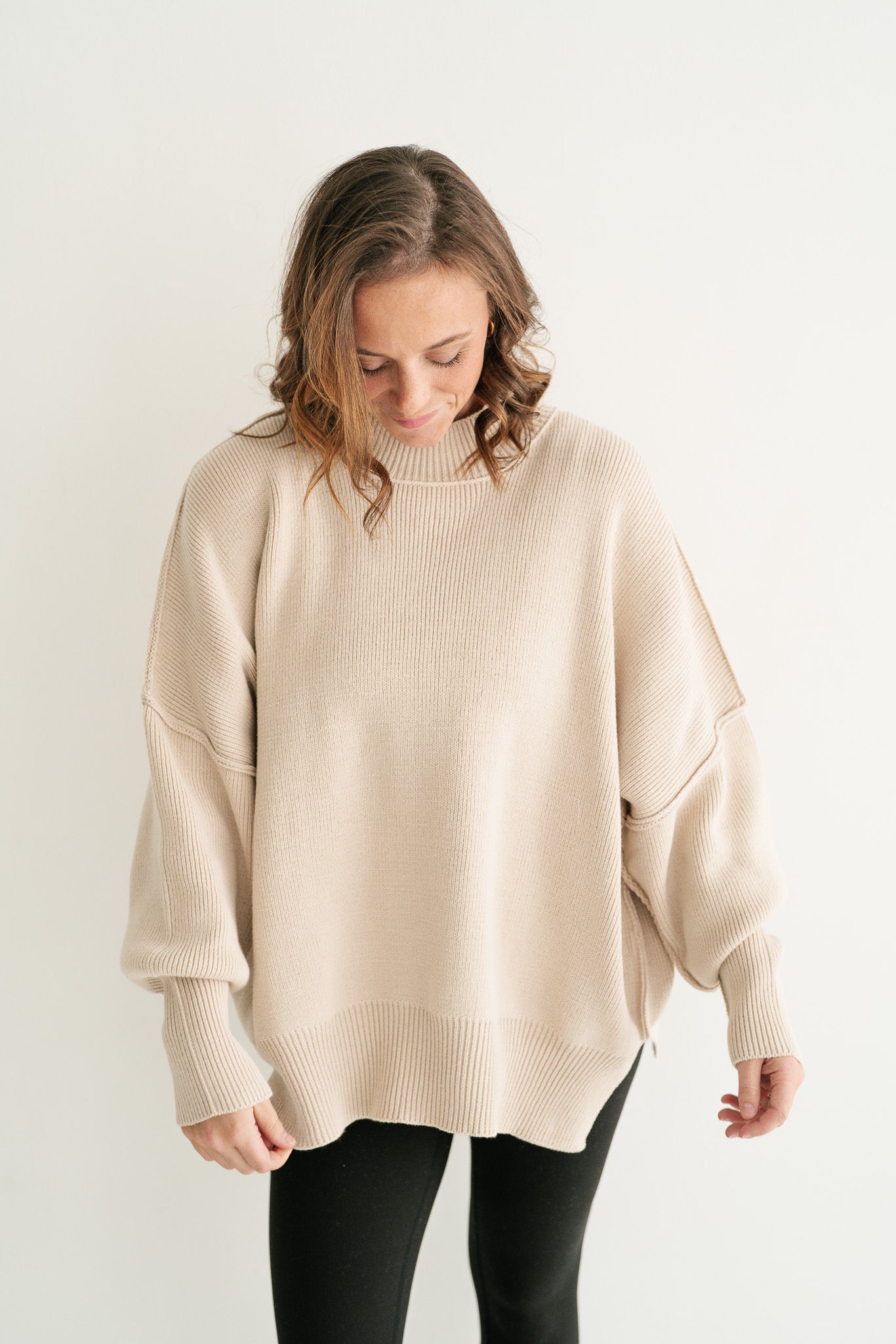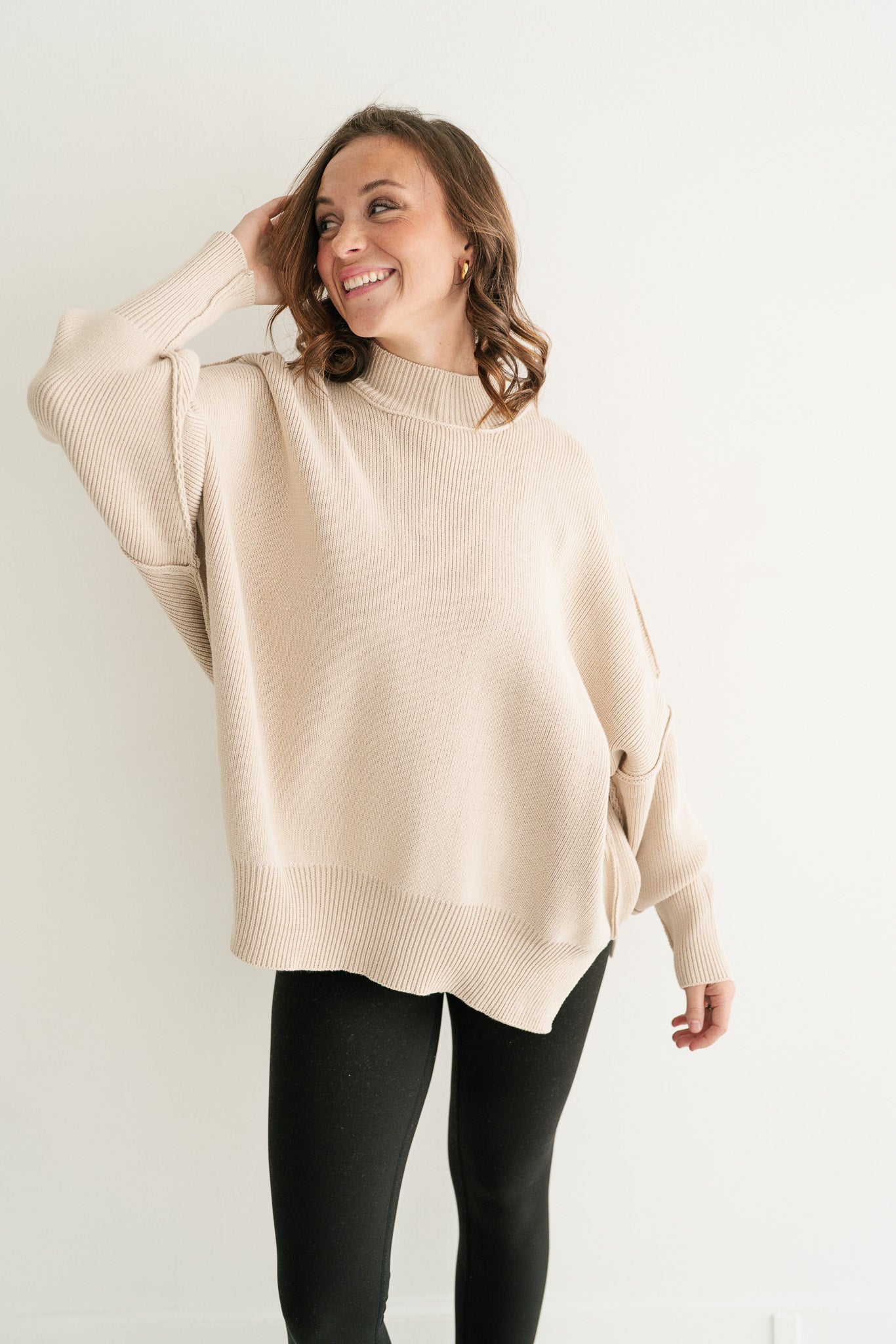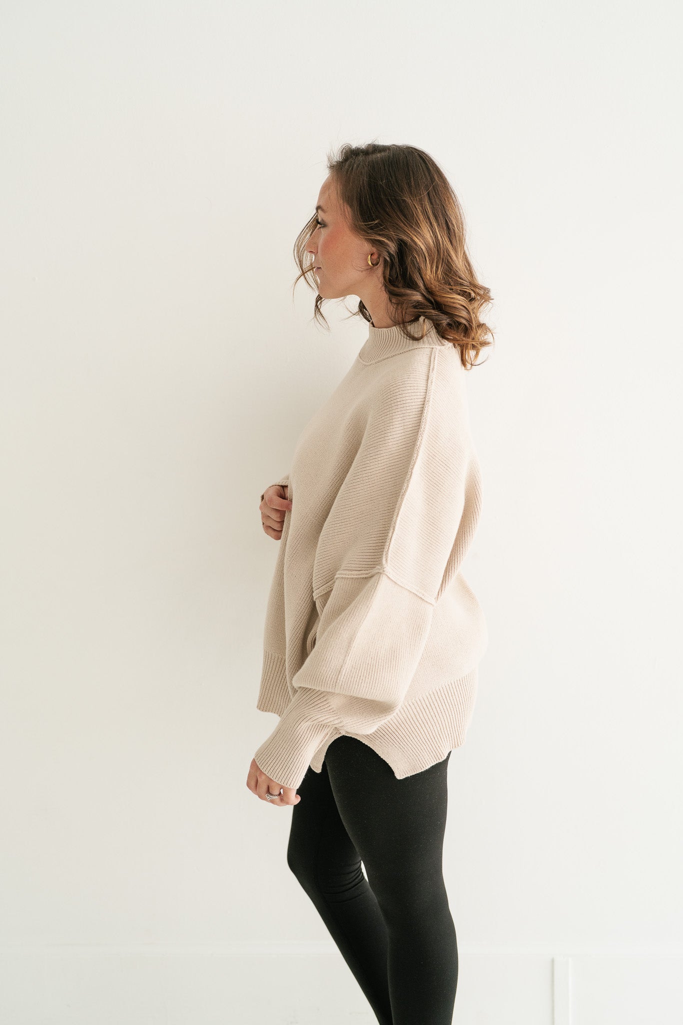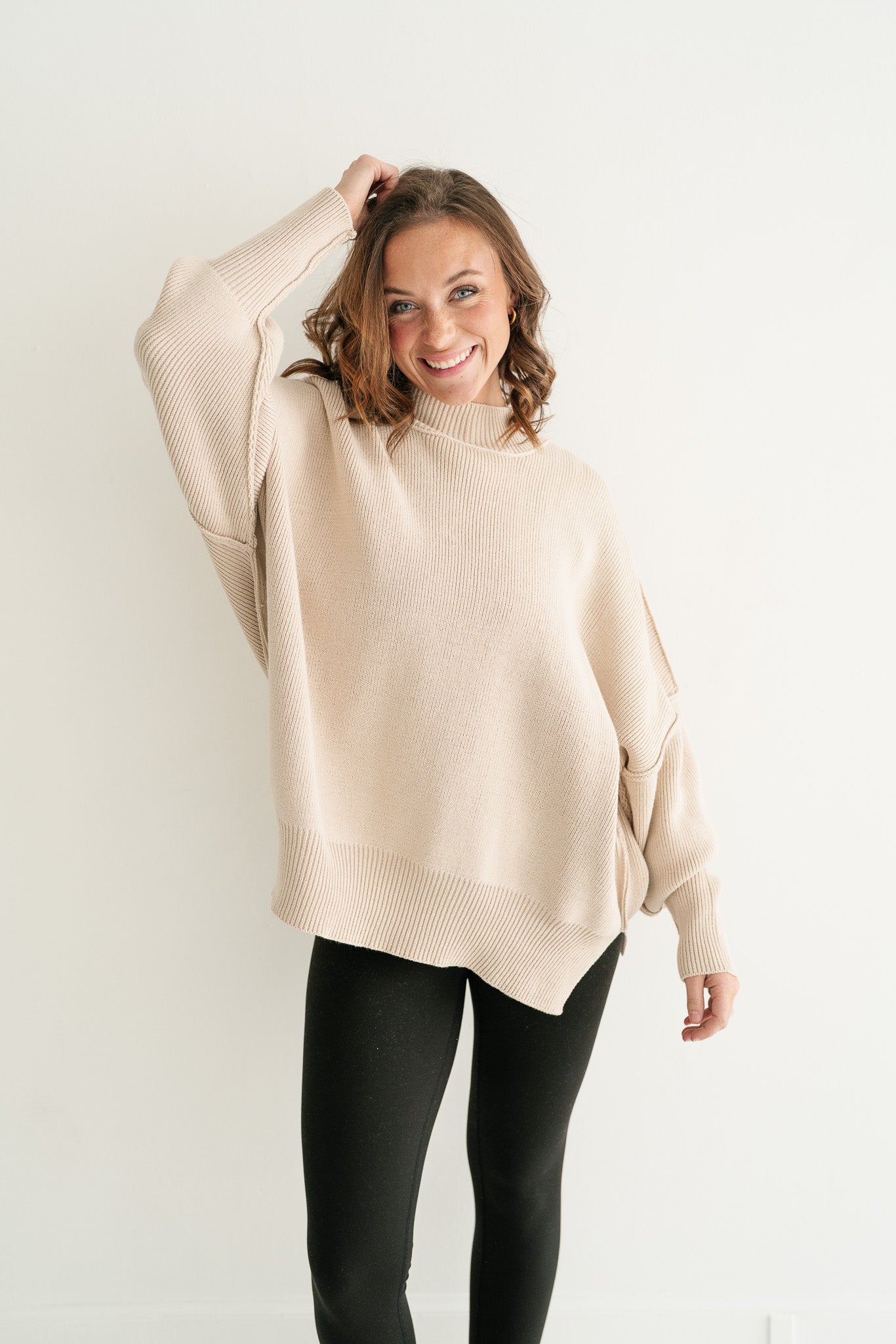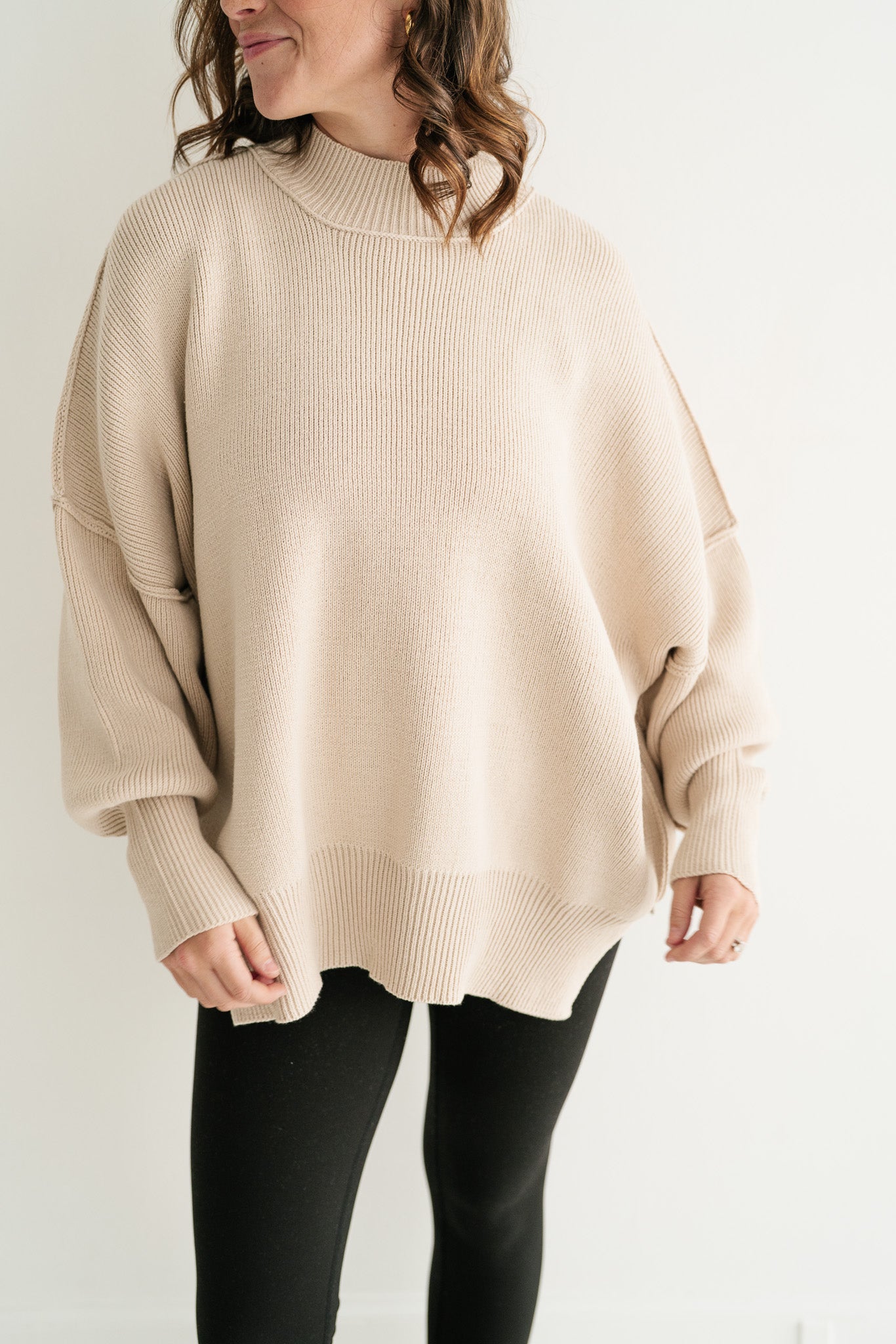 Misty Ridge Oversized Ribbed Mock Neck Sweater – Relaxed Fit Tunic for Women