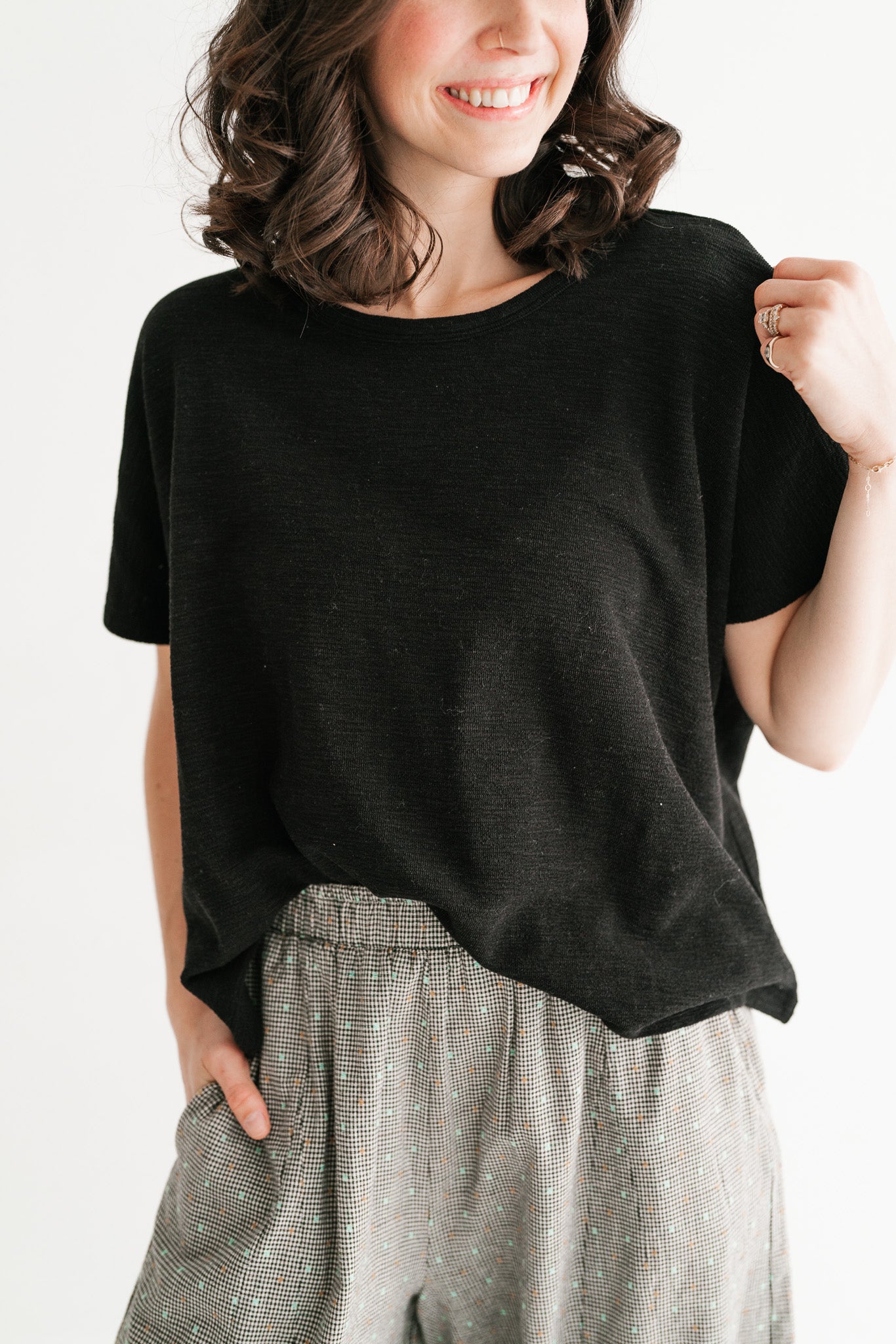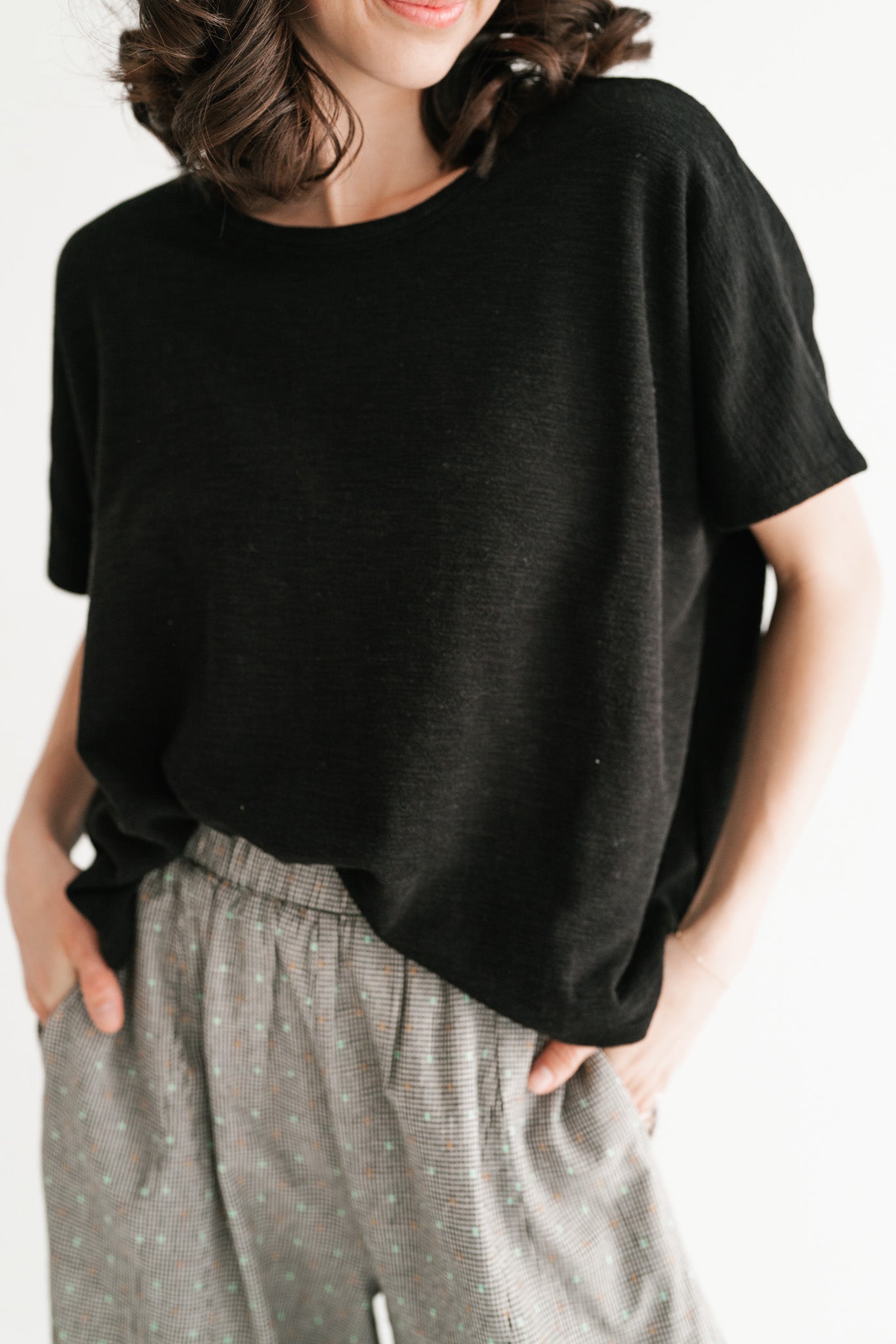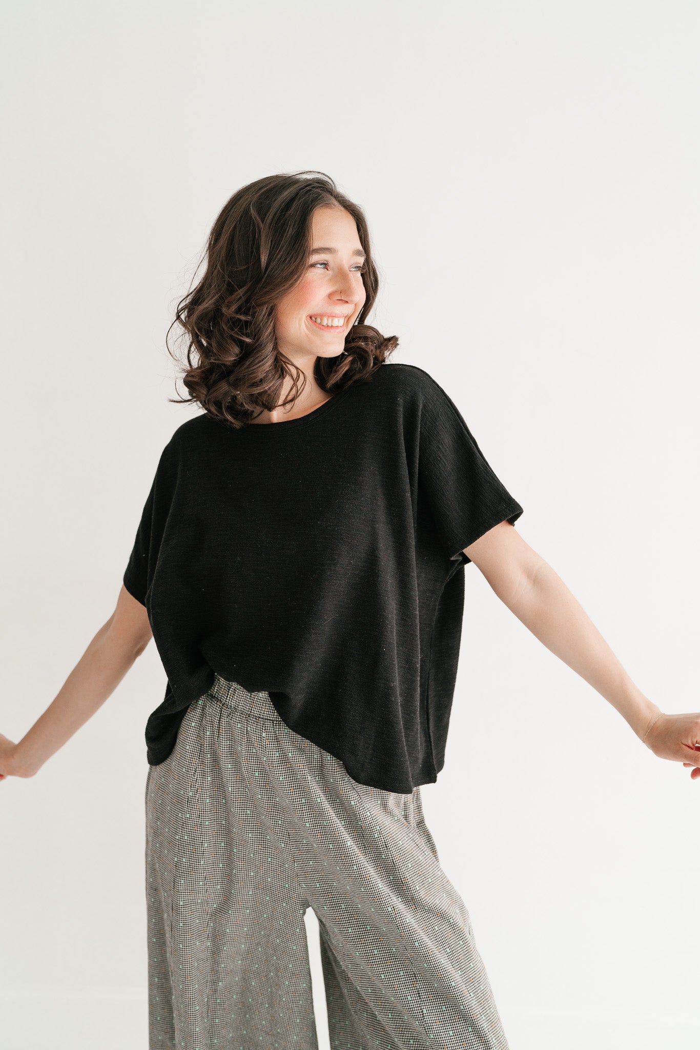 Pure Ease Women’s Oversized Slub Cotton Top – Black | Effortless Relaxed Fit Everyday Top