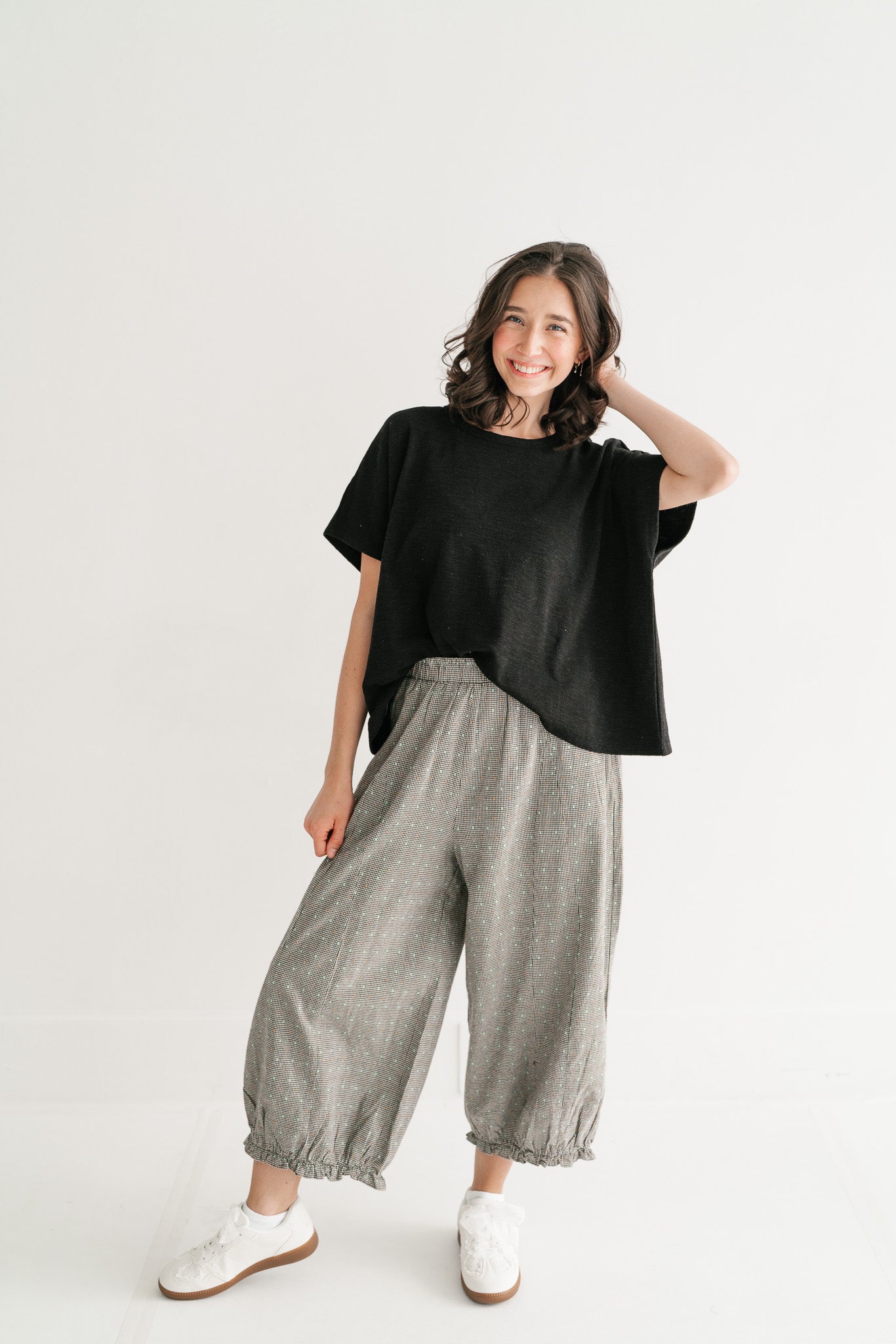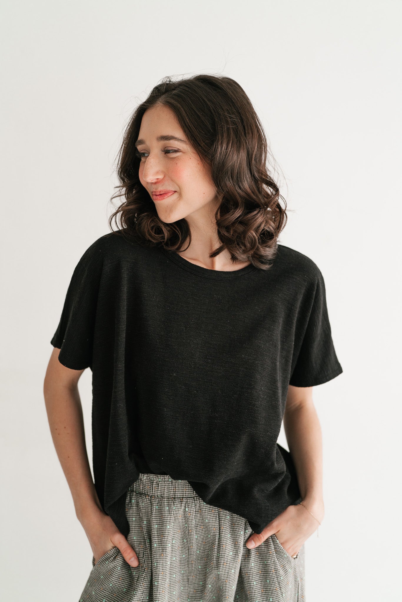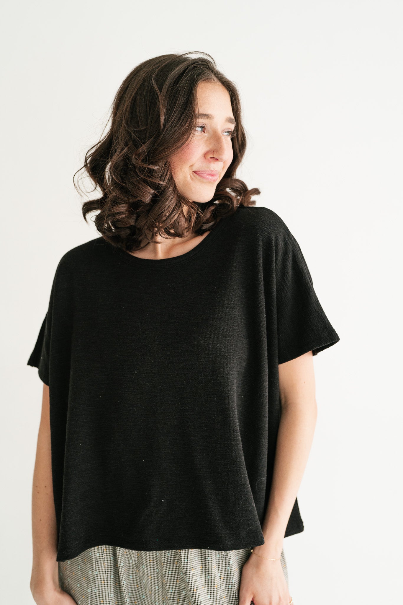 Pure Ease Women’s Oversized Slub Cotton Top – Black | Effortless Relaxed Fit Everyday Top