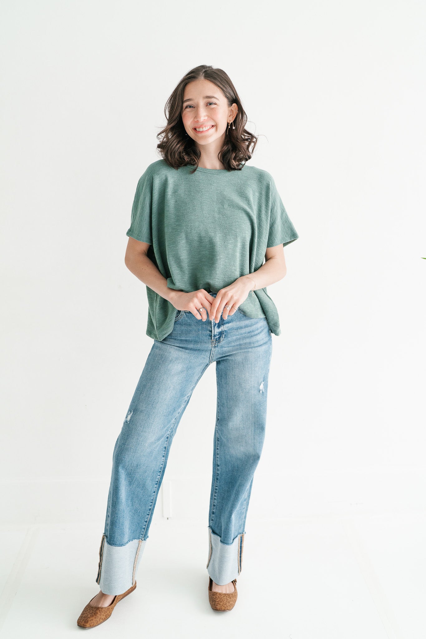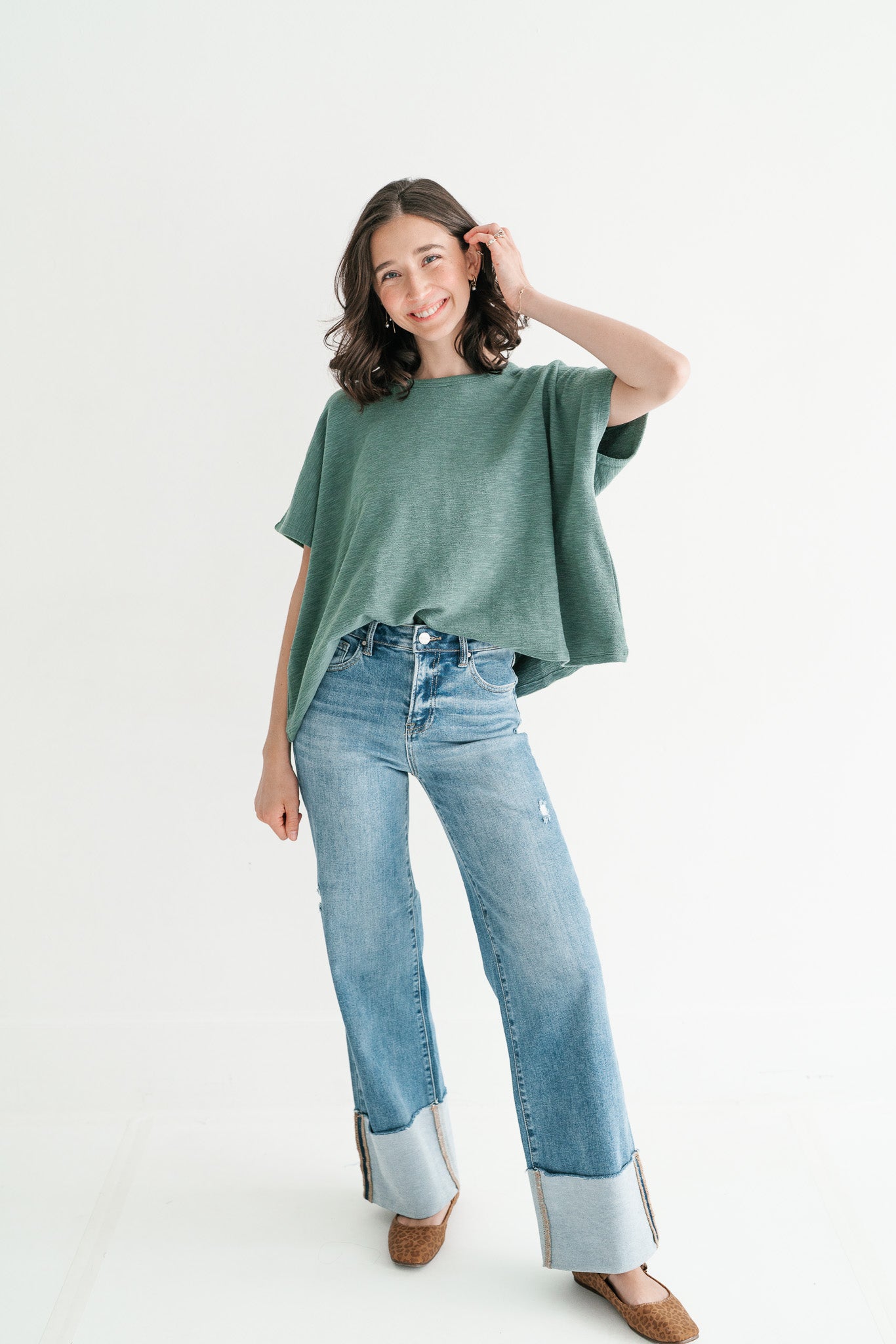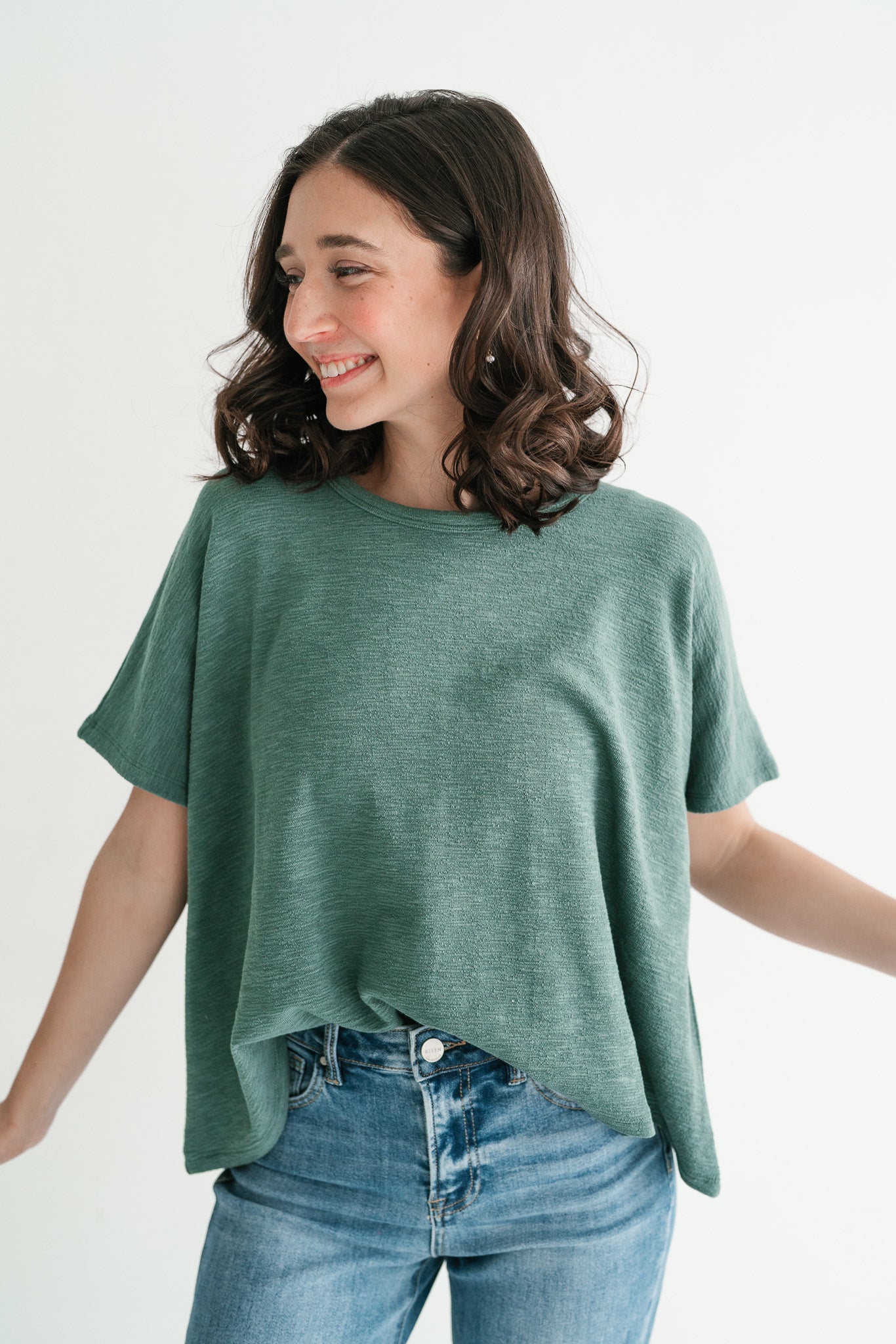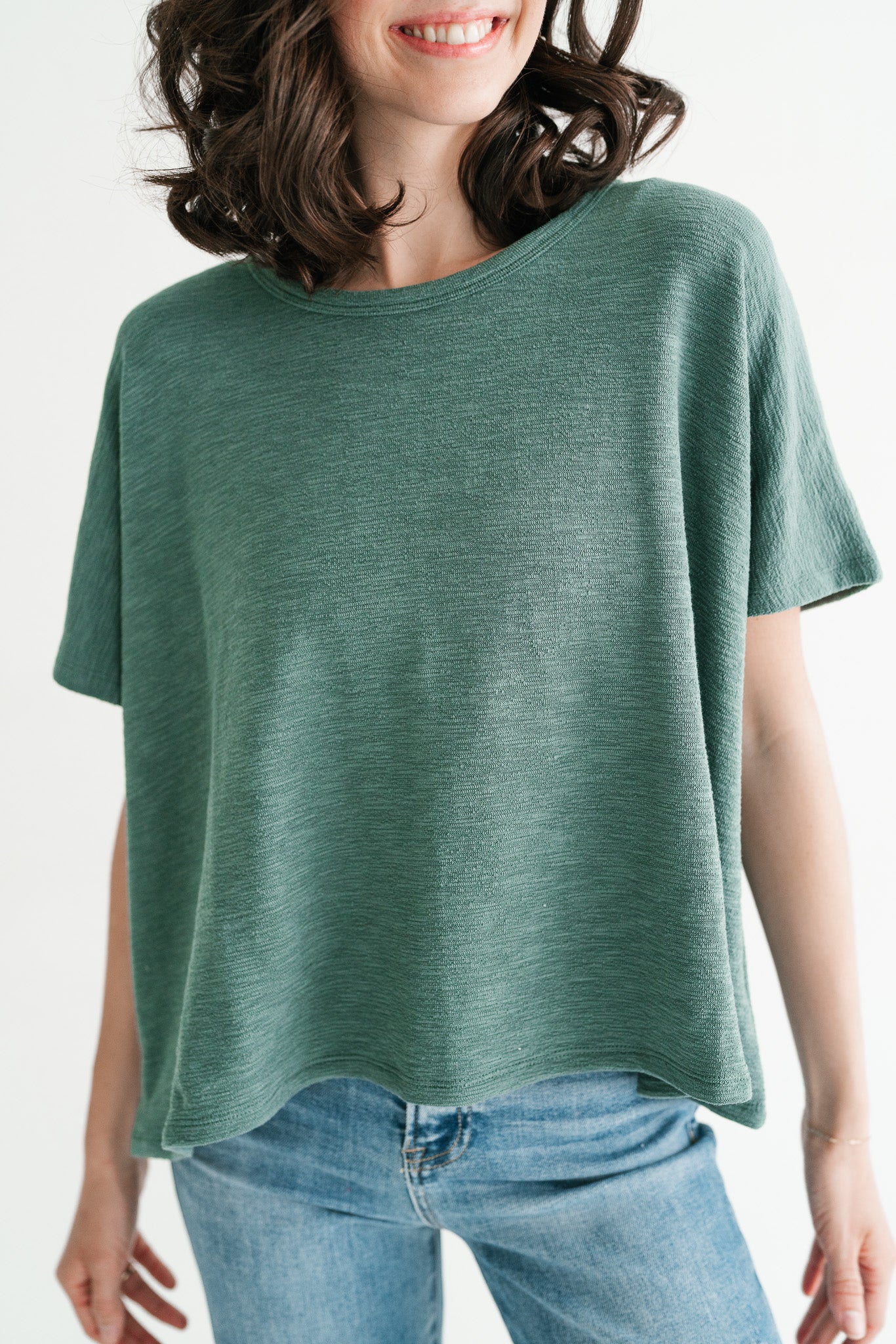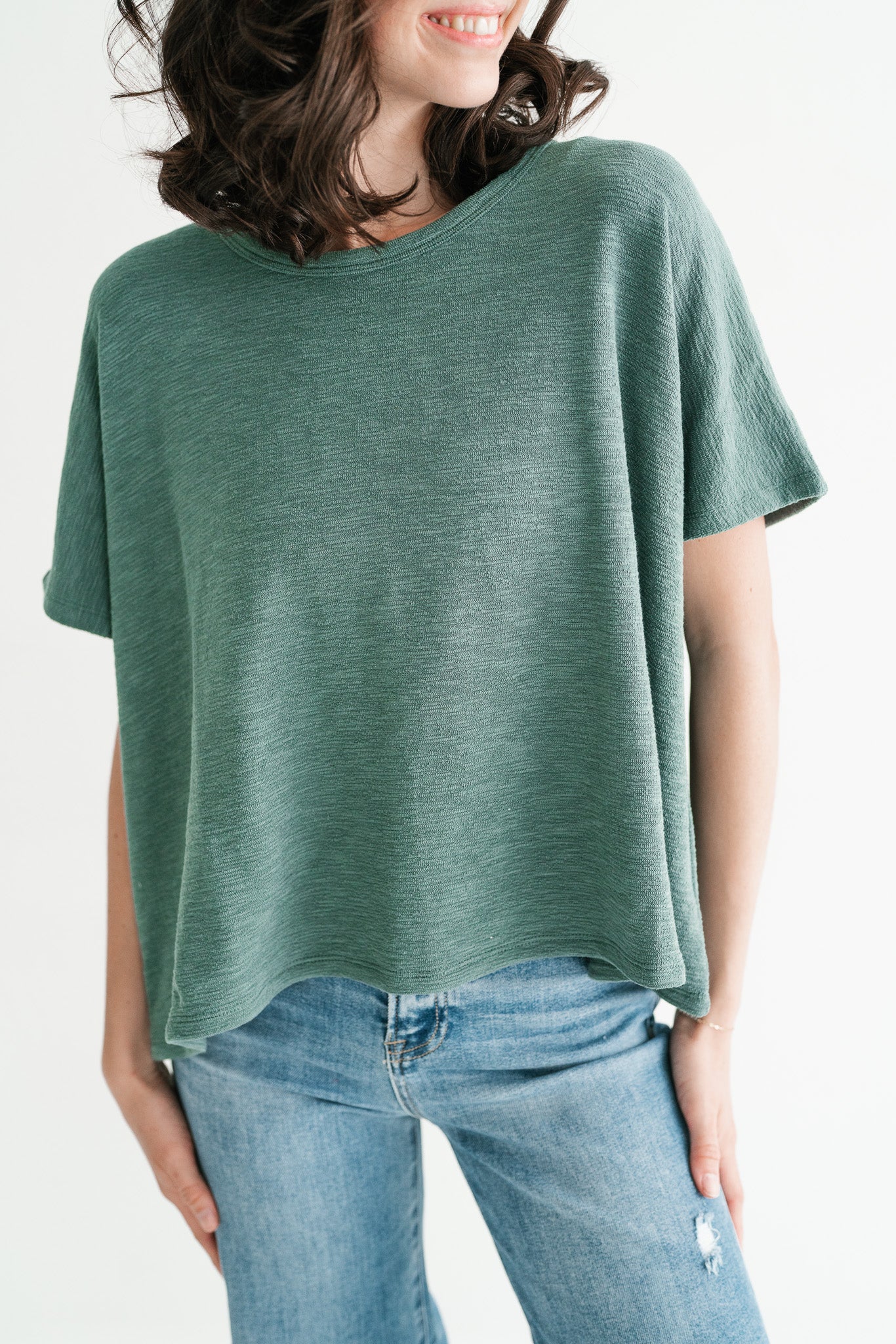 Pure Ease Women’s Oversized Slub Cotton Top – Deep Teal | Effortless Relaxed Fit Everyday Top