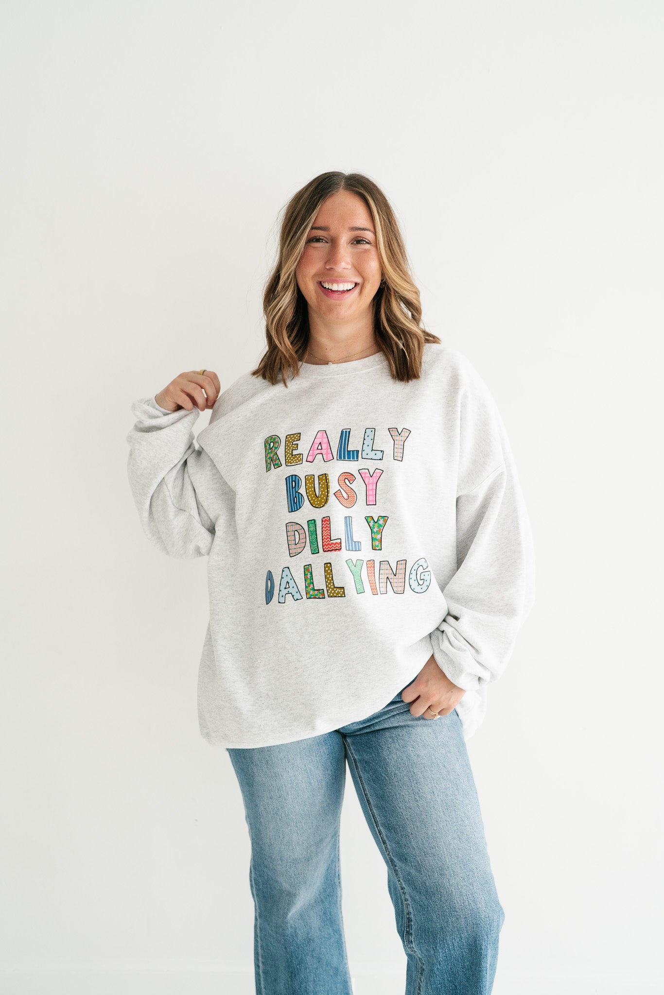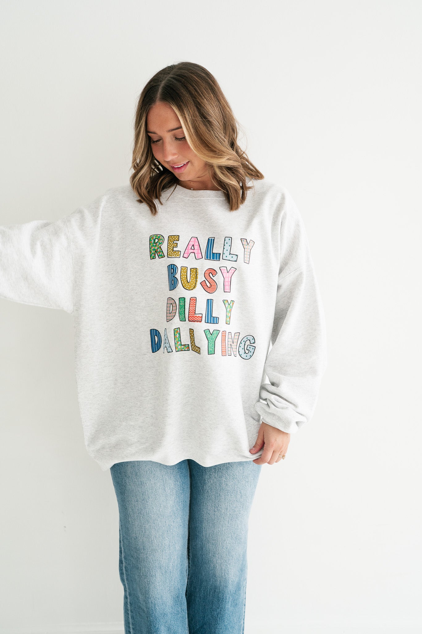 "Really Busy Dilly Dallying" Humorous Crewneck Sweatshirt | Ultra-Soft Cozy Graphic Pullover