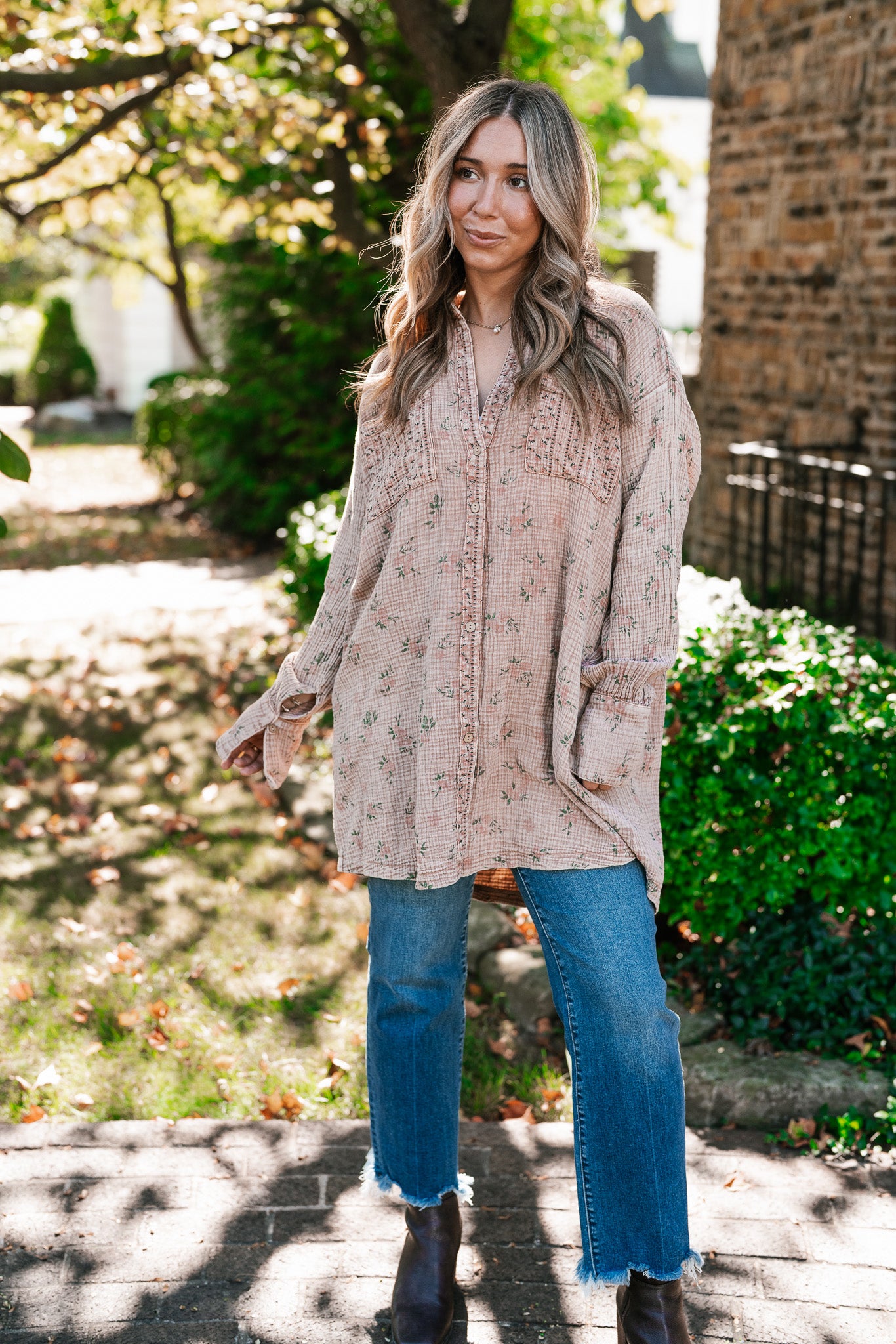 Peaceful Meadow Collared Gauze Tunic – Oversized Button Front Cotton Dress