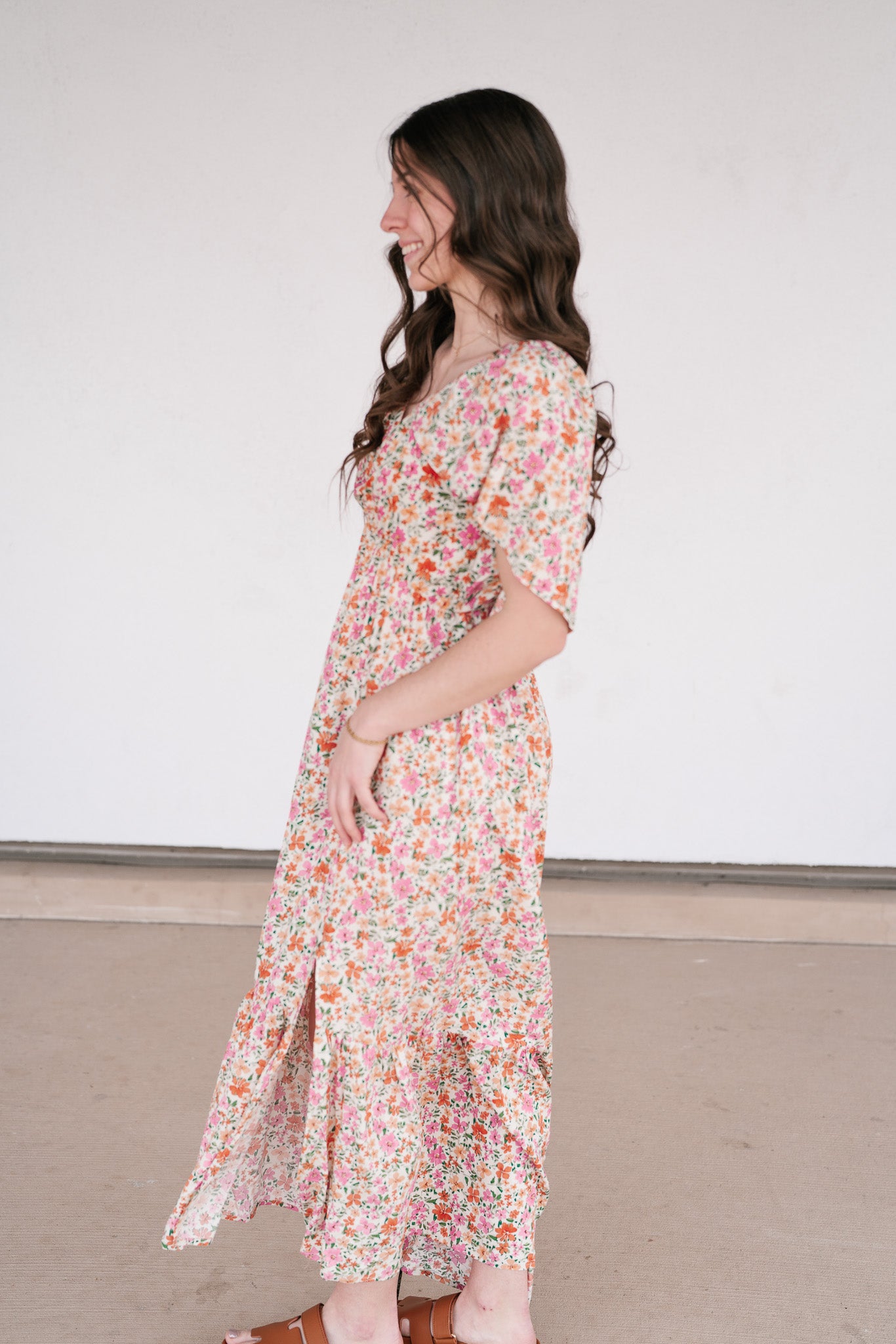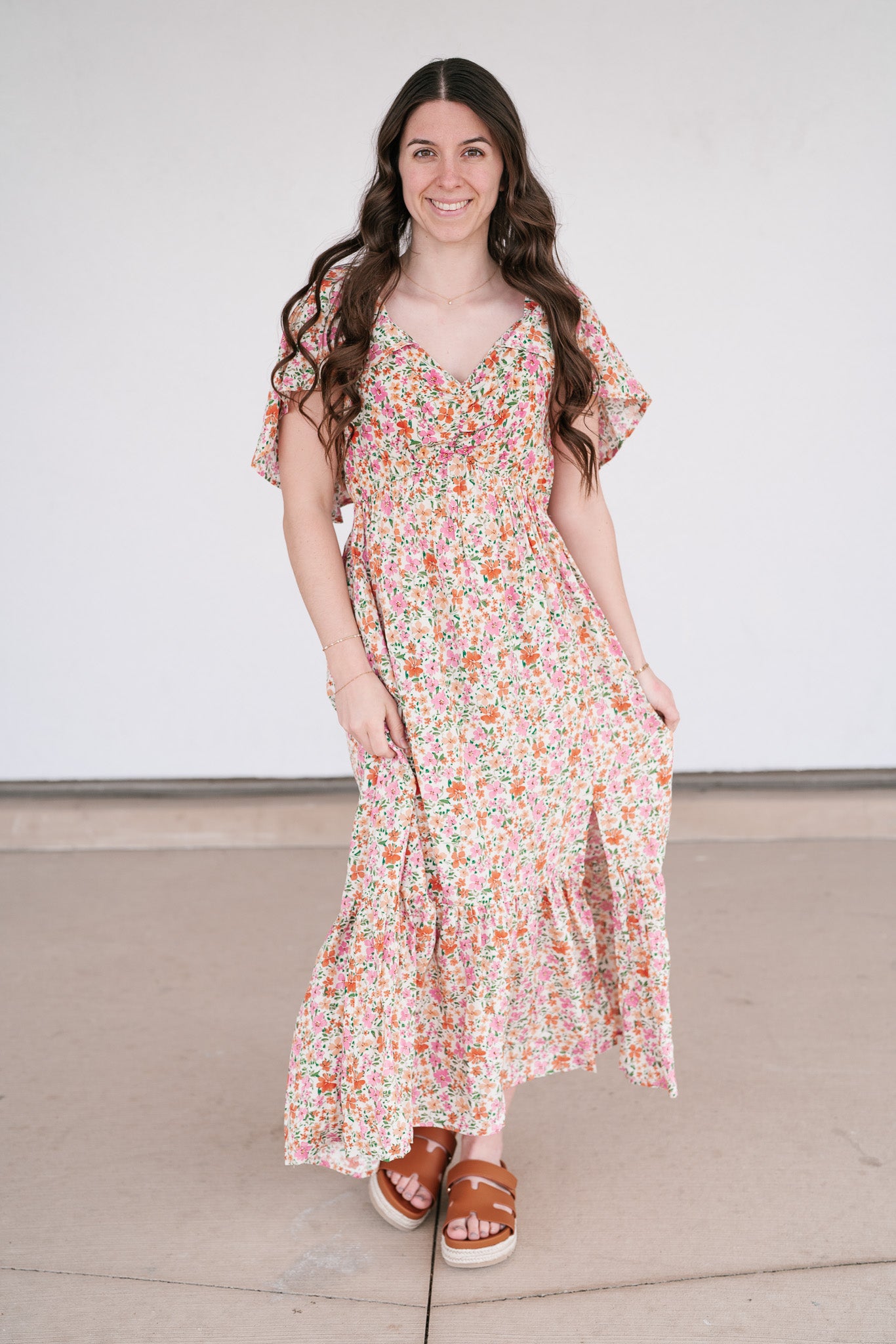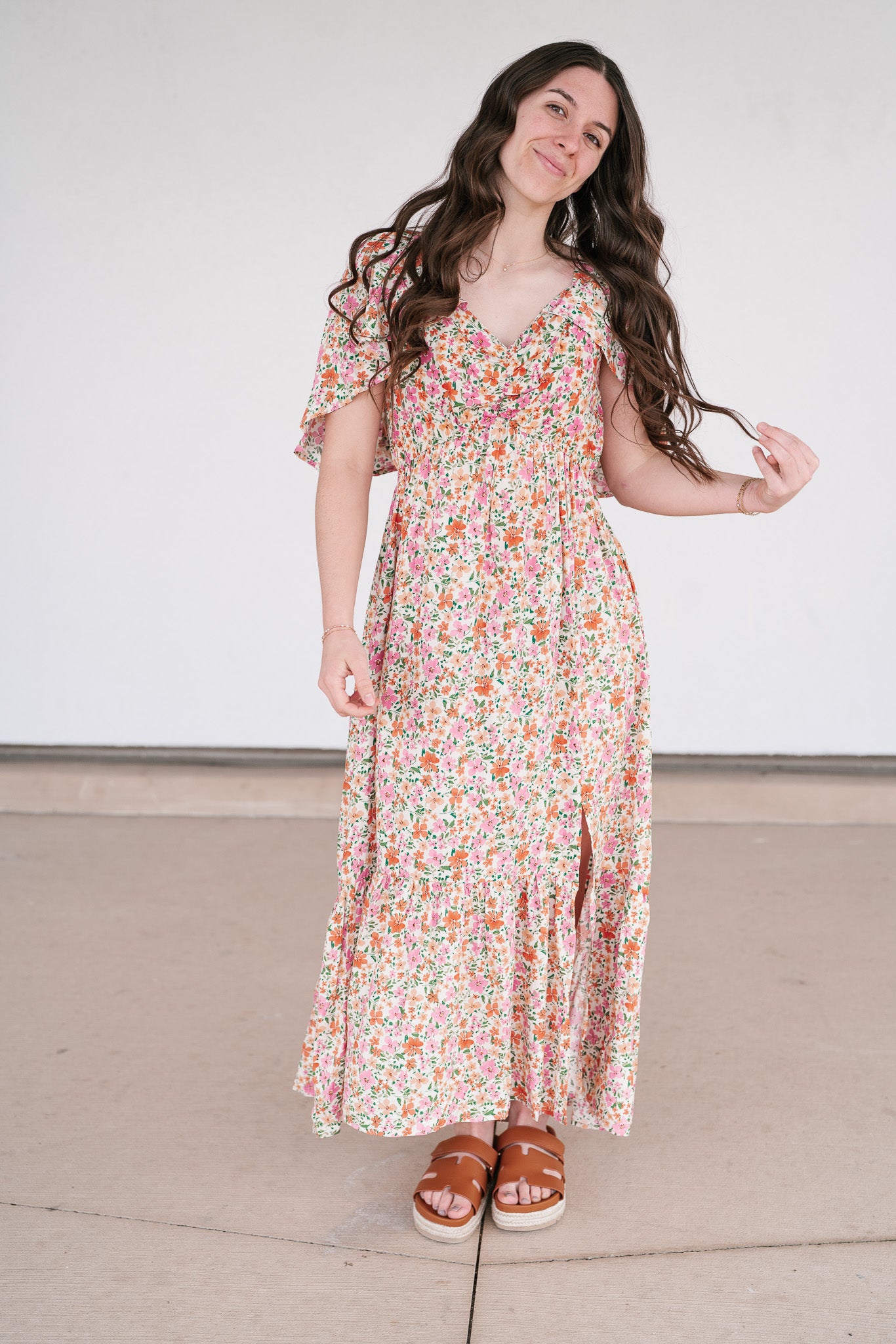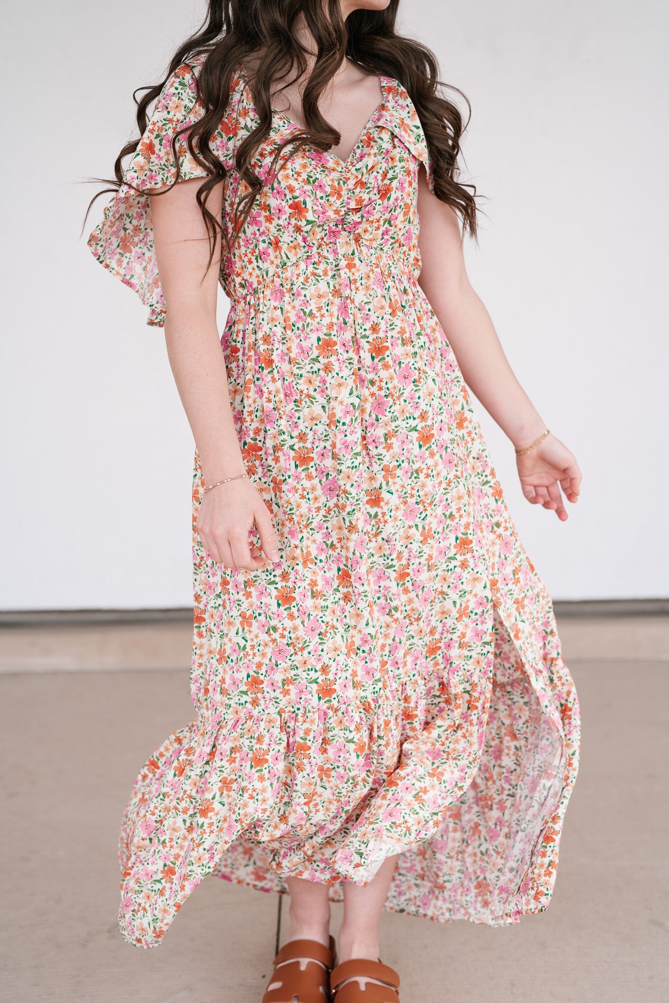 The dress showcases an elastic cinched middle seam, ensuring a comfortable fit that accentuates your waistline without compromising on style. A subtle slit in the leg adds a hint of allure, allowing you to move with ease and grace. The slight high-low hemline provides a modern twist, offering a sophisticated balance between classic and contemporary design.