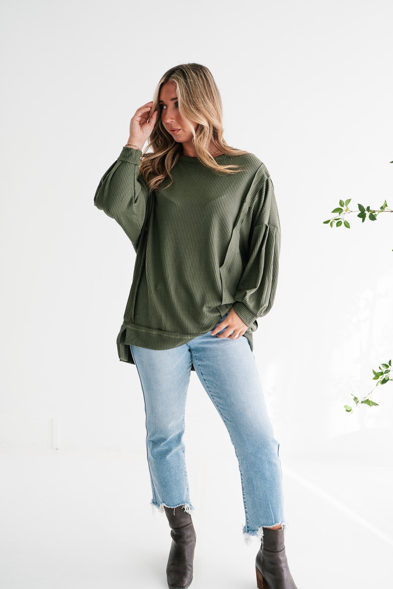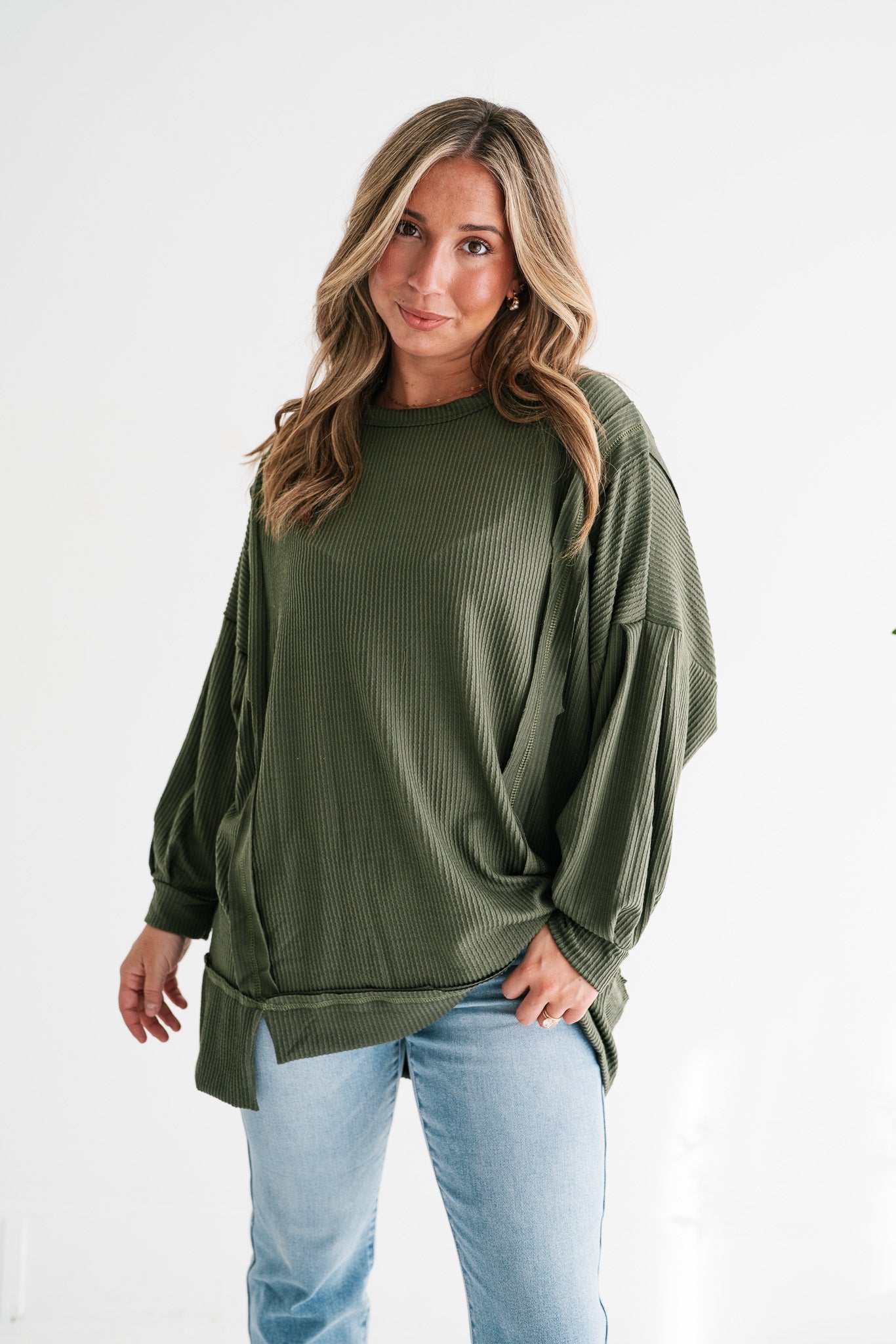 Cozy Olive Green Ribbed Knit Long Sleeve Top | Everyday Comfort