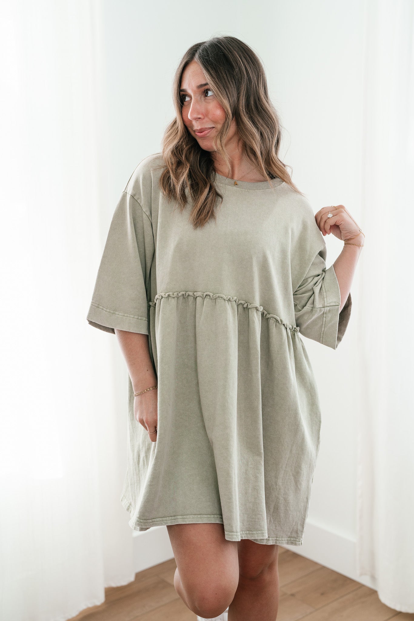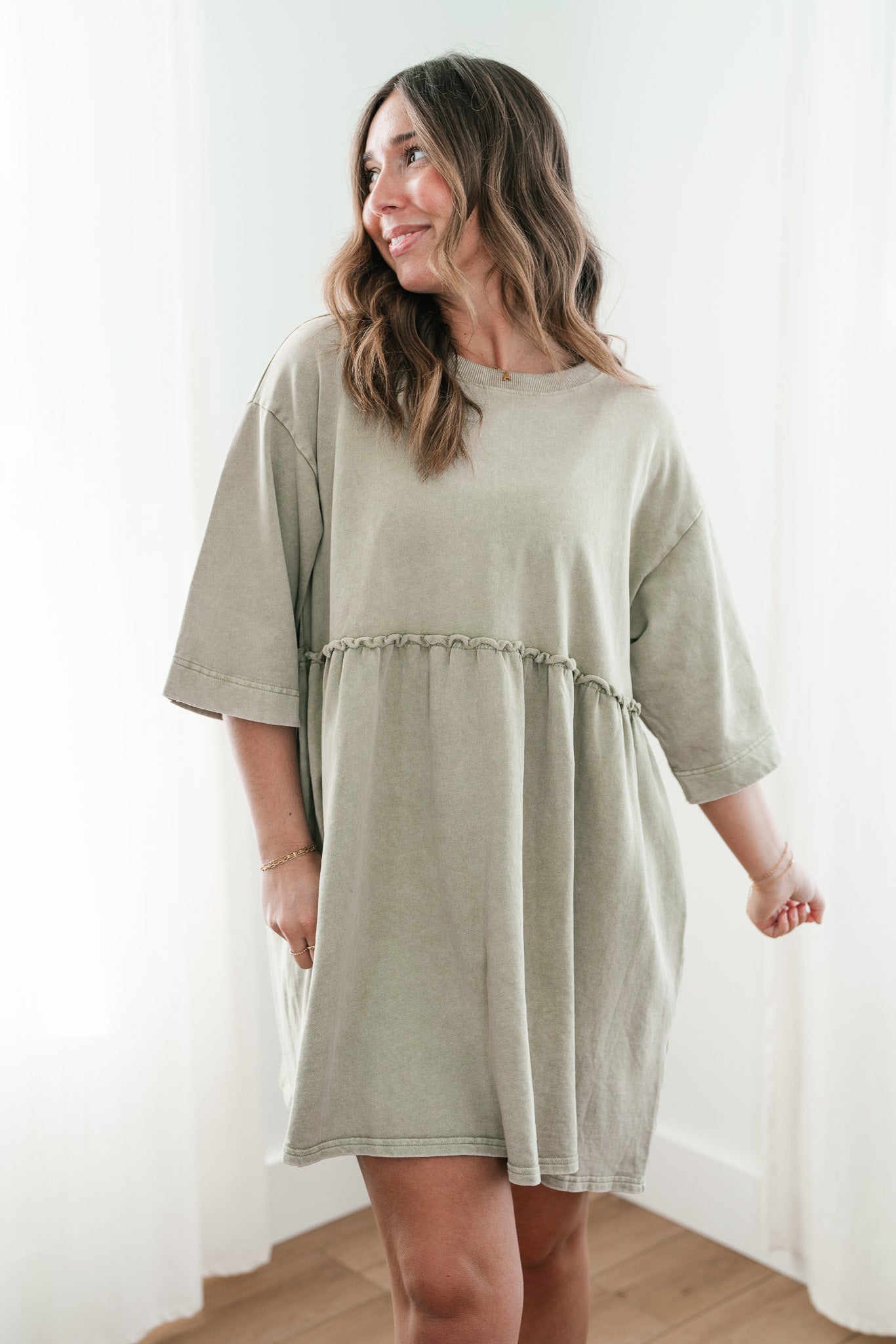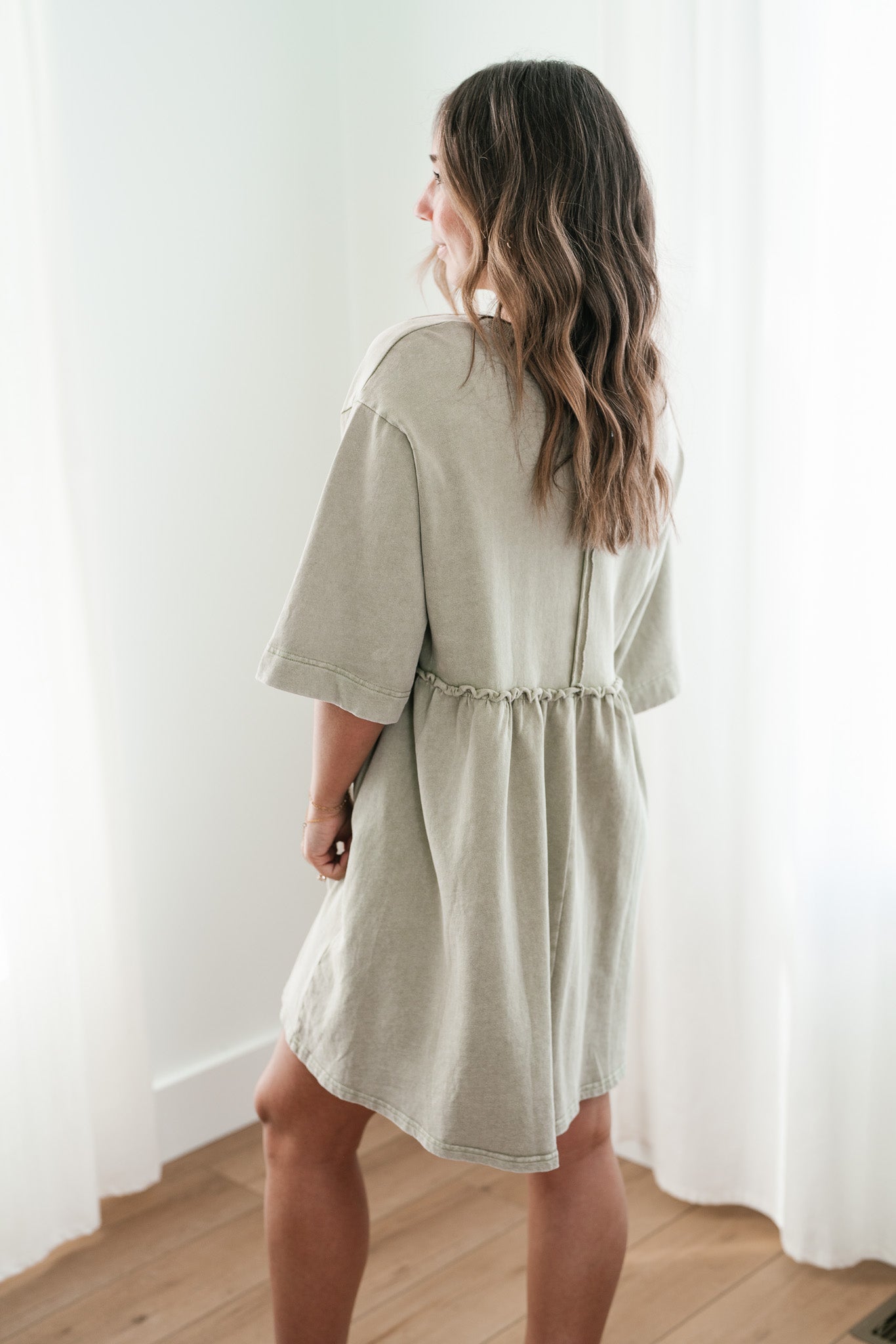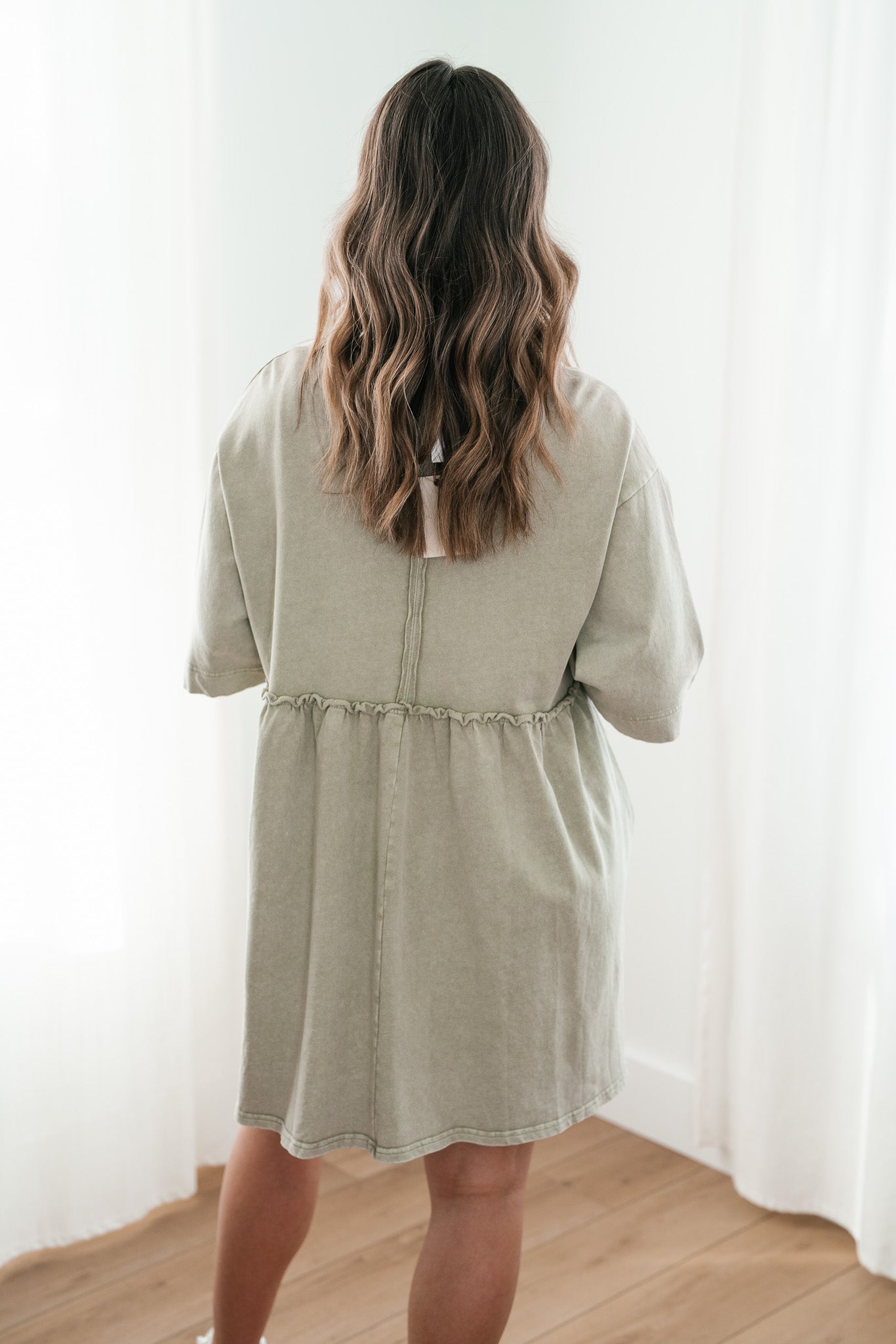 The Wild & Free Mineral Wash Babydoll Dress is the perfect blend of effortless style and casual charm. Featuring a soft, lightweight fabric with a vintage-inspired mineral wash, this dress exudes a laid-back, lived-in look. Its relaxed babydoll silhouette offers a flattering, flowy fit, while delicate details like a round neckline, short sleeves, and subtle pleating add a touch of femininity. Whether you're pairing it with sneakers for a casual day out or layering it with boots and a jacket for cooler evenings, this dress is a versatile must-have for any free-spirited wardrobe.