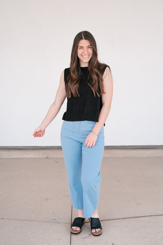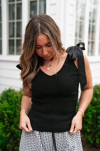 Knotted Shoulder Ribbed Sweater Tank - Black