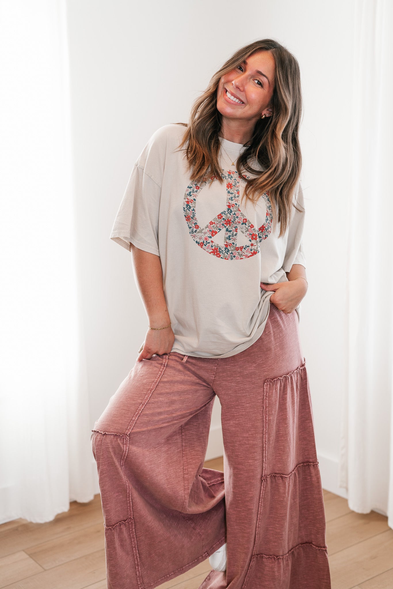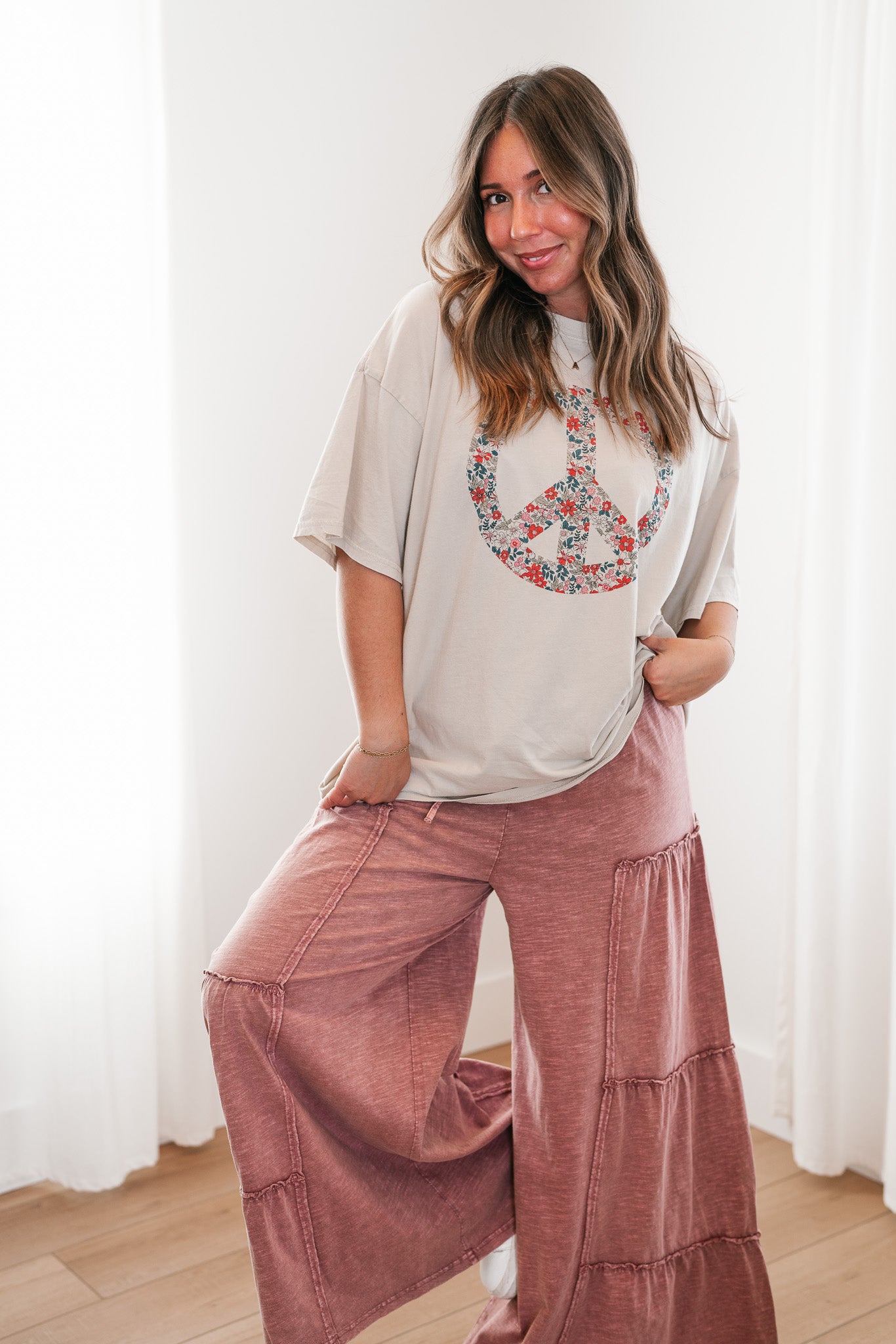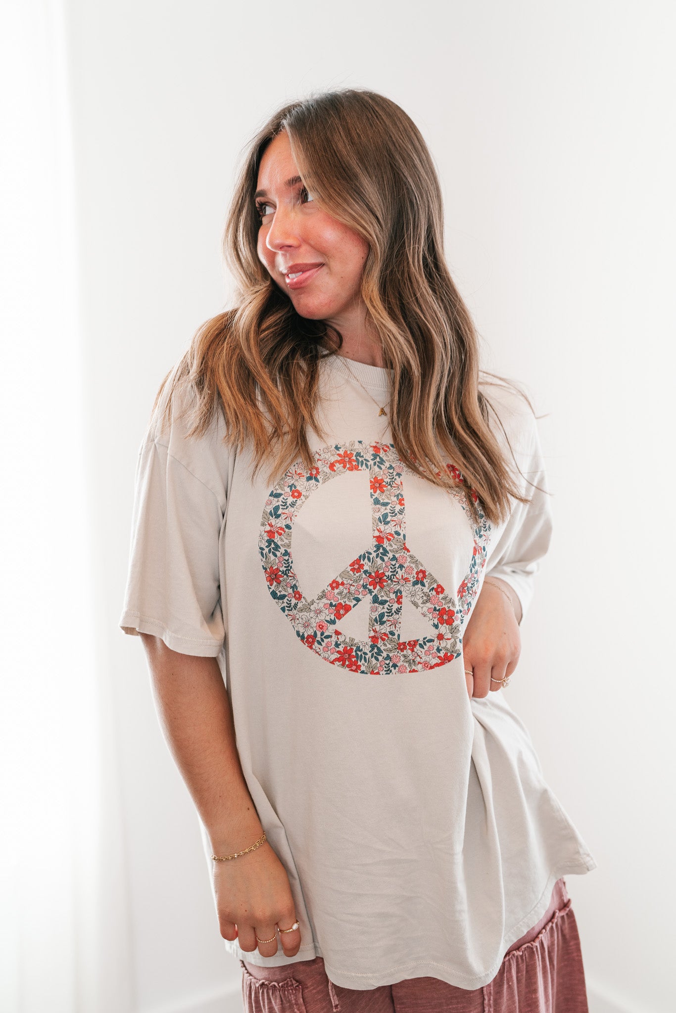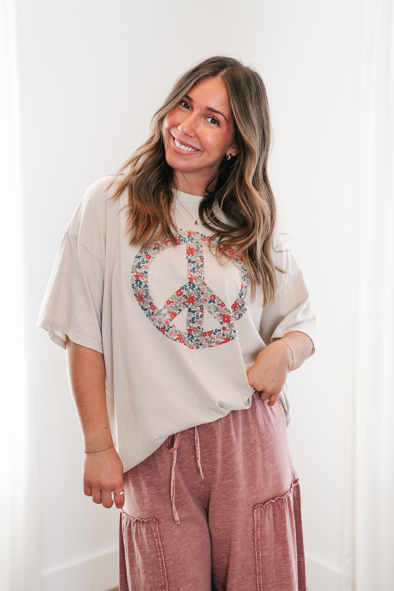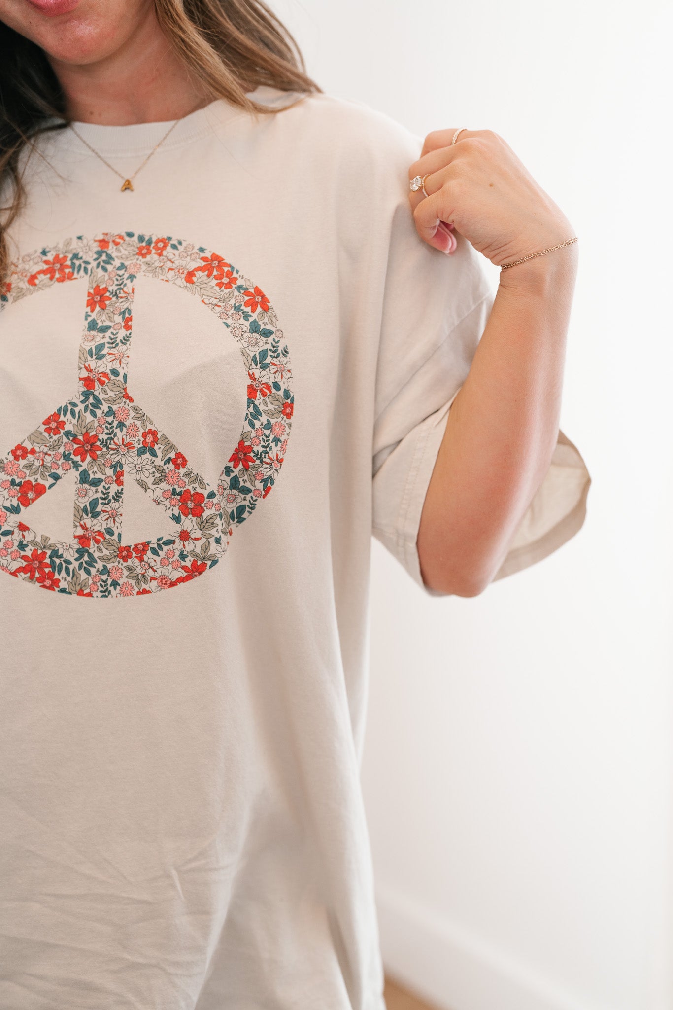 Elevate your casual style with the Beige Peace Vibes Oversized Tee, a perfect blend of comfort and contemporary fashion. Crafted from soft, breathable fabric, this relaxed-fit tee offers all-day comfort while making a subtle yet stylish statement. The minimalist beige hue pairs effortlessly with any wardrobe, while the bold "Peace Vibes" graphic adds a touch of positivity and style. Whether you're lounging at home or out with friends, this oversized tee is the ultimate go-to for effortless, laid-back looks. Ideal for pairing with jeans, leggings, or shorts, it’s a versatile addition to any collection.