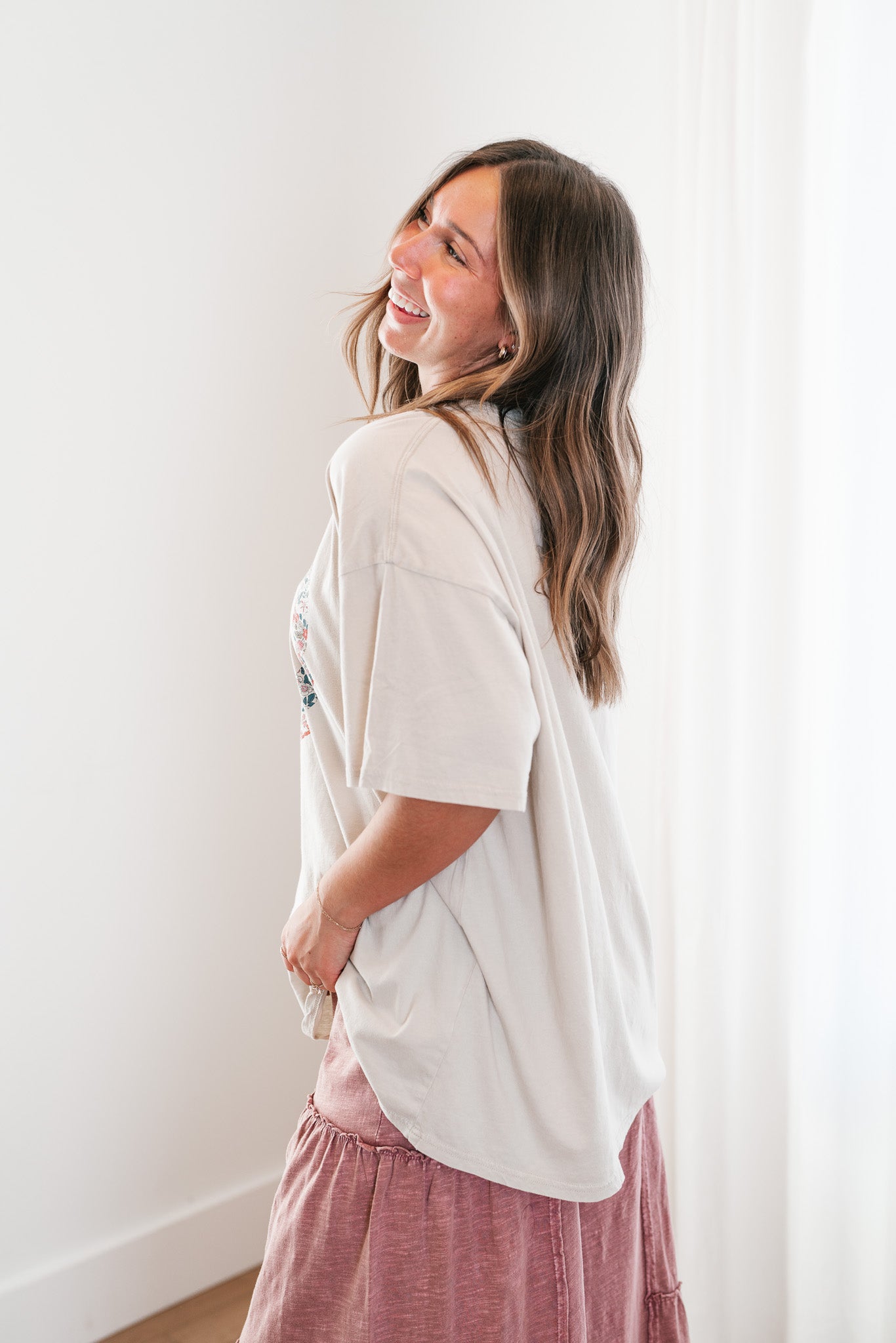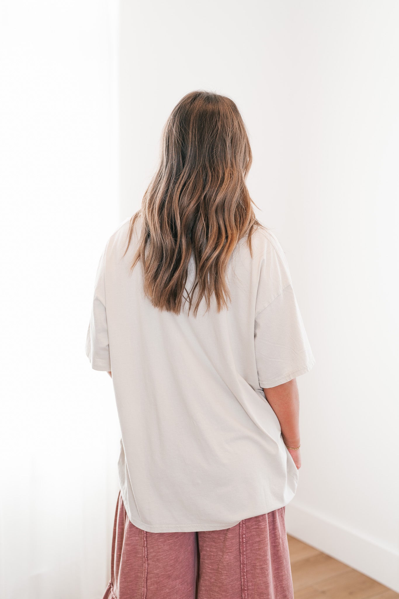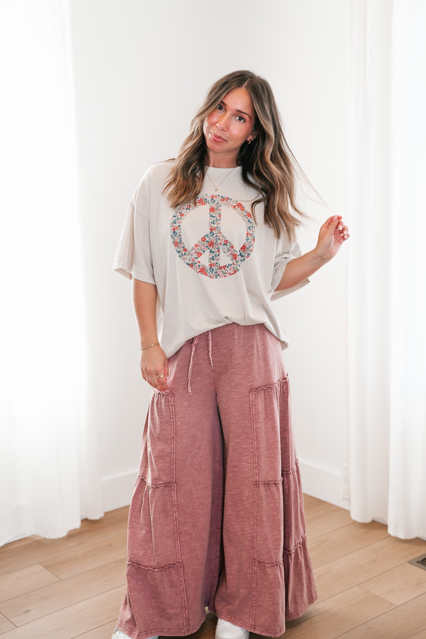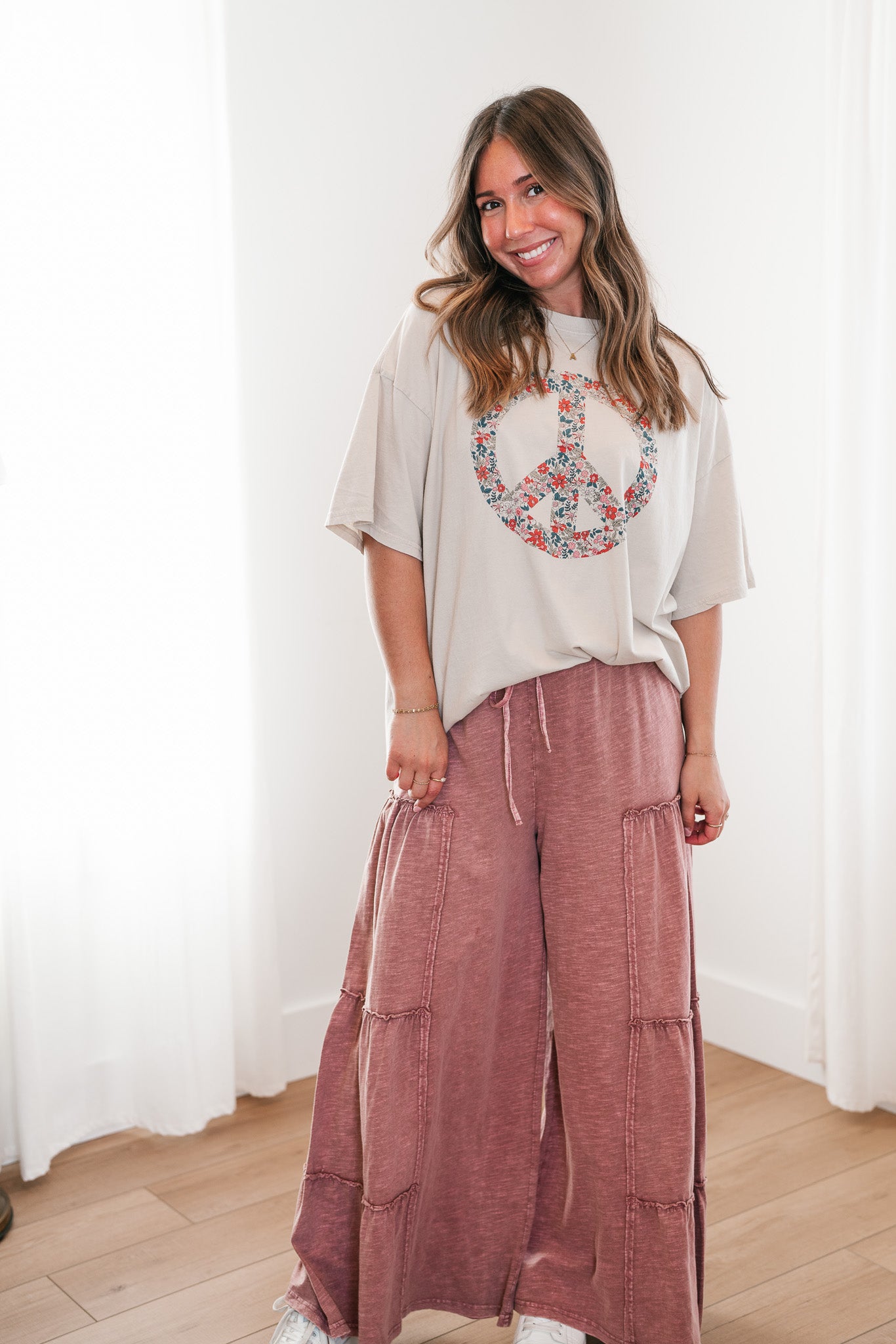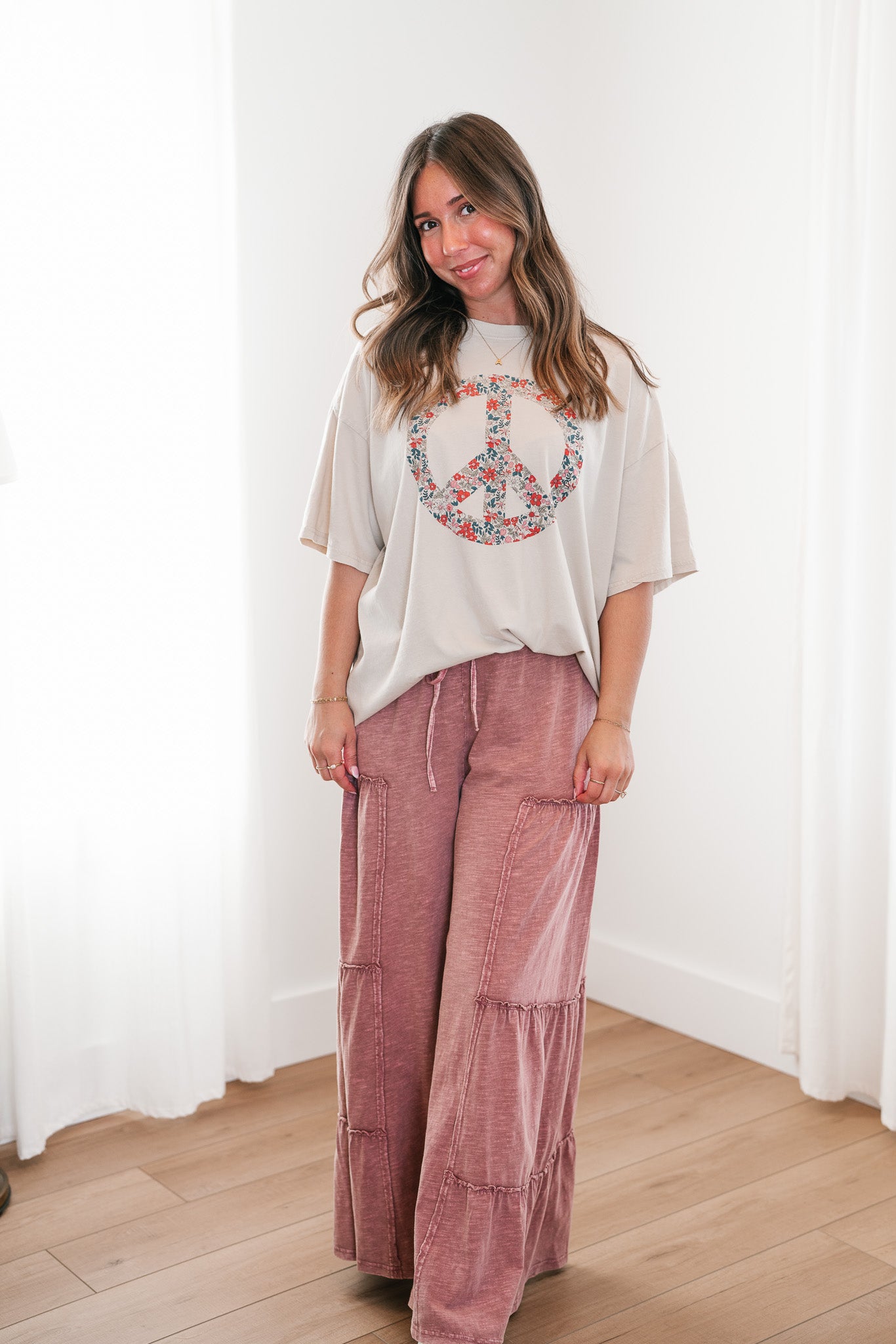 Elevate your casual style with the Beige Peace Vibes Oversized Tee, a perfect blend of comfort and contemporary fashion. Crafted from soft, breathable fabric, this relaxed-fit tee offers all-day comfort while making a subtle yet stylish statement. The minimalist beige hue pairs effortlessly with any wardrobe, while the bold "Peace Vibes" graphic adds a touch of positivity and style. Whether you're lounging at home or out with friends, this oversized tee is the ultimate go-to for effortless, laid-back looks. Ideal for pairing with jeans, leggings, or shorts, it’s a versatile addition to any collection.