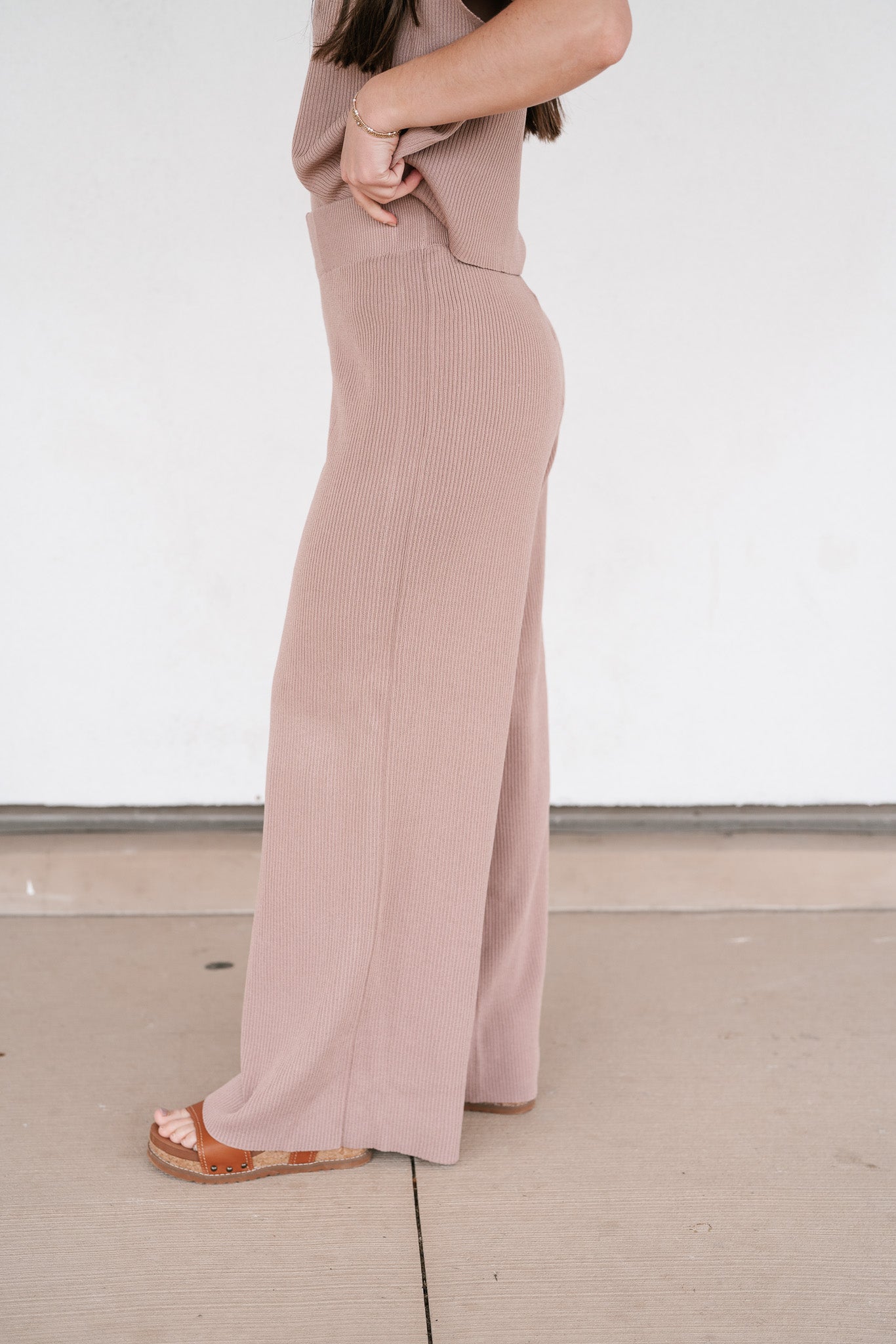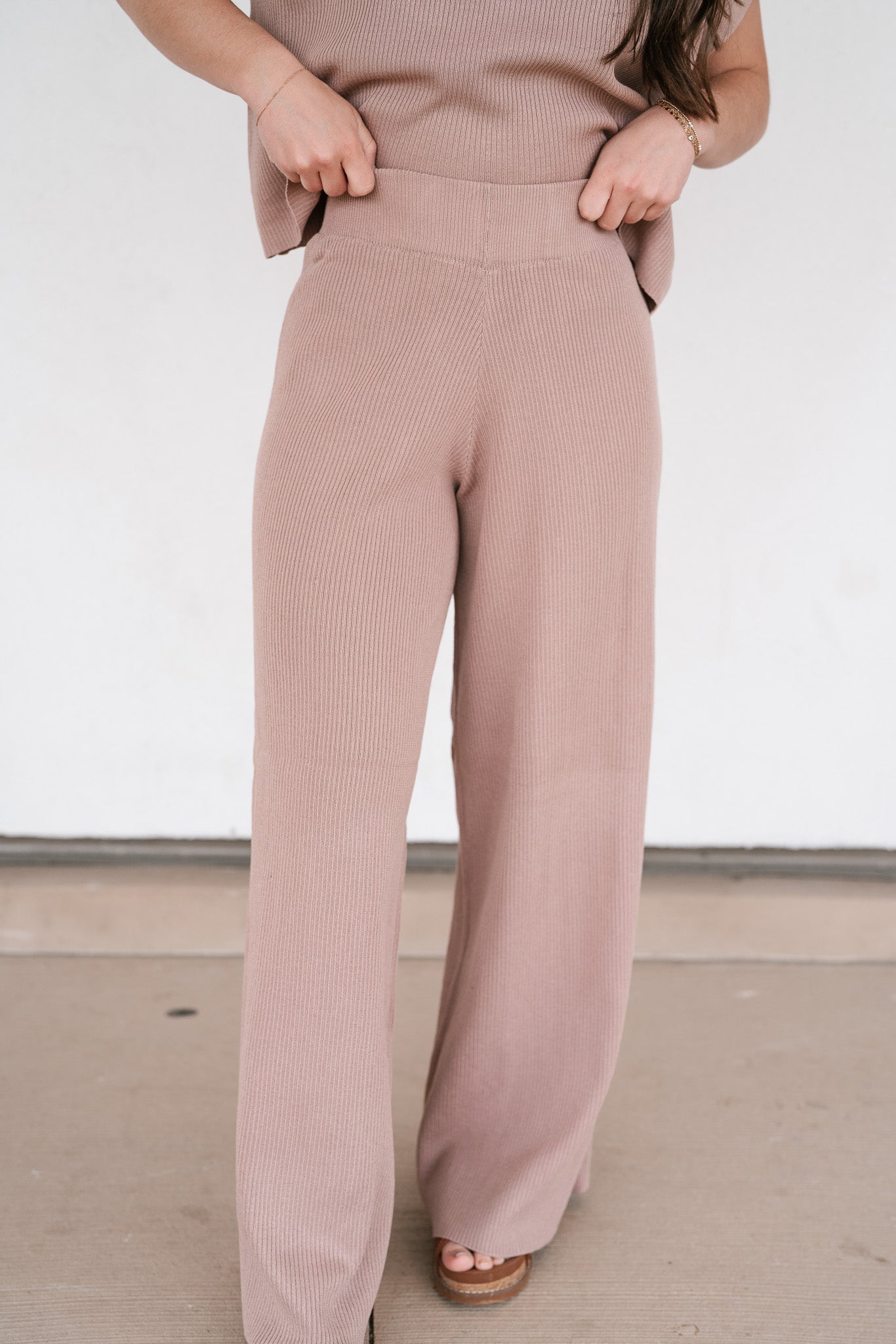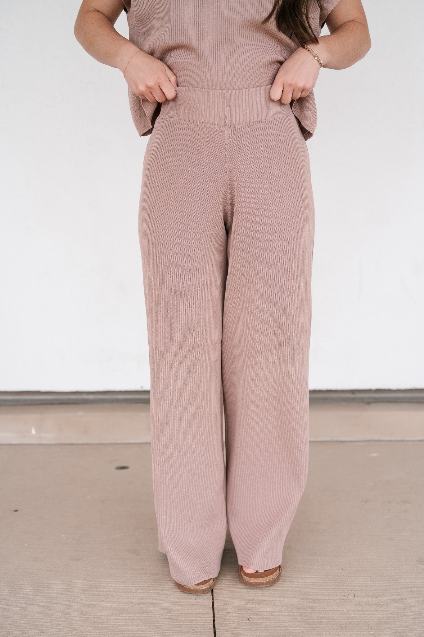 The Neutral Form Ribbed Set - Bottom bring effortless elegance and cozy comfort to your wardrobe. Designed in a soft, dusty mauve tone, they feature a flattering high-rise waistband and a straight-leg silhouette that drapes smoothly for a sleek, elongated look. The fabric’s subtle stretch offers all-day comfort, making them perfect for lounging in style or elevating your casual daywear. Pair them with the matching ribbed top for a coordinated, chic set that transitions seamlessly from home to a casual outing.