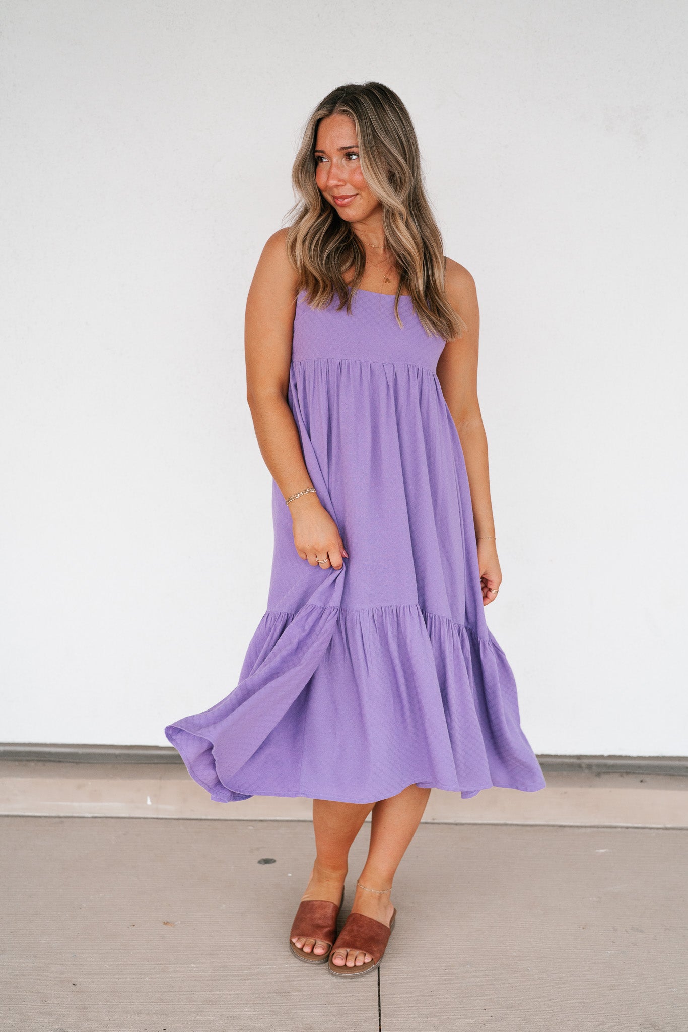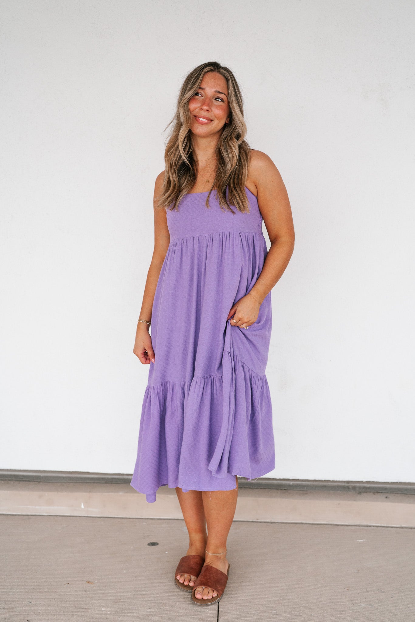Embrace elegance and effortless charm with our Violet Whisper Maxi Dress. This flowing maxi dress features a soft, lightweight fabric that drapes beautifully for a flattering silhouette. The delicate violet hue adds a touch of romance, perfect for garden parties, weddings, or casual outings. Designed with subtle details like a cinched waist and delicate straps, this dress offers comfort and style in one stunning package. Pair it with sandals or heels for an easy, breezy look that transitions seamlessly from day to night.