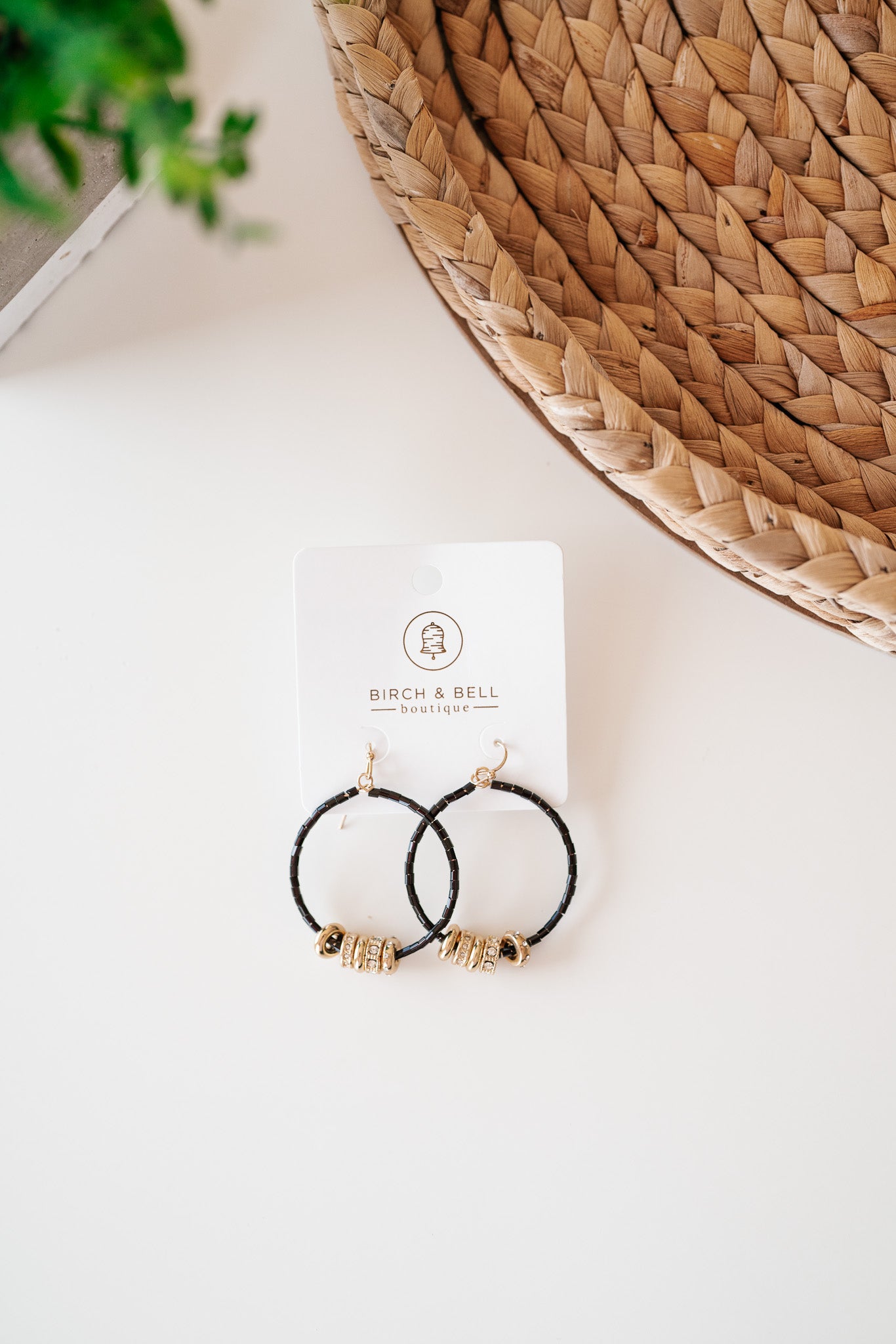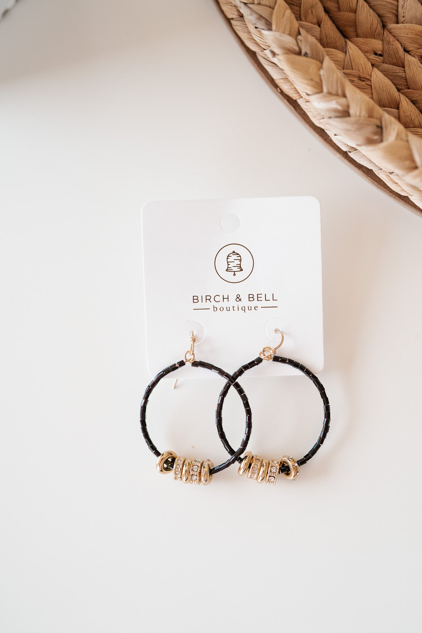 Looking for an easy way to elevate any outfit? These chic black beaded hoops add the perfect touch of shine with their gold accent rings and subtle sparkle details. Lightweight, modern, and endlessly wearable, they’re the kind of accessory the modern woman on the go reaches for again and again. Dress them up for a night out or pair them with your everyday essentials—either way, they’ll complete your look effortlessly.