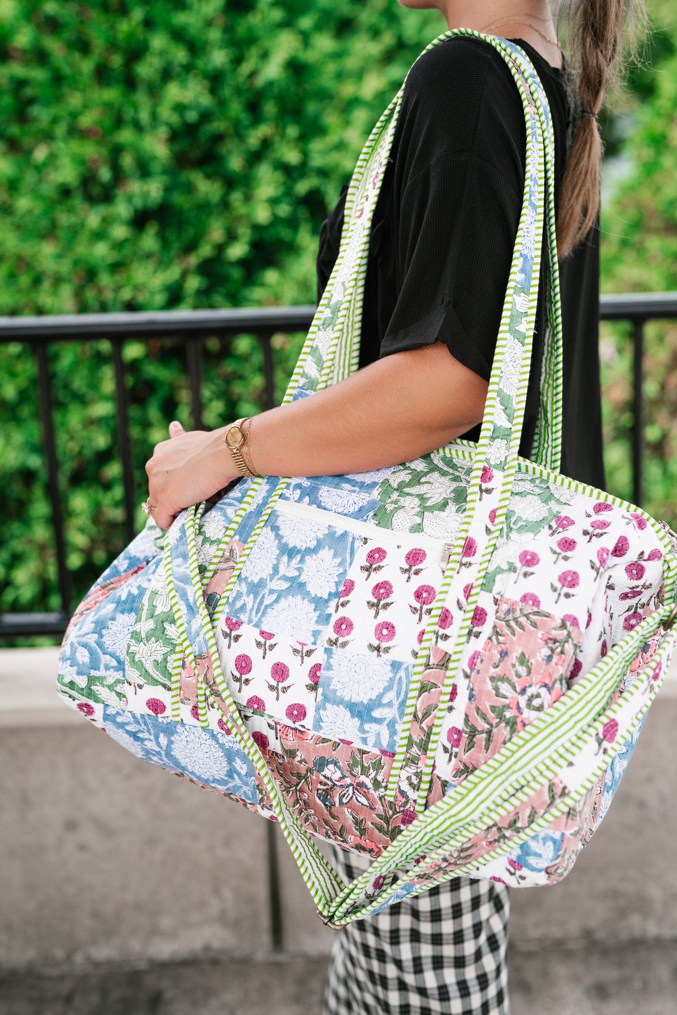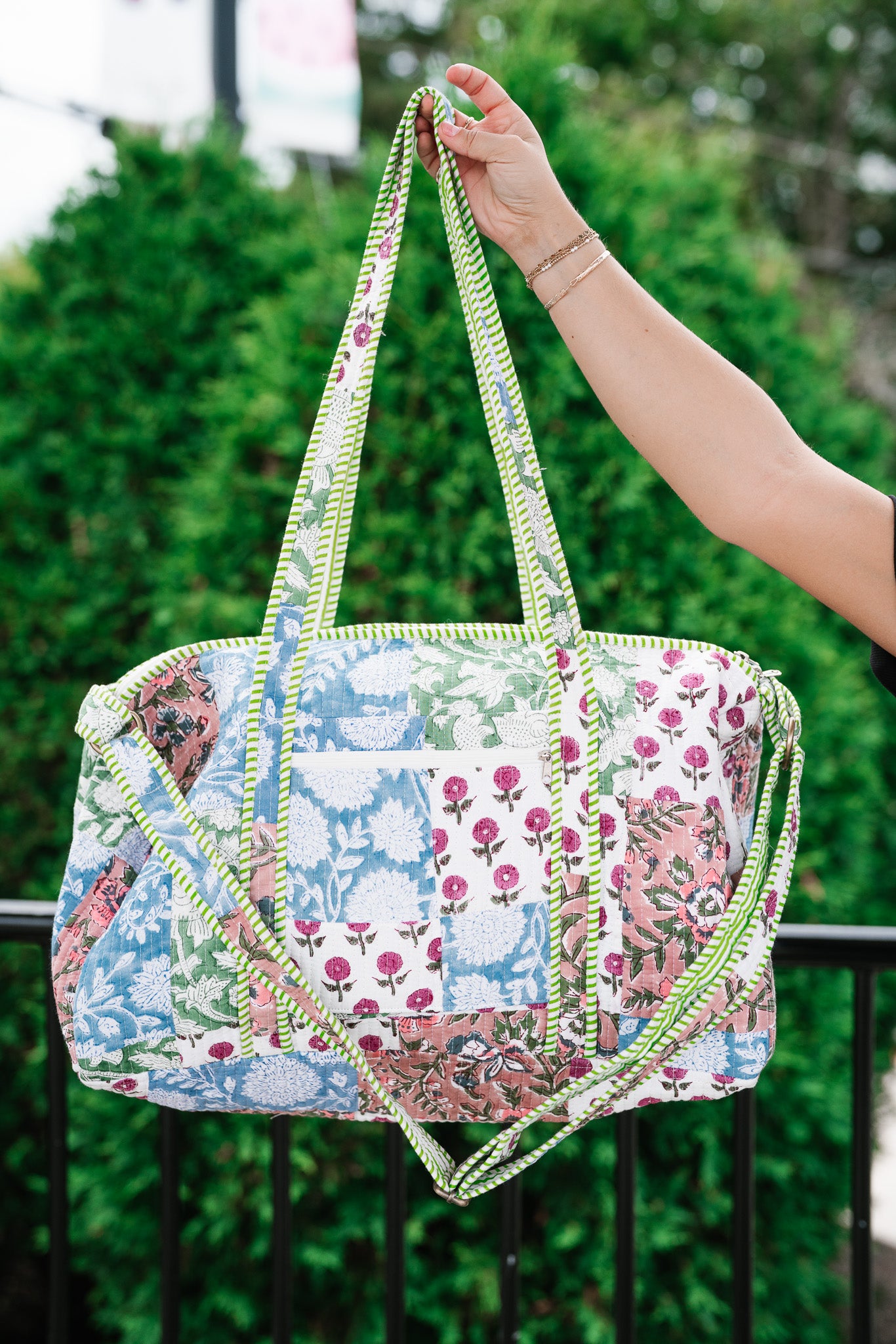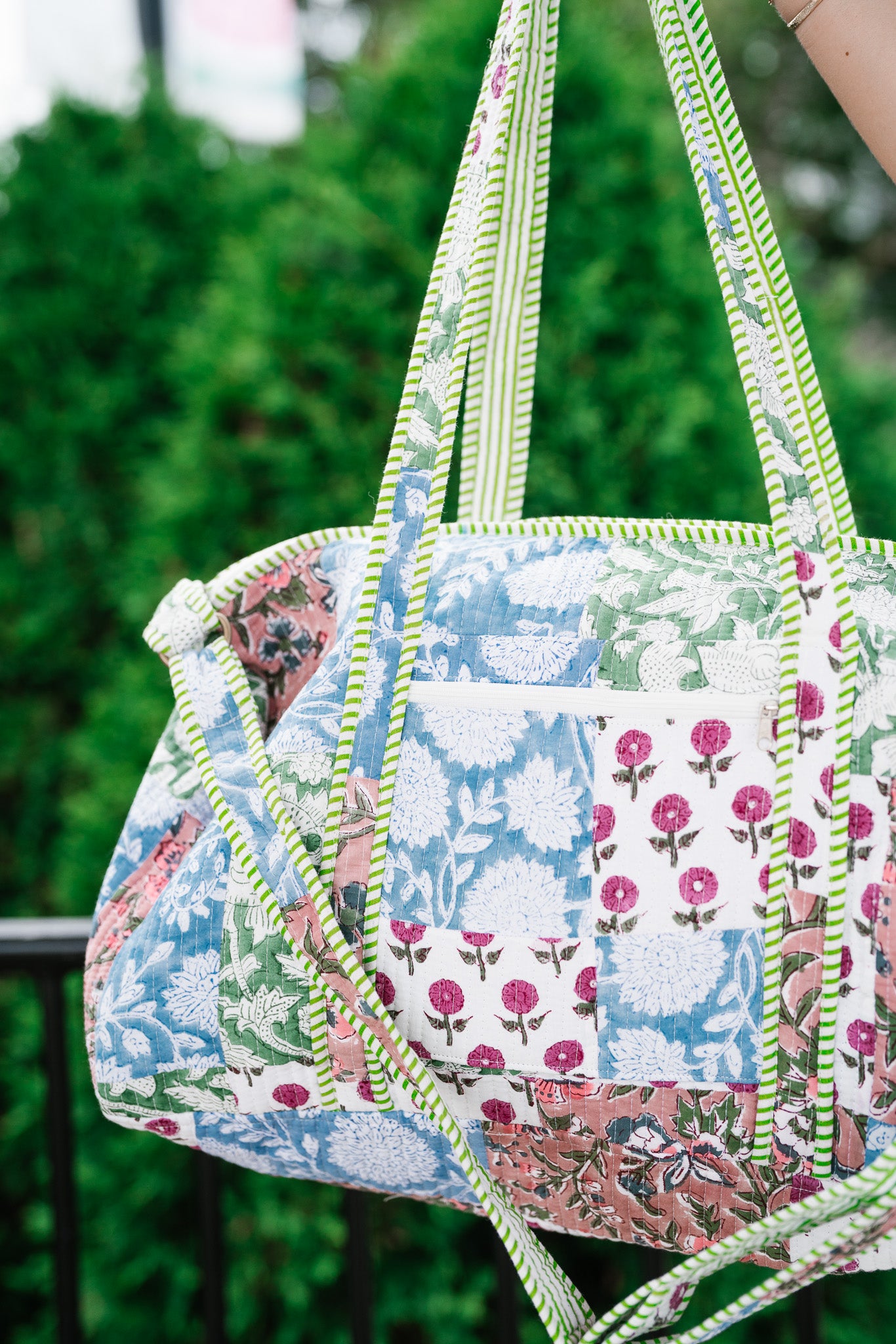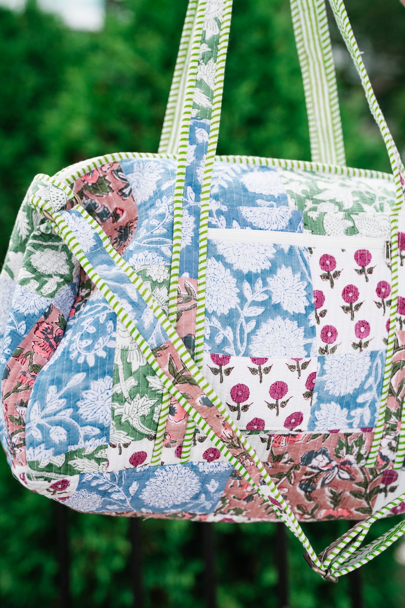 Each piece is crafted from 100% hand-printed fabric, so minor variations or subtle imperfections in the print are natural and part of its charm. Every bag will feature slightly different fabric patches, making each one truly unique while maintaining the same overall design as shown.