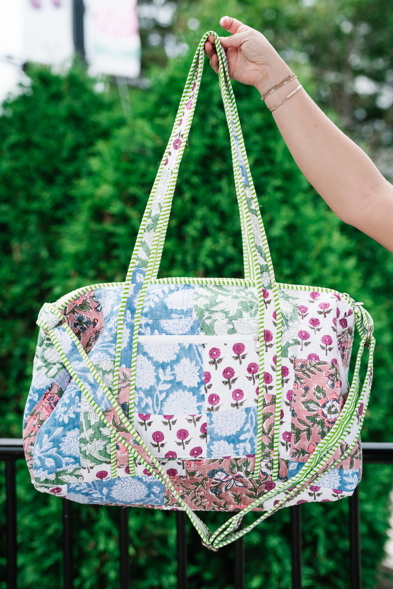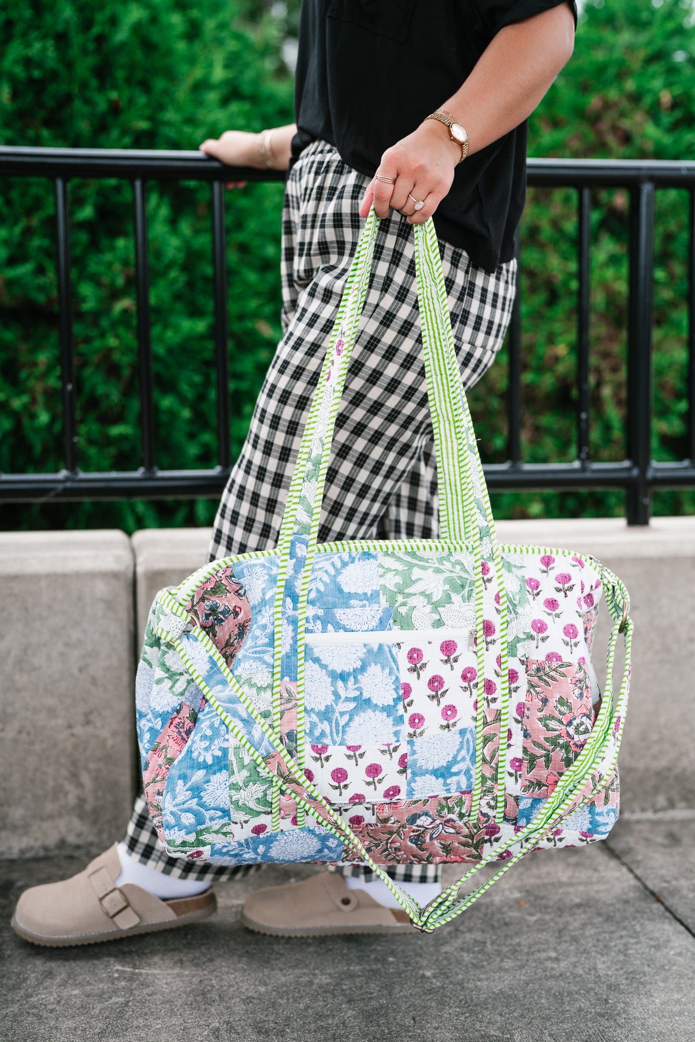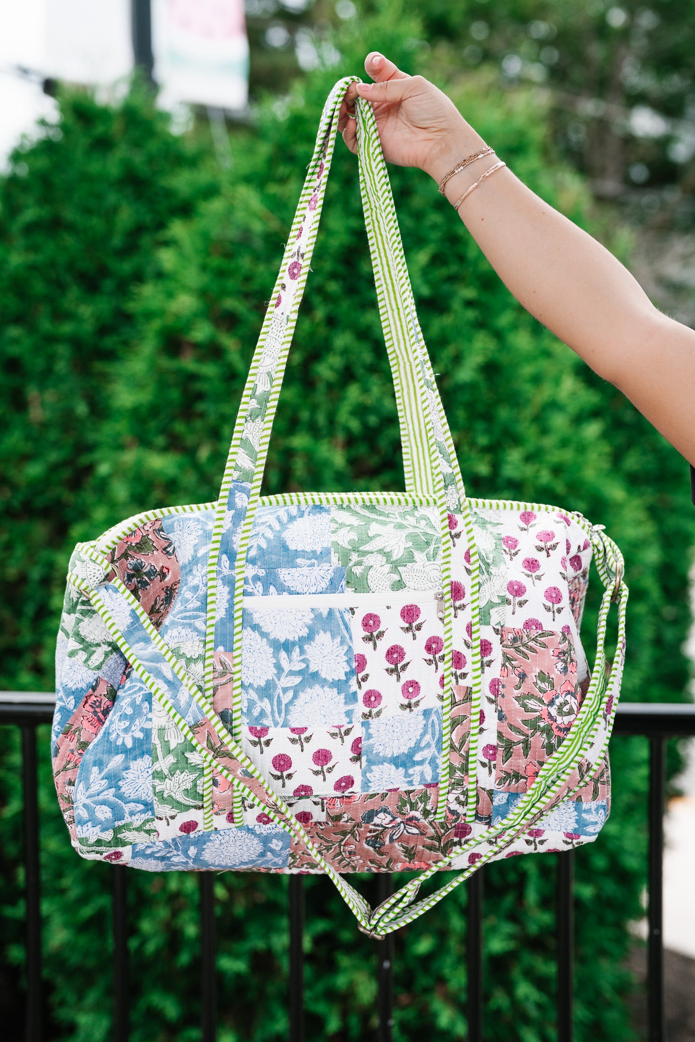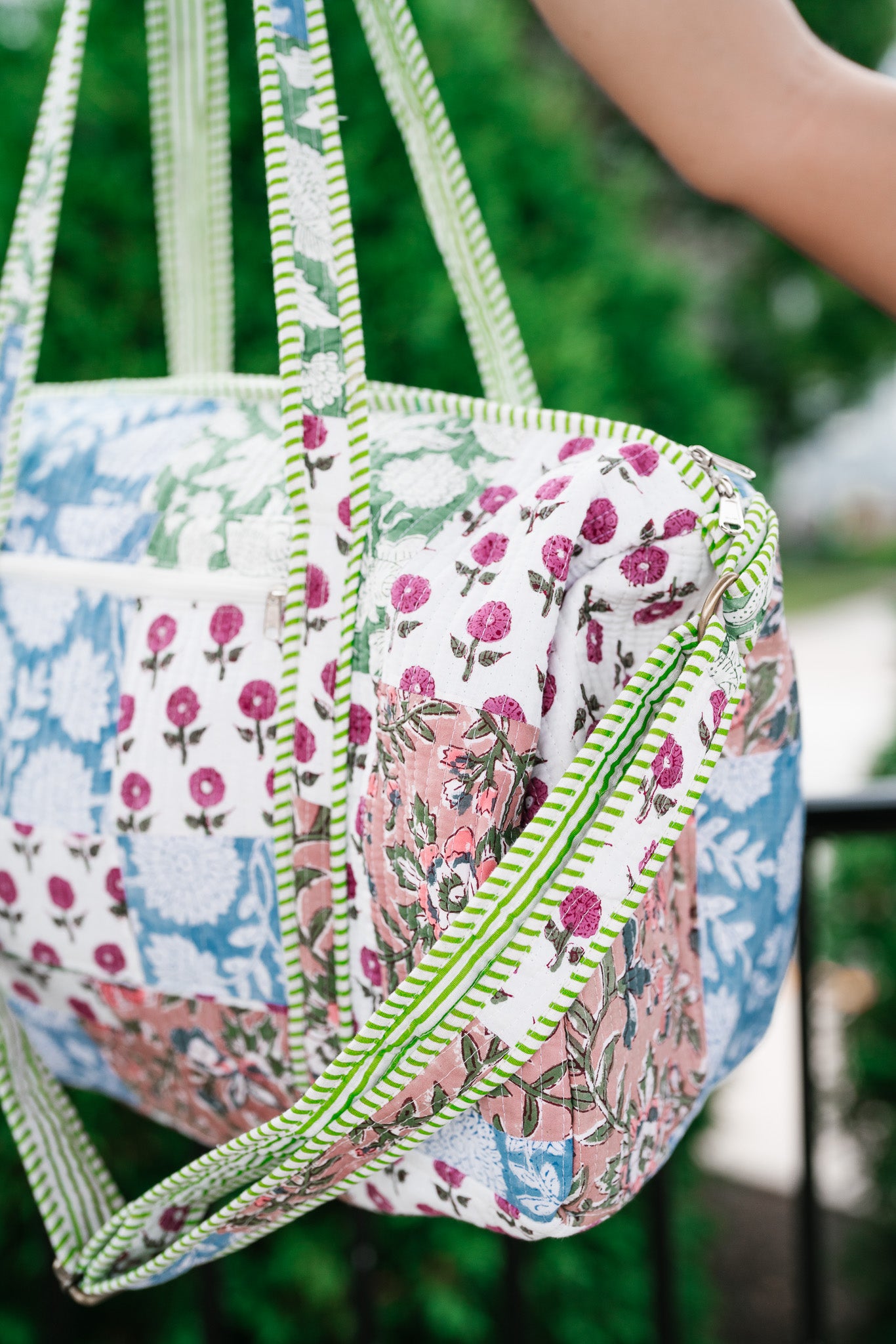 Each piece is crafted from 100% hand-printed fabric, so minor variations or subtle imperfections in the print are natural and part of its charm. Every bag will feature slightly different fabric patches, making each one truly unique while maintaining the same overall design as shown.