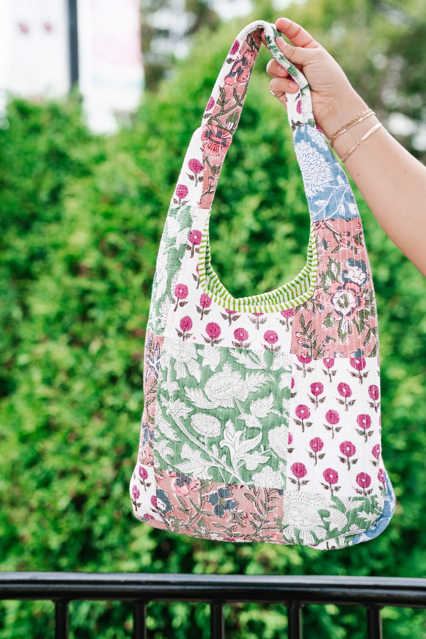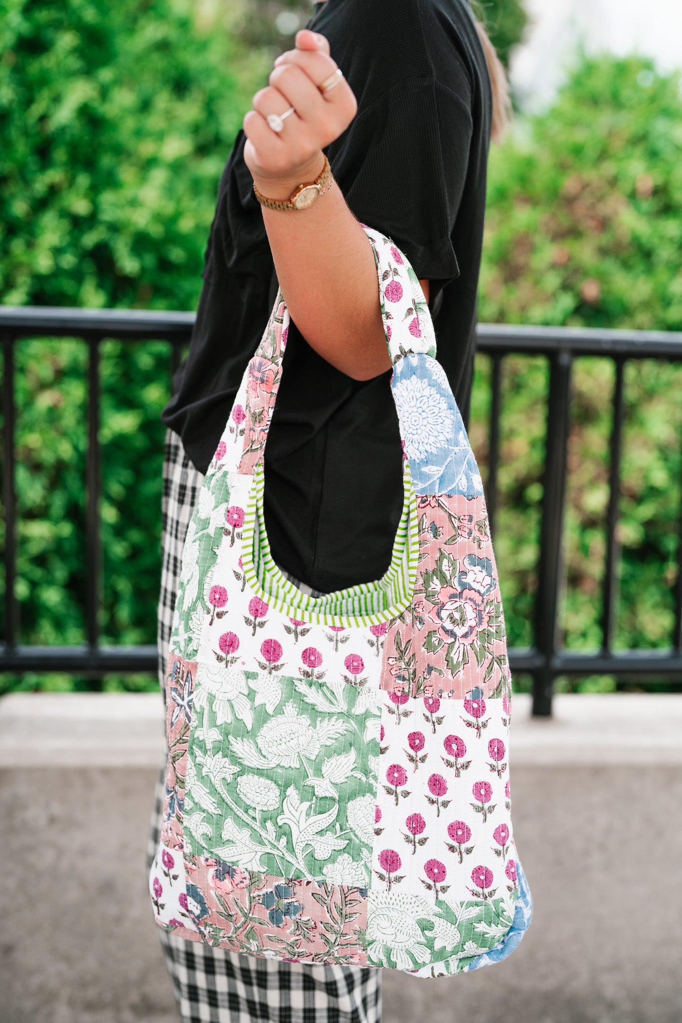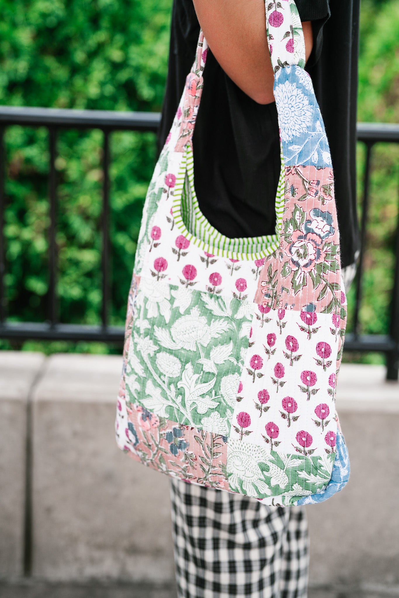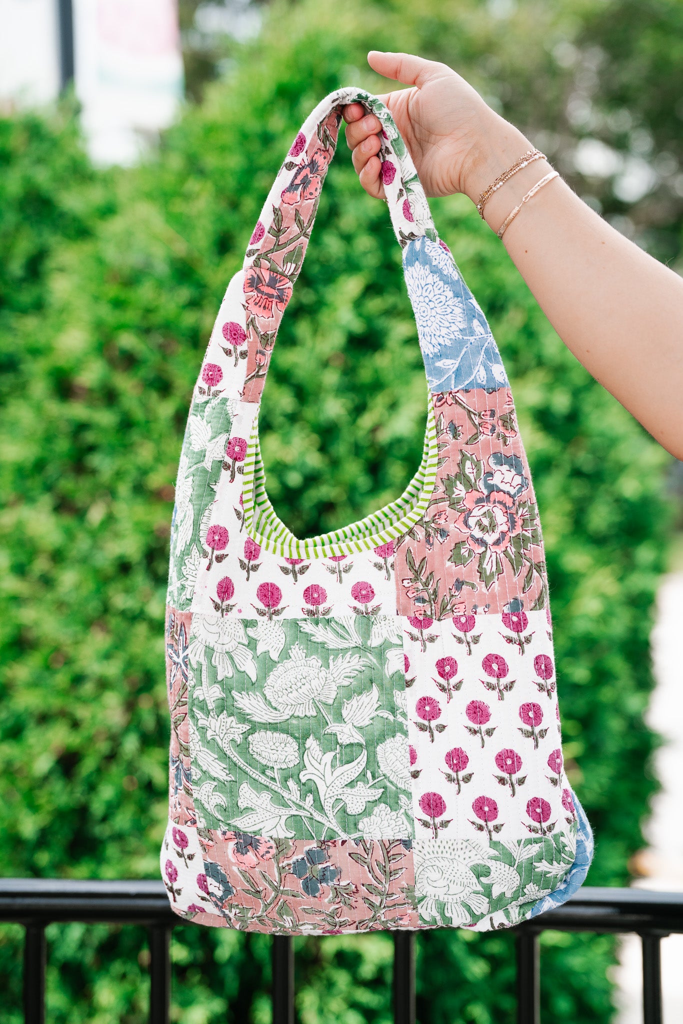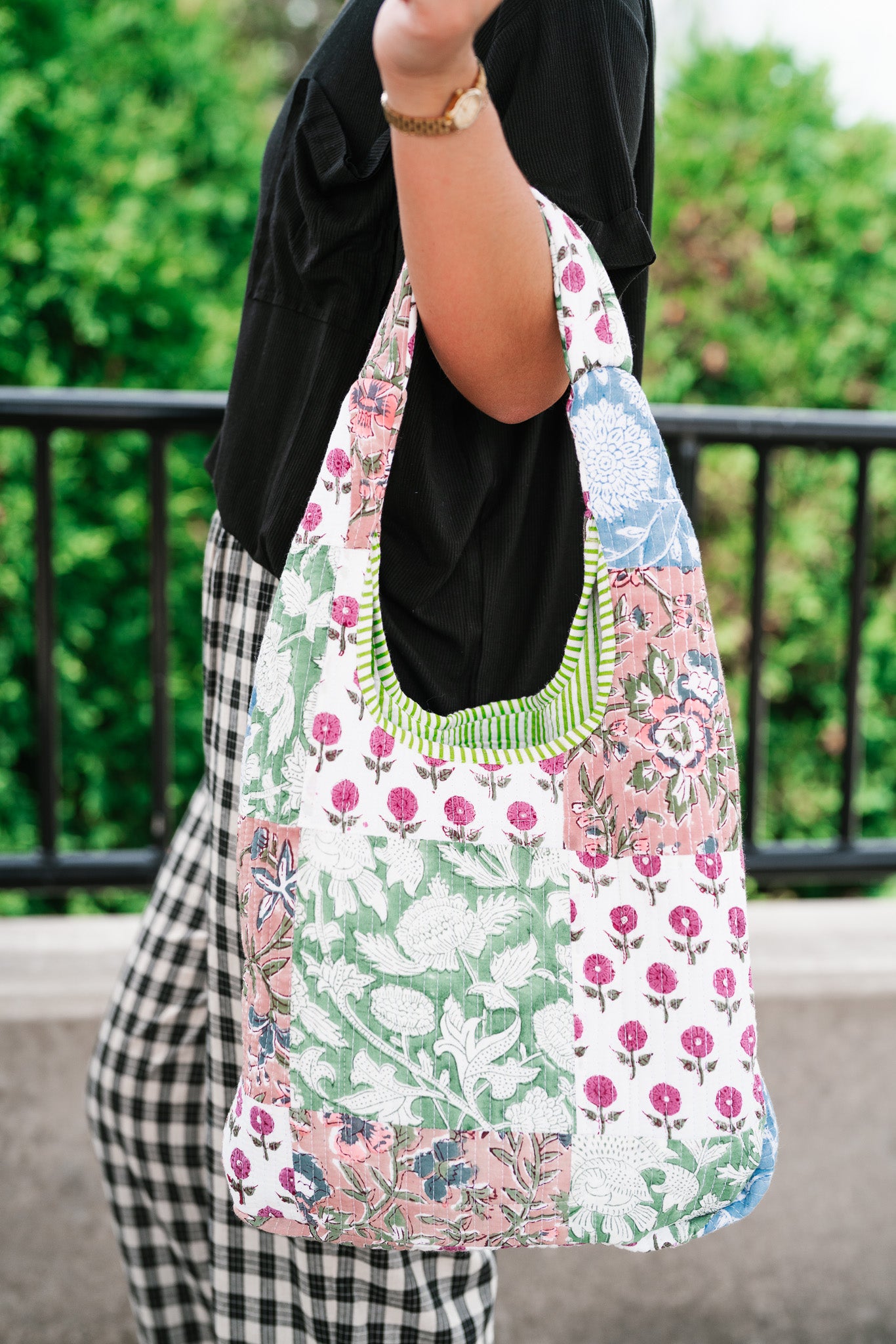 Each piece is crafted from 100% hand-printed fabric, so minor variations or subtle imperfections in the print are natural and part of its charm. Every bag will feature slightly different fabric patches, making each one truly unique while maintaining the same overall design as shown.