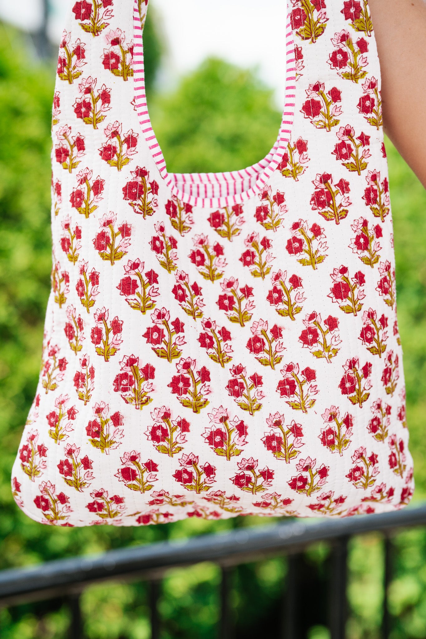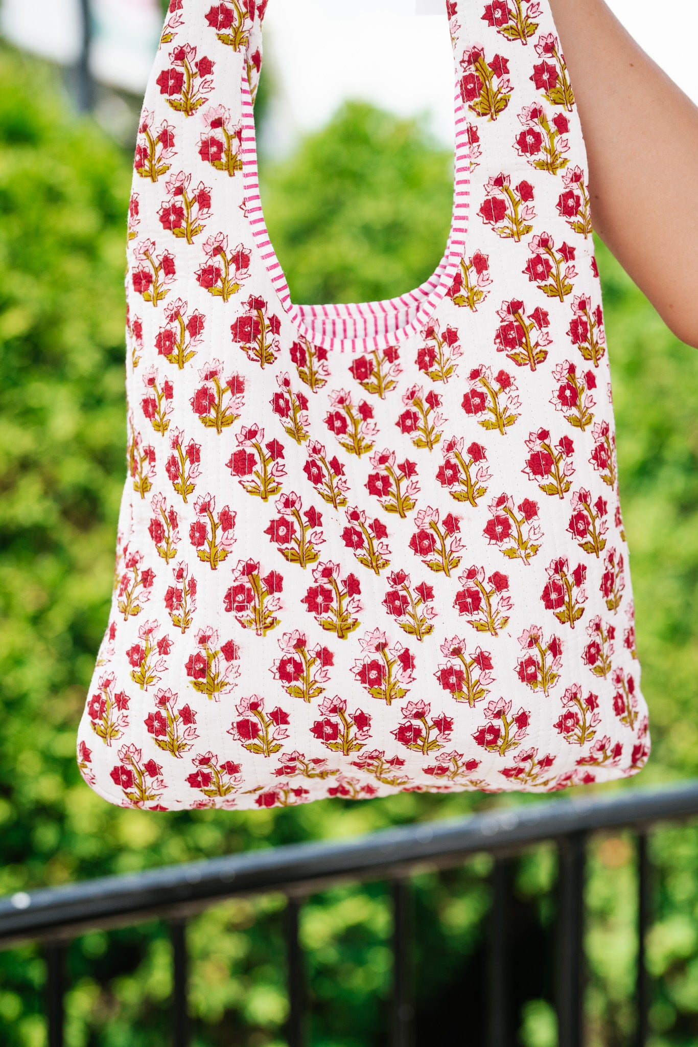 Each piece is crafted from 100% hand-printed fabric, so minor variations or subtle imperfections in the print are natural and part of its charm. Every bag will feature slightly different fabric patches, making each one truly unique while maintaining the same overall design as shown.