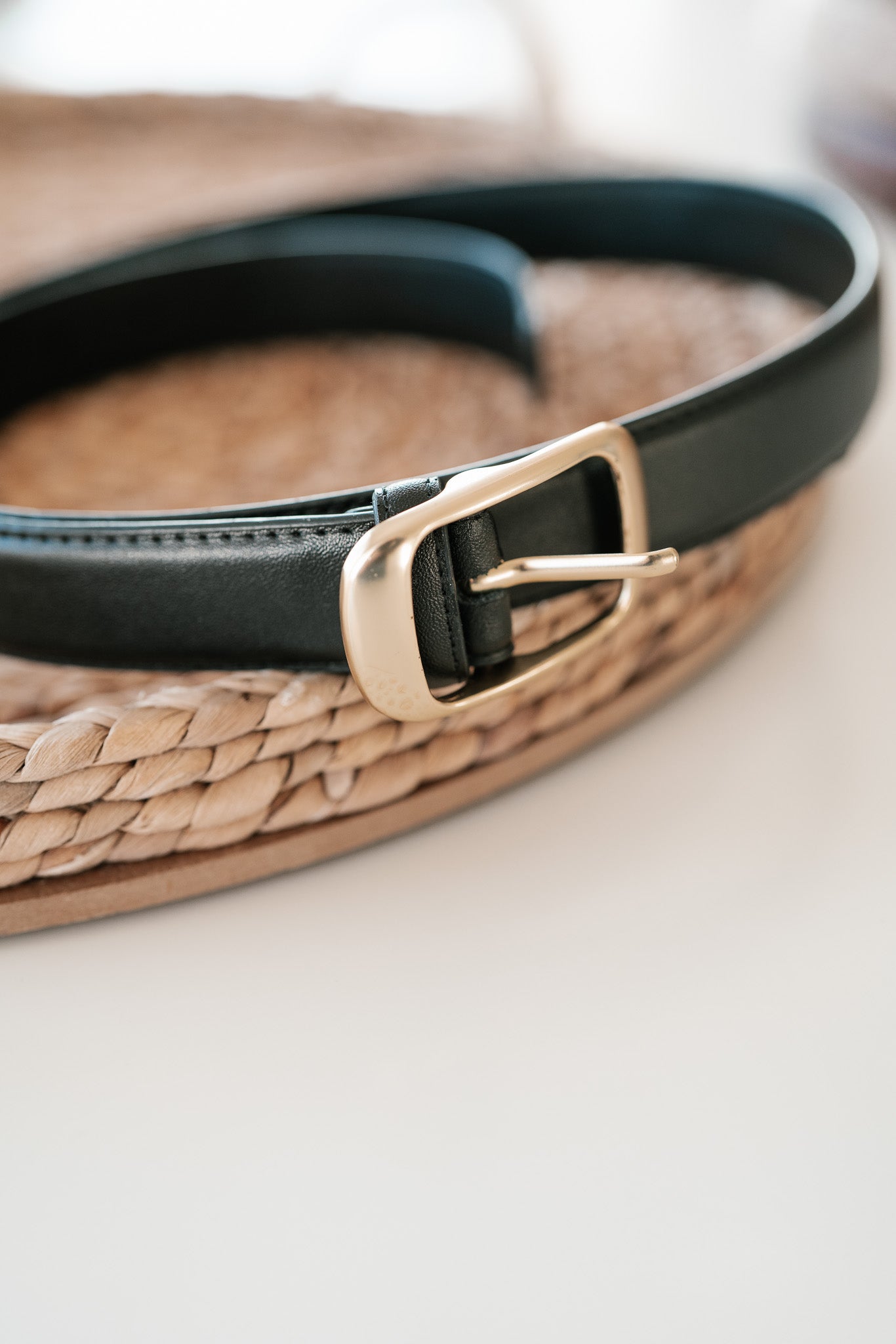 Elevate your everyday wardrobe with this chic and versatile black vegan leather belt. Designed with a sophisticated gold-toned rectangular buckle, this accessory provides the perfect finishing touch for high-waisted jeans, flowy midi dresses, or tailored office trousers. Crafted for durability and style, it’s the ultimate capsule wardrobe essential for a polished, put-together look.