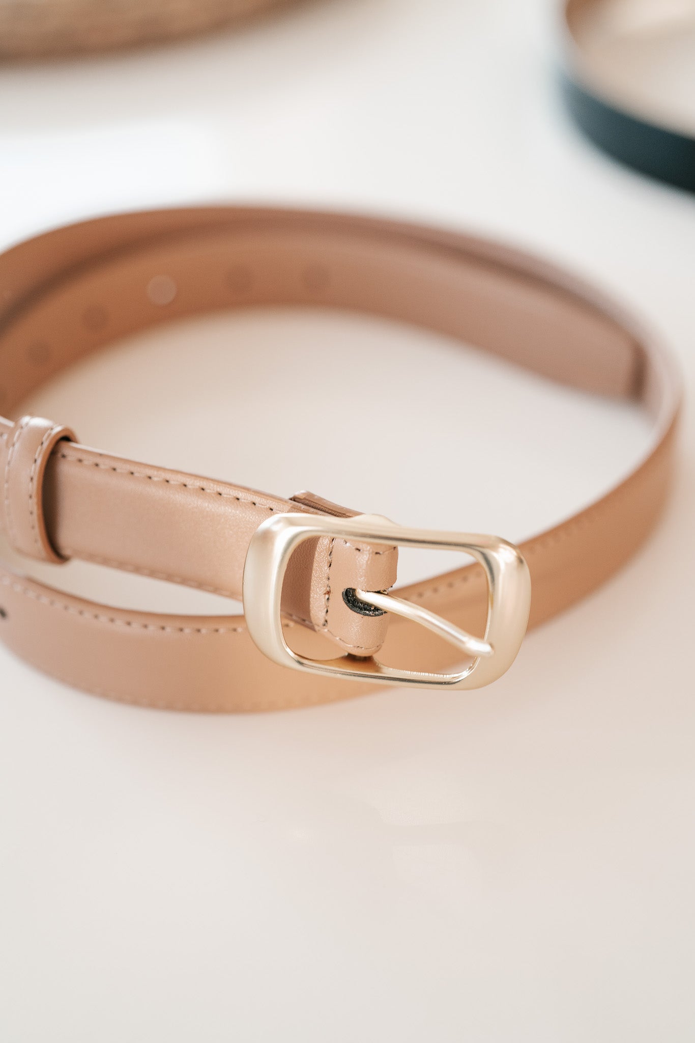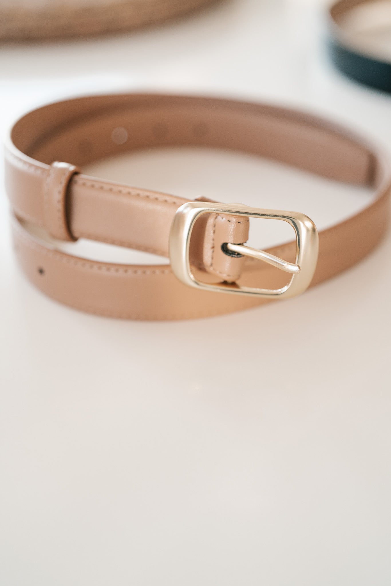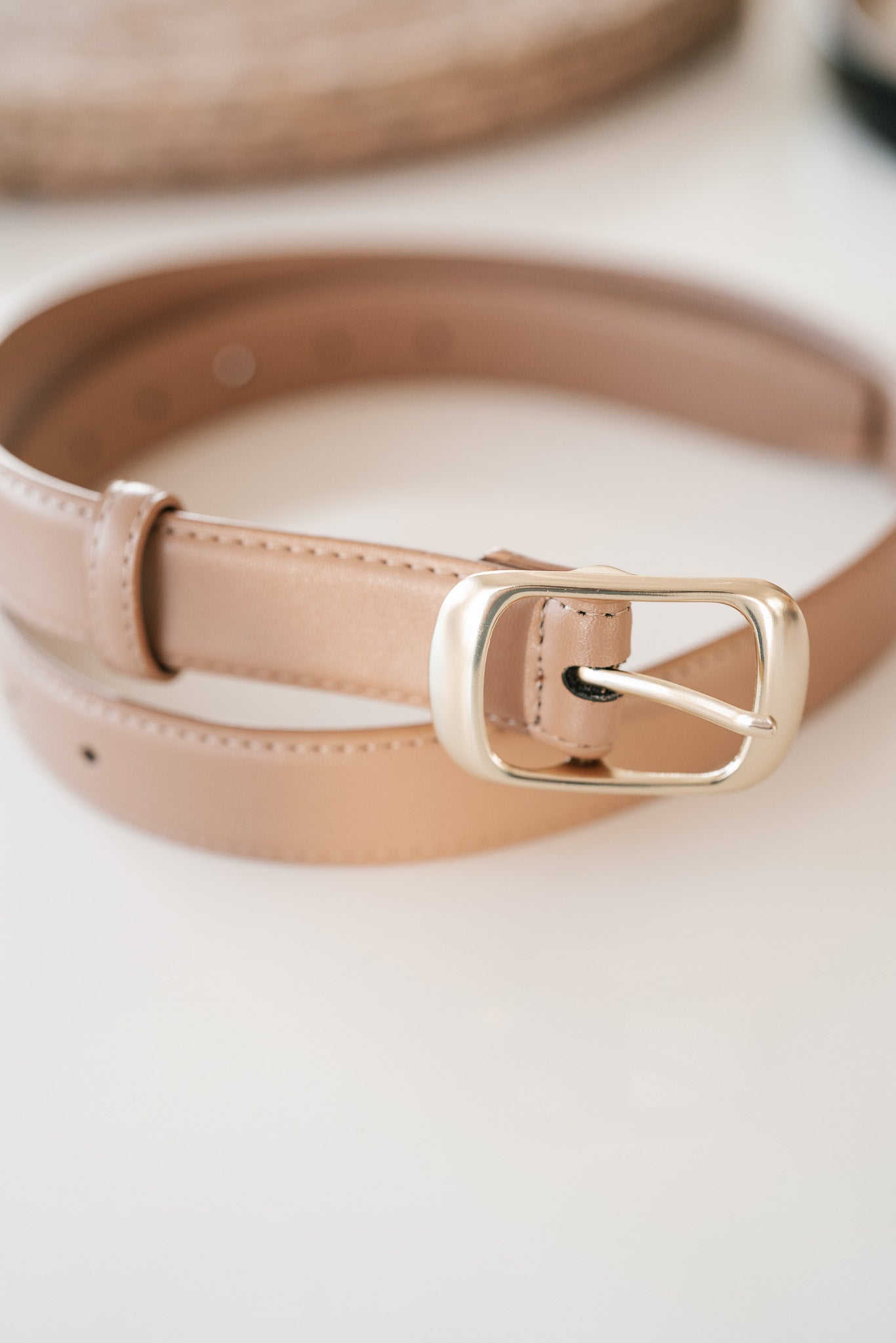 Elevate your everyday wardrobe with our Classic Taupe Slim Belt, a versatile essential designed for the modern woman. Crafted from premium, smooth-finish faux leather, this stone-colored belt features elegant contrast stitching and a timeless gold-tone rectangular buckle. Whether you're cinching a flowy dress to define your waist or adding a sophisticated touch to your favorite denim, this minimalist accessory provides the perfect blend of durability and understated glamour.