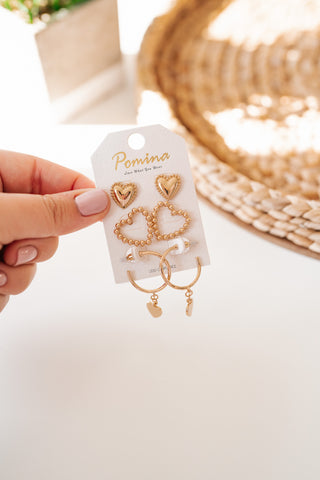 3 Gold Heart Earring Set