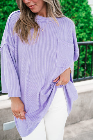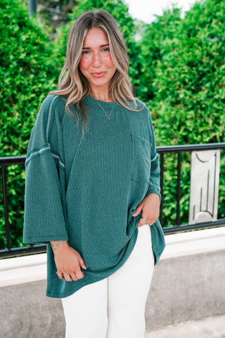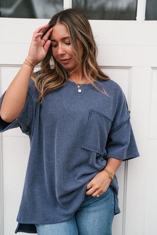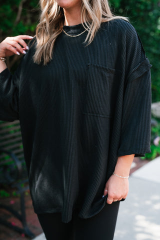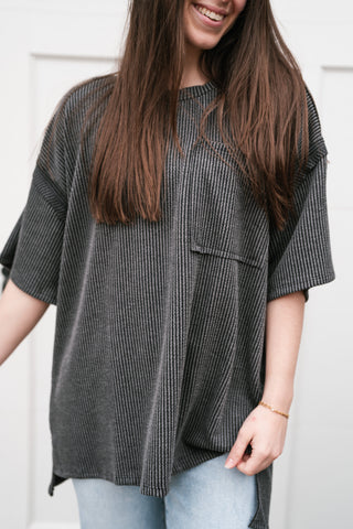 Forever Timeless Relaxed Ribbed Top- Charcoal