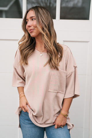 Forever Timeless Relaxed Ribbed Top- Taupe