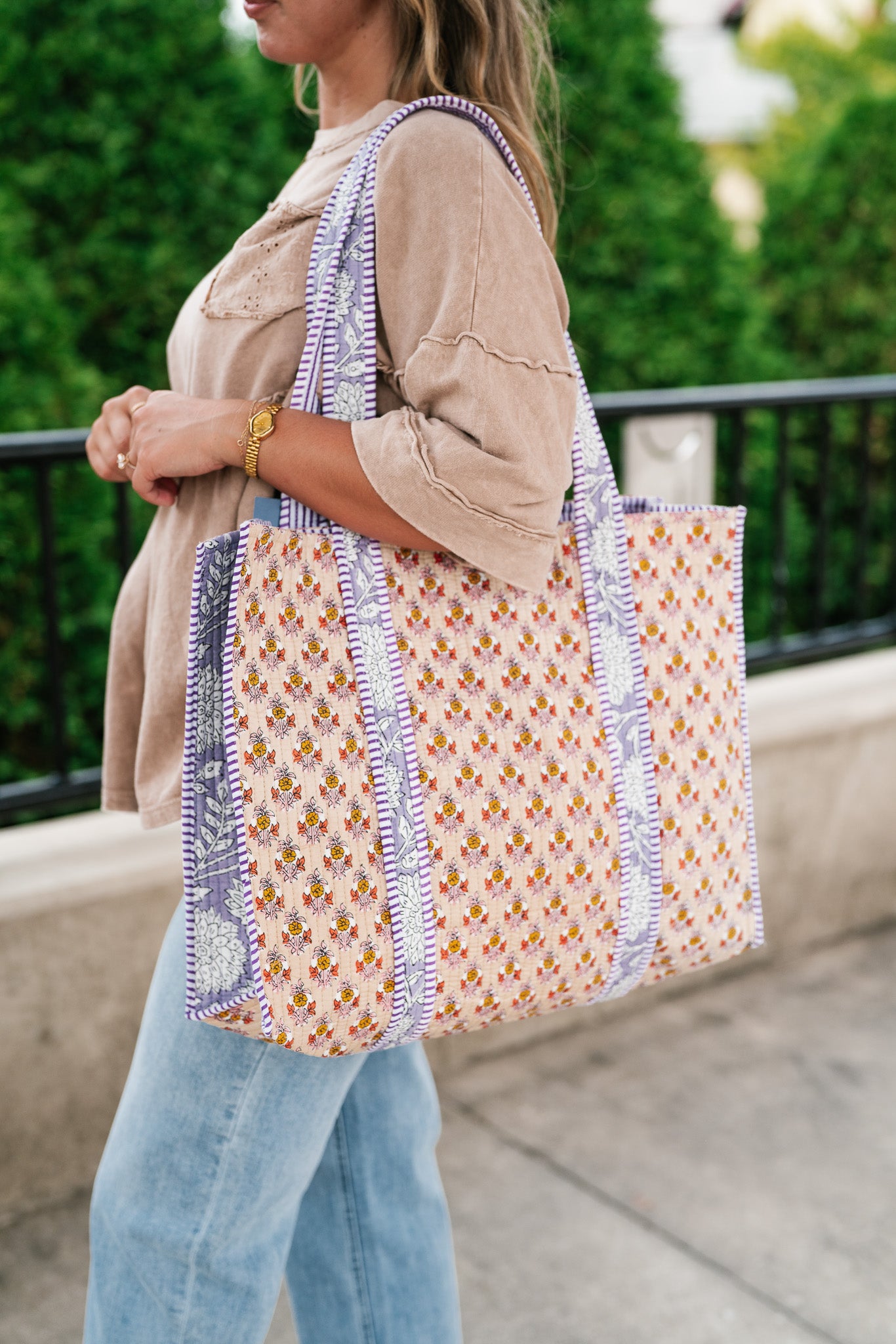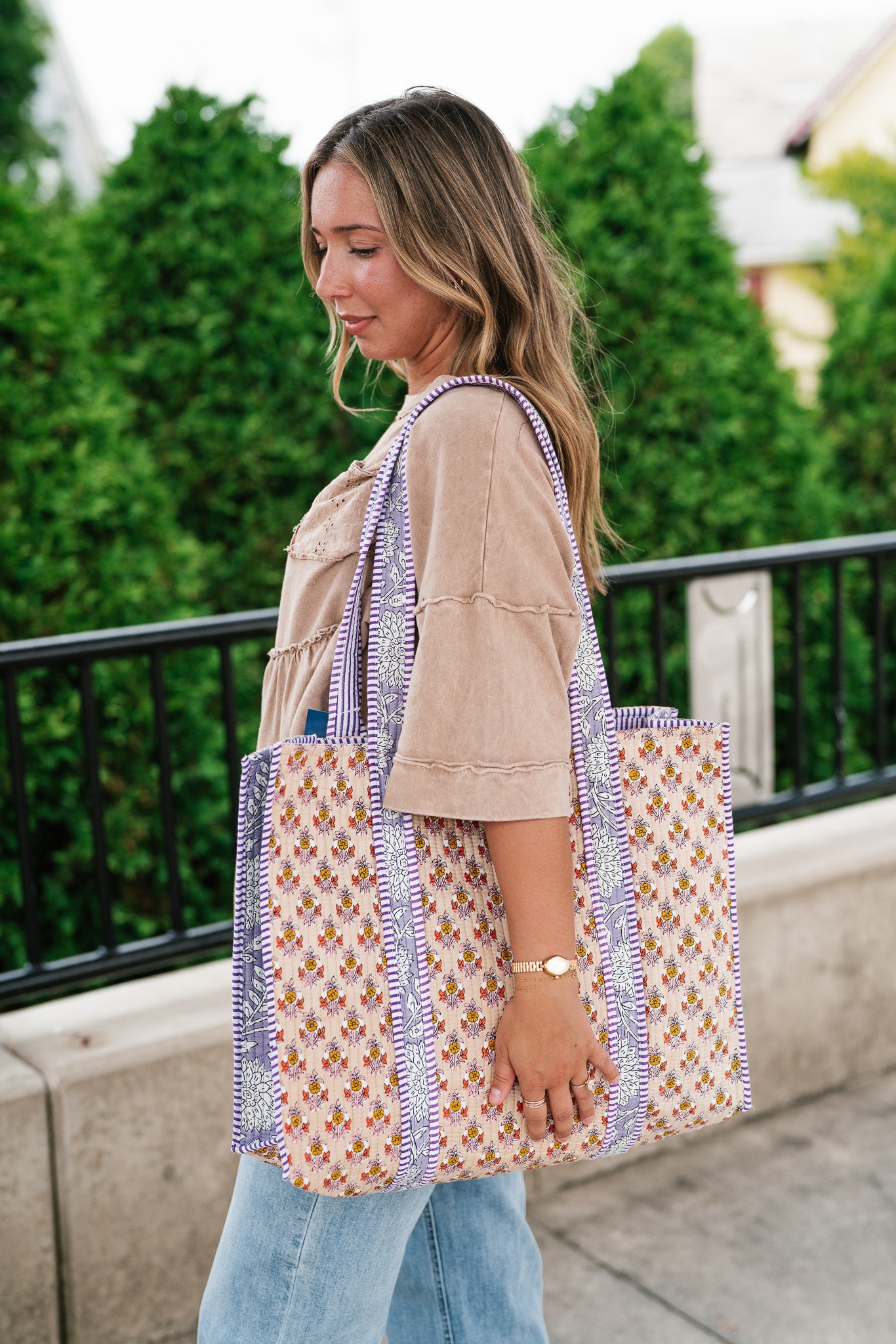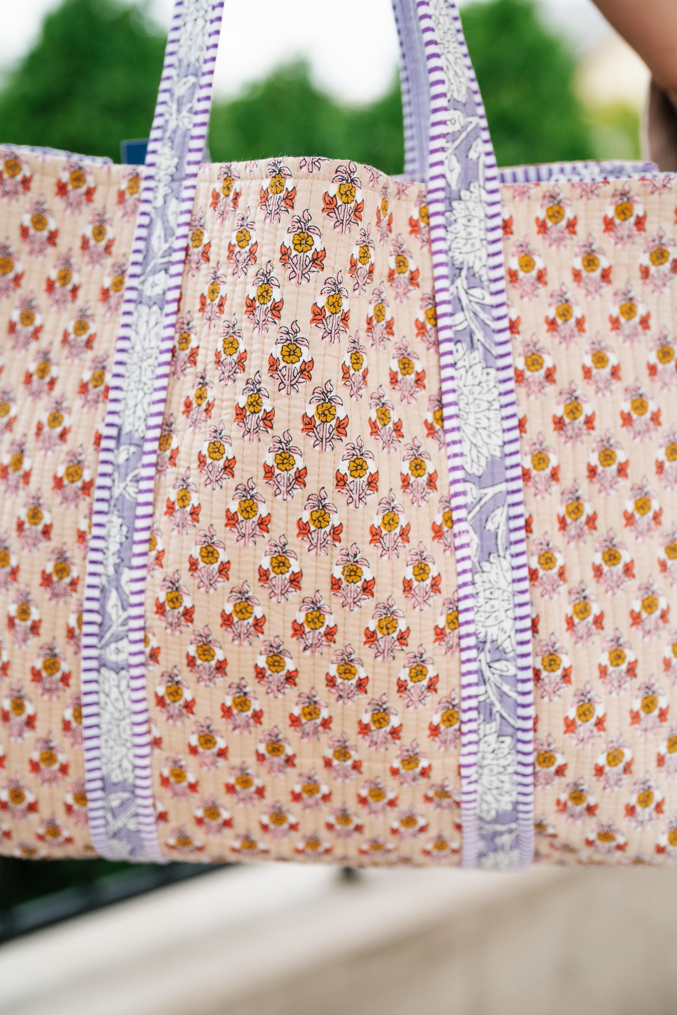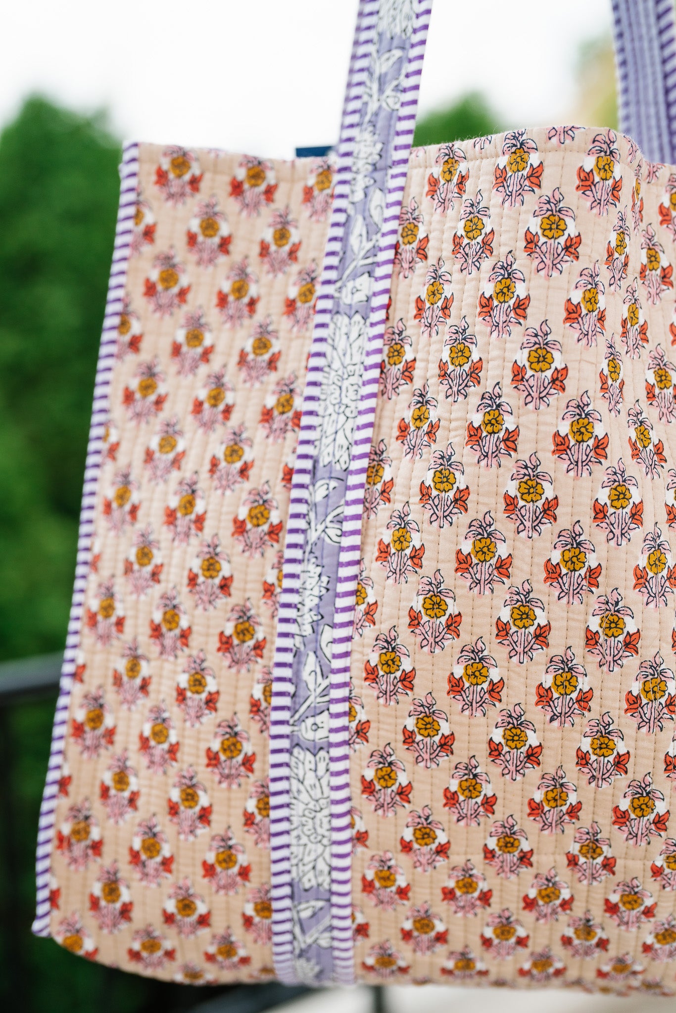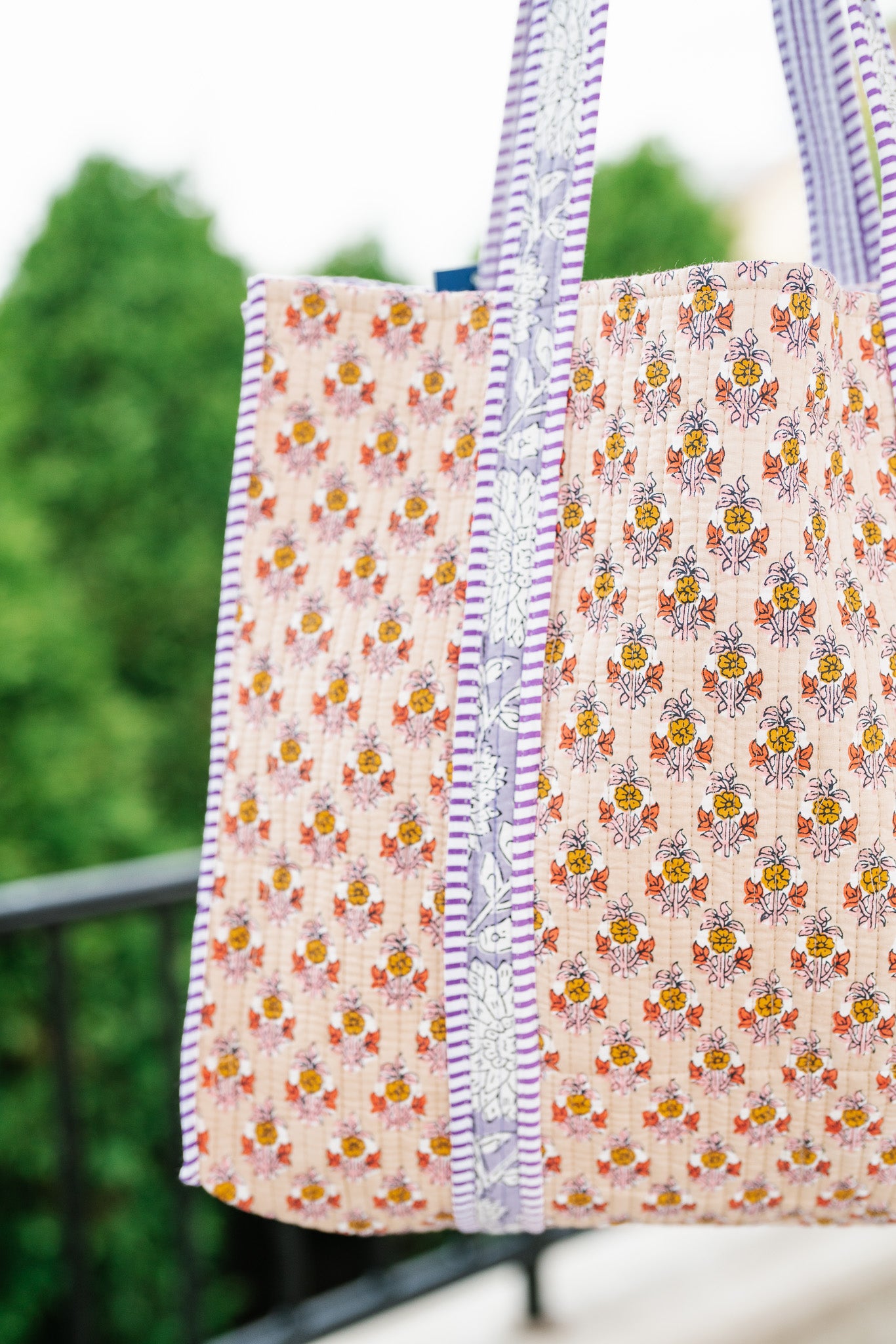 Each piece is crafted from 100% hand-printed fabric, so minor variations or subtle imperfections in the print are natural and part of its charm. Every bag will feature slightly different fabric patches, making each one truly unique while maintaining the same overall design as shown.