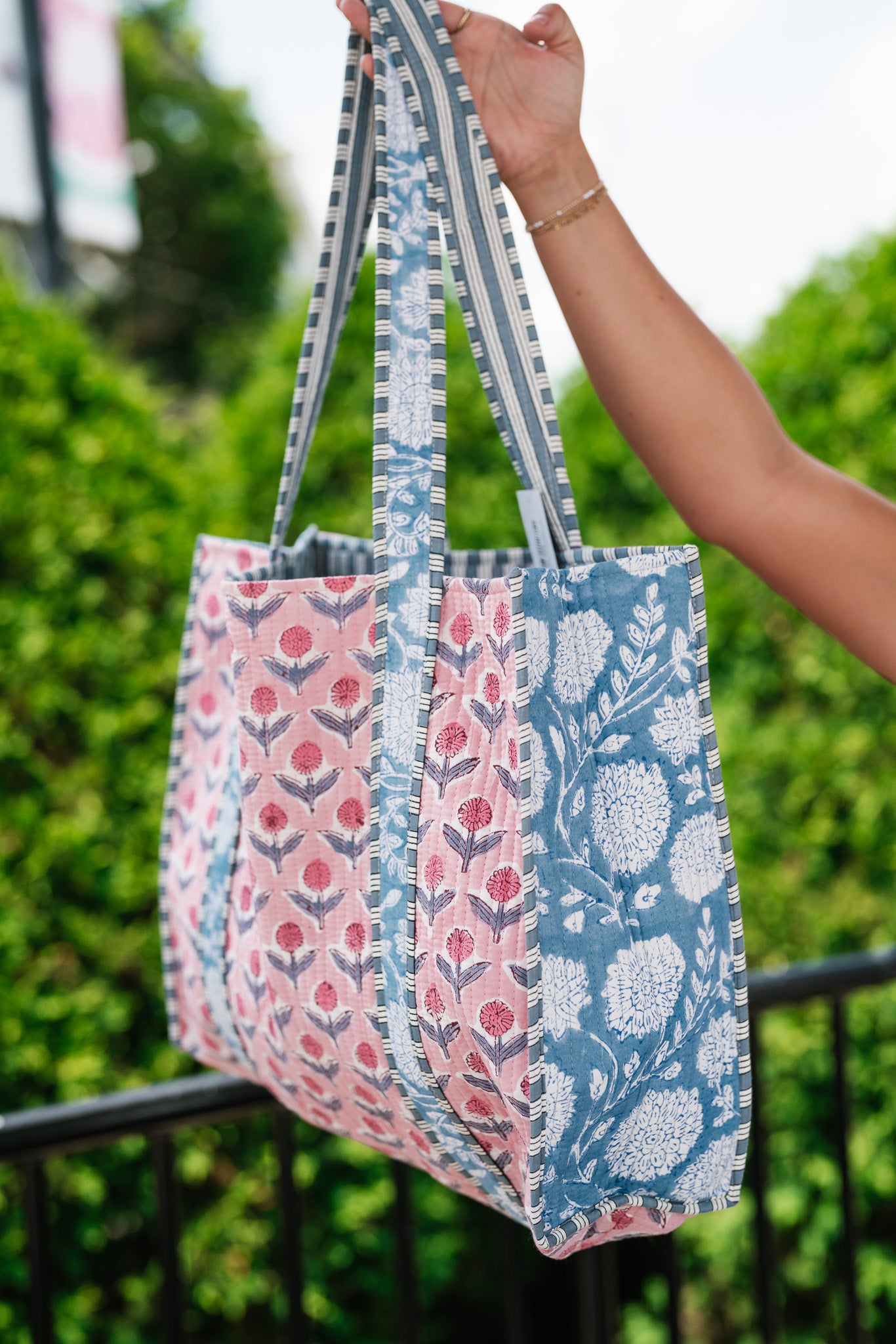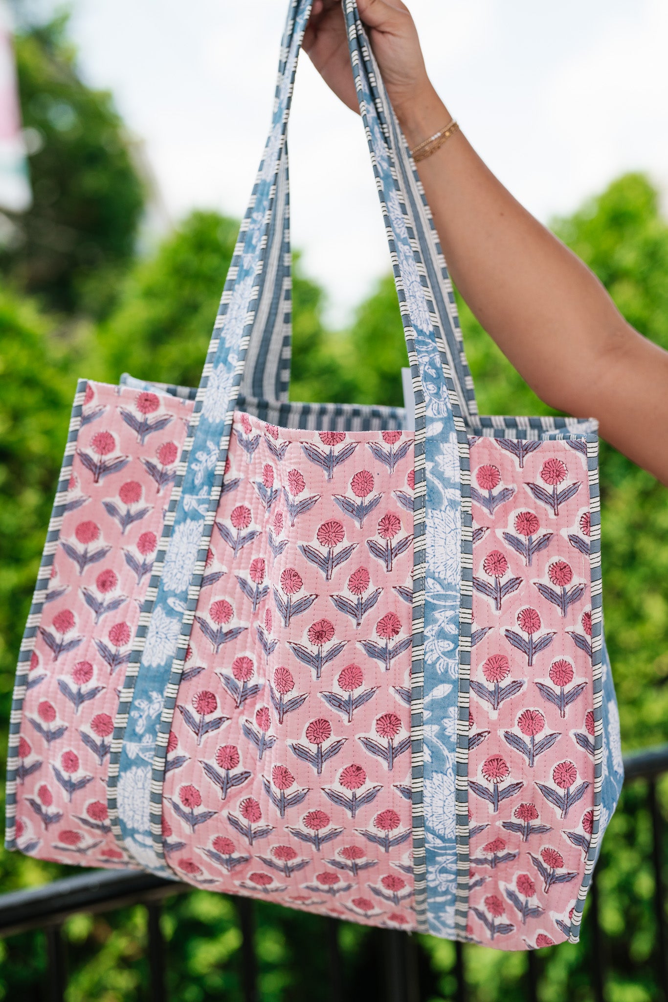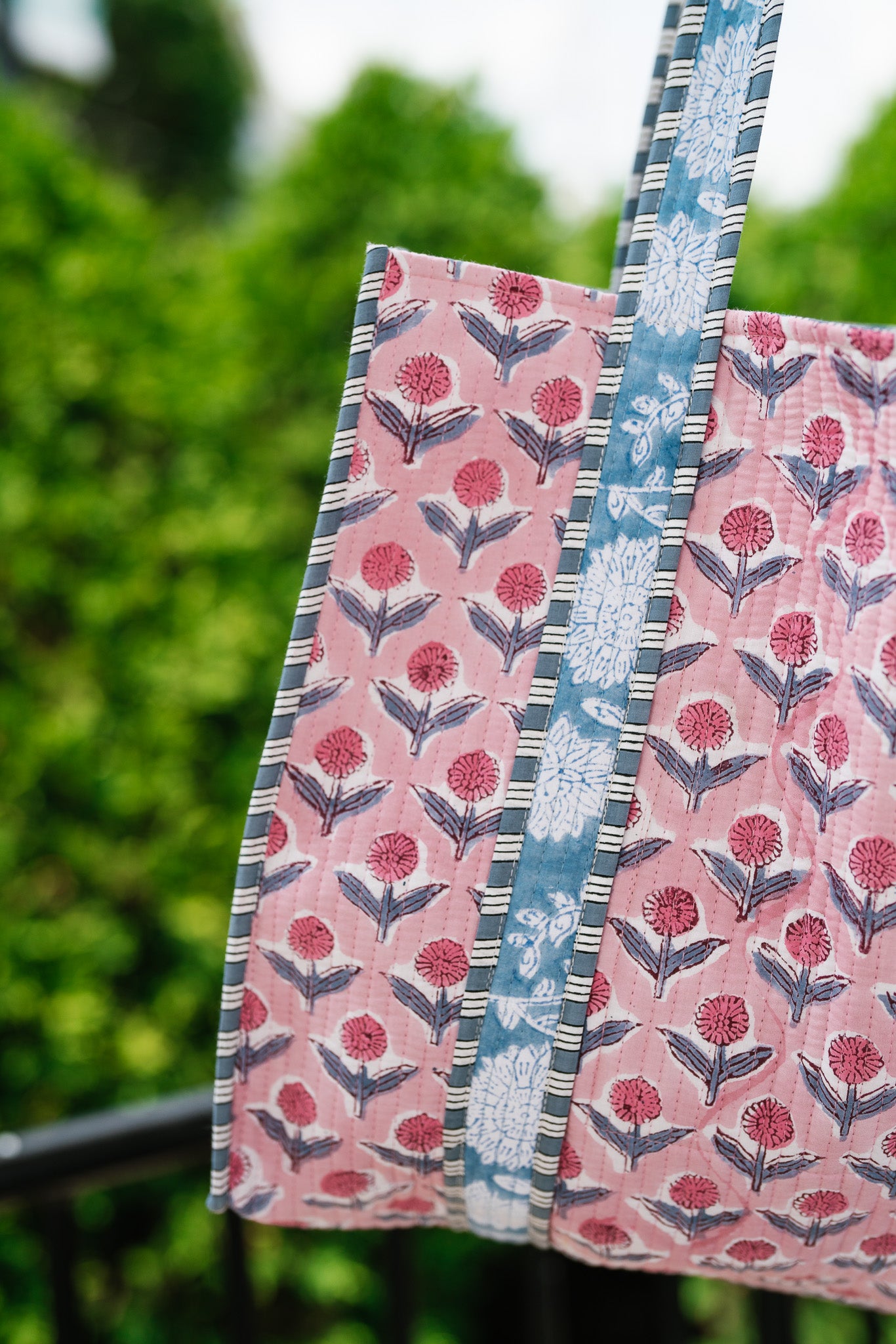 Each piece is crafted from 100% hand-printed fabric, so minor variations or subtle imperfections in the print are natural and part of its charm. Every bag will feature slightly different fabric patches, making each one truly unique while maintaining the same overall design as shown.