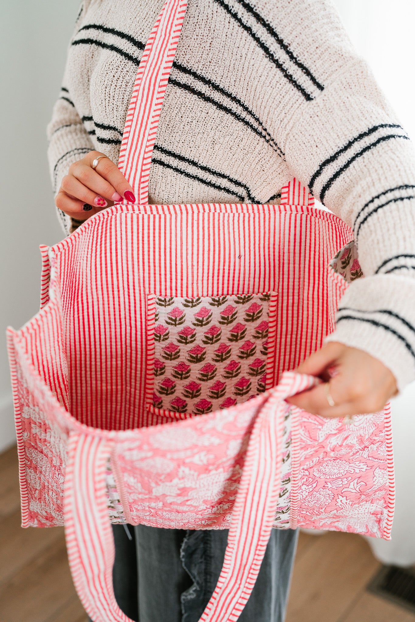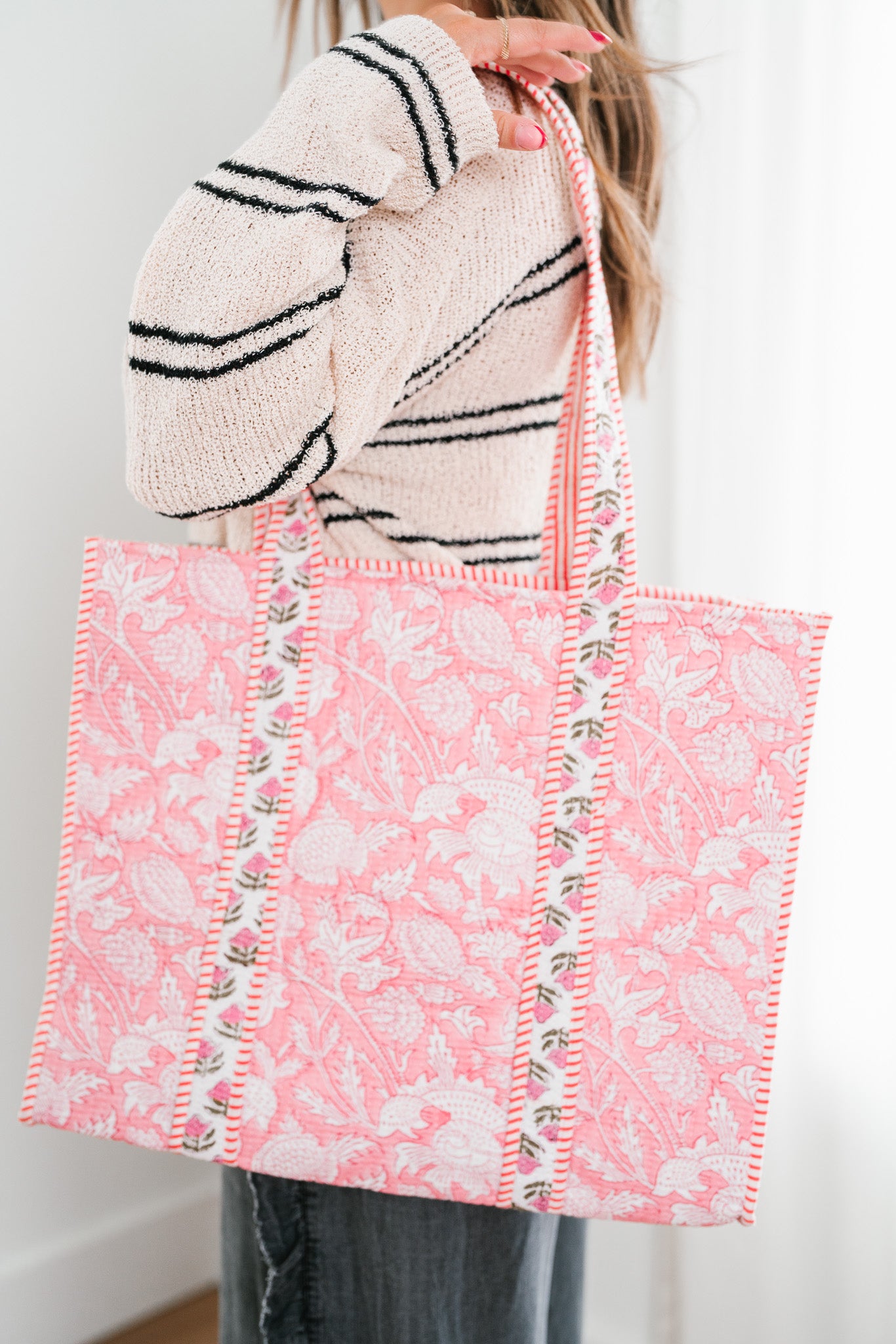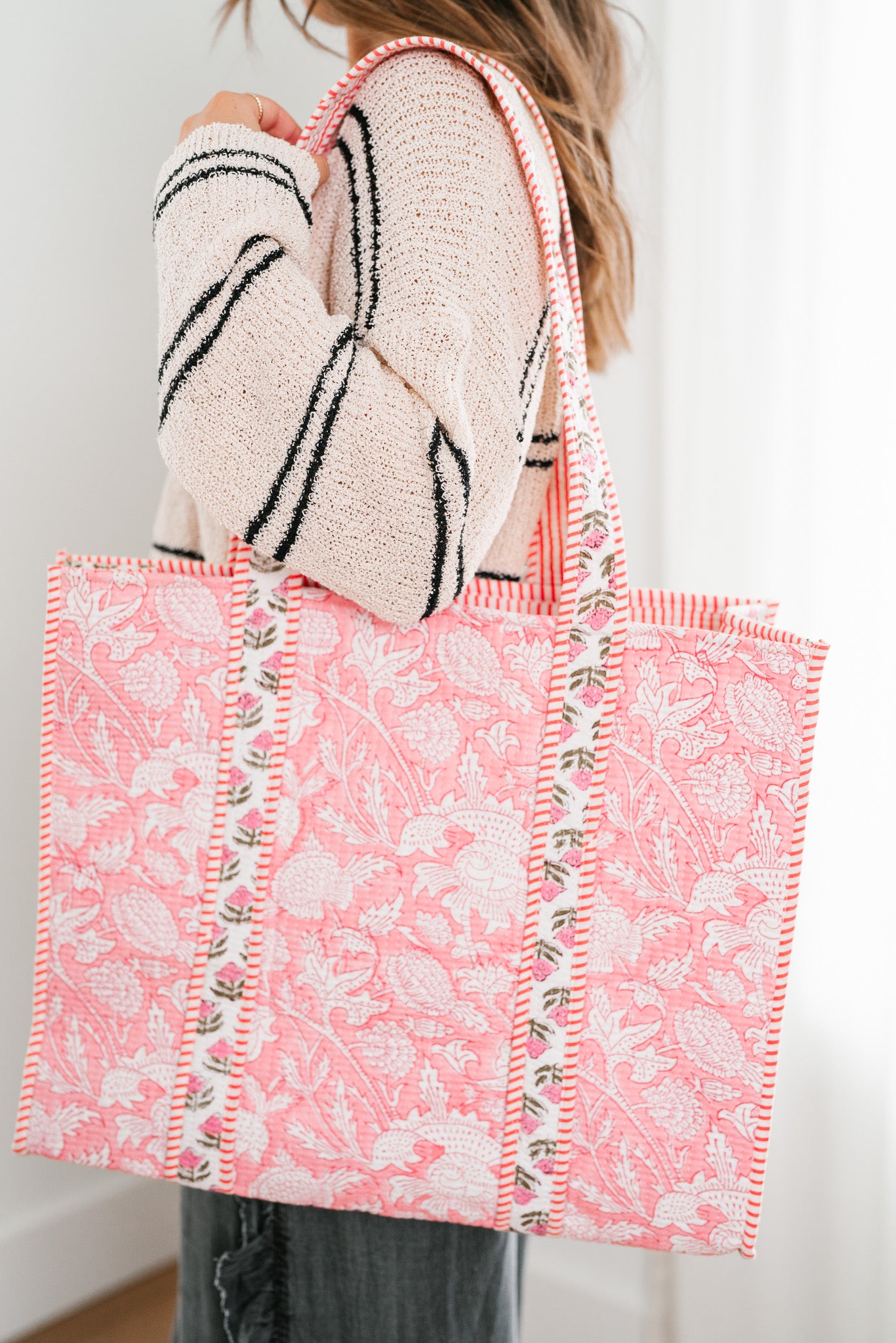 Add a touch of boho charm to your everyday look with our Valentina Patchwork Tote Bag - Pink. This spacious and lightweight tote features a unique mix of vibrant patterns and textures, beautifully stitched together for a one-of-a-kind design. Perfect for busy days, it boasts sturdy straps, a roomy interior to carry all your essentials, and a secure inner pocket for smaller items. Whether you're heading to the farmer's market, the beach, or simply running errands, this tote combines practicality with effortless style, making it your new go-to accessory.