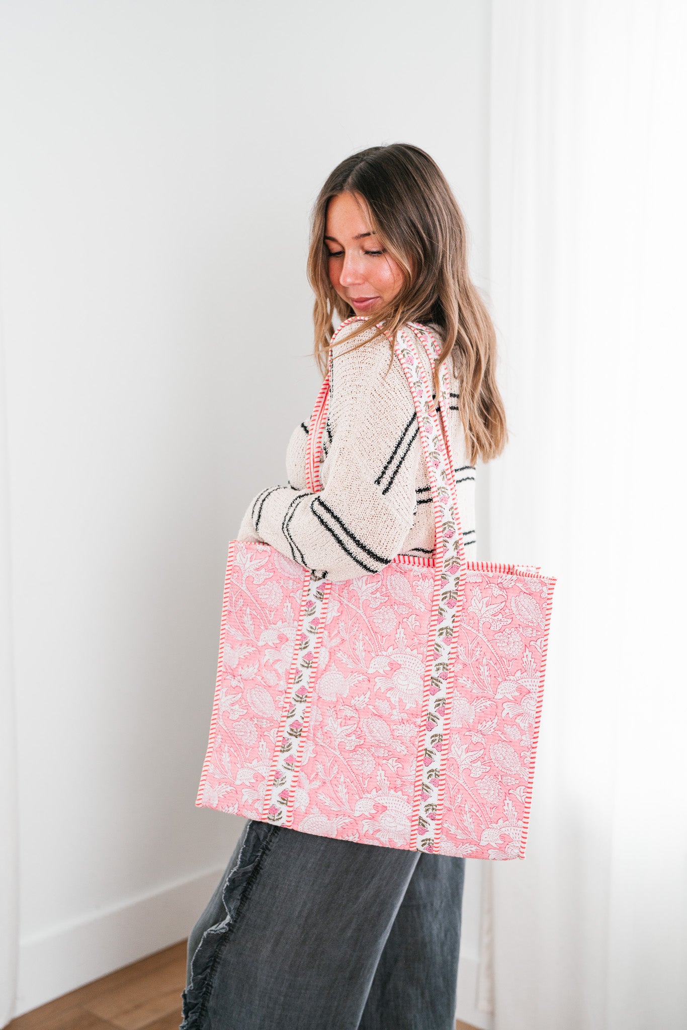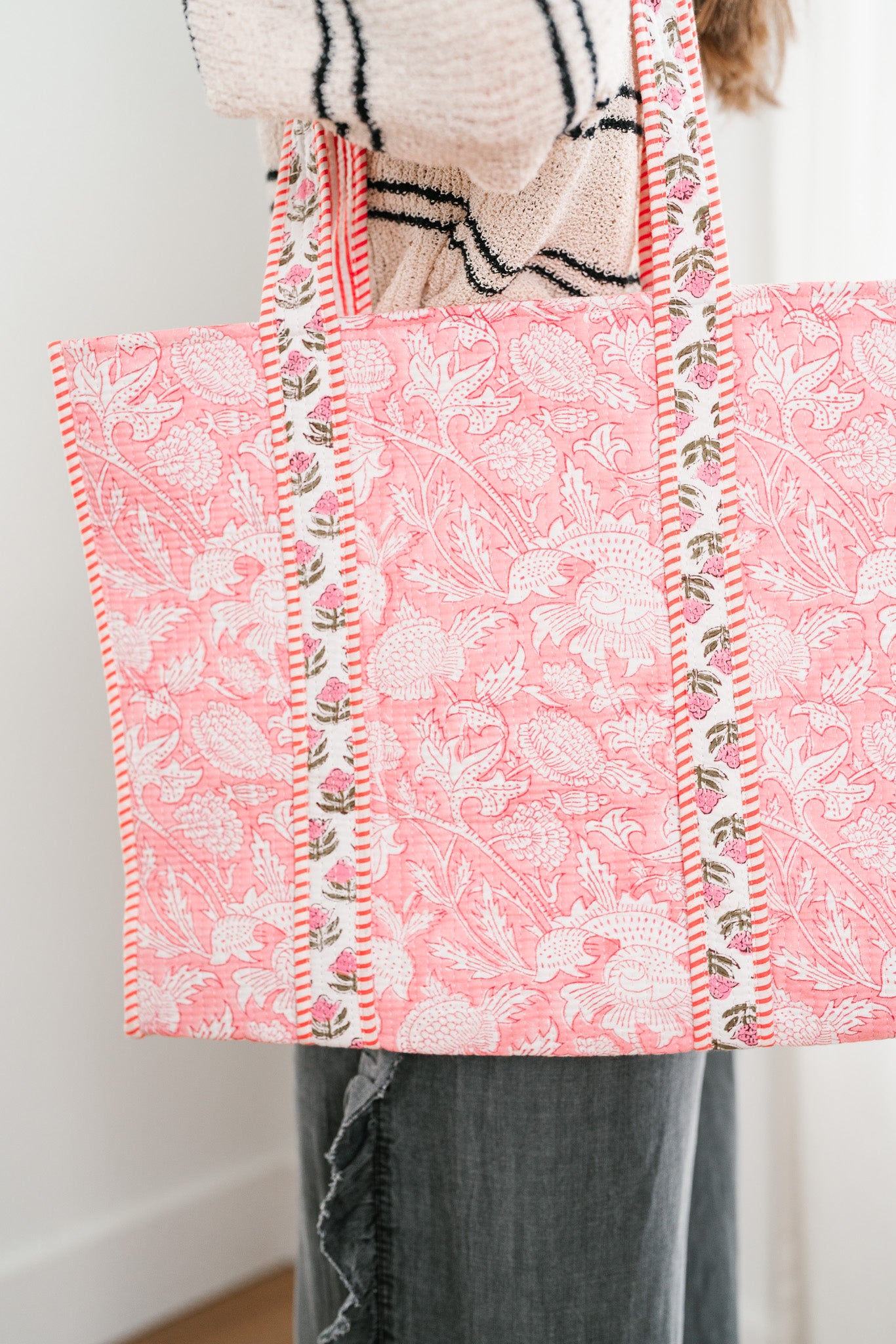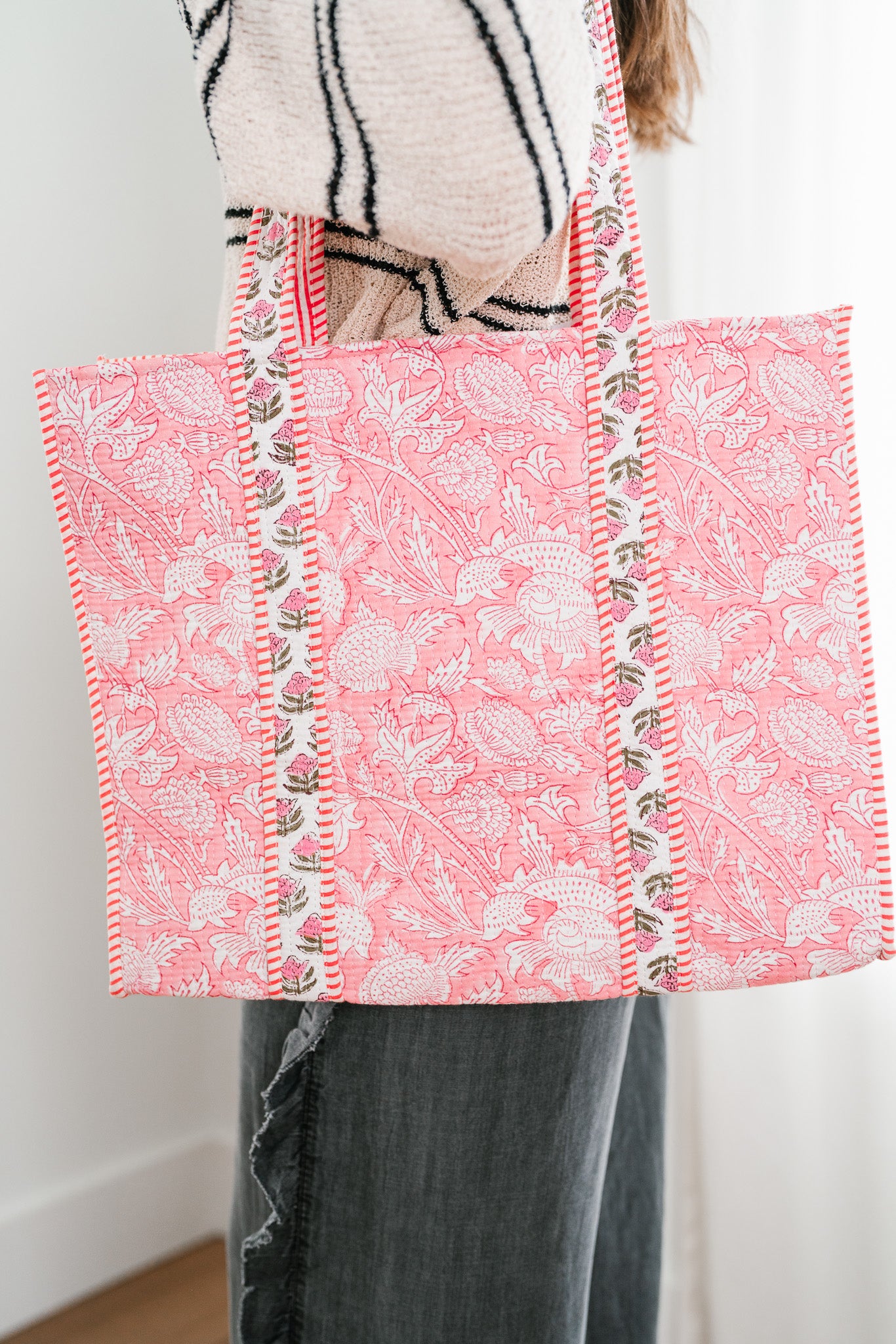 Add a touch of boho charm to your everyday look with our Valentina Patchwork Tote Bag - Pink. This spacious and lightweight tote features a unique mix of vibrant patterns and textures, beautifully stitched together for a one-of-a-kind design. Perfect for busy days, it boasts sturdy straps, a roomy interior to carry all your essentials, and a secure inner pocket for smaller items. Whether you're heading to the farmer's market, the beach, or simply running errands, this tote combines practicality with effortless style, making it your new go-to accessory.