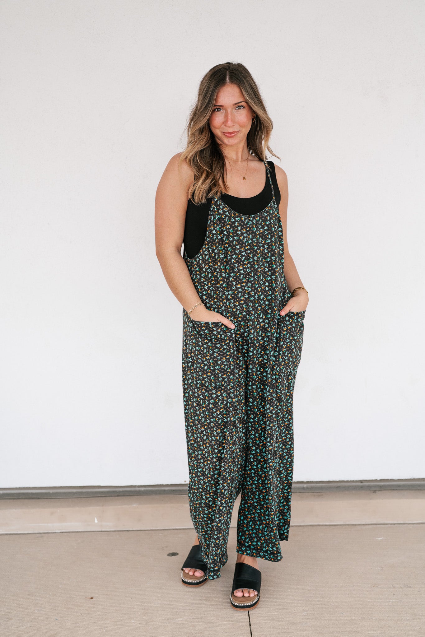 Our Dreamscape Floral Jumpsuit Designed with a relaxed silhouette and lightweight, breathable fabric, this piece is perfect for warm-weather days or layering through the seasons. The delicate allover floral print adds a soft, feminine touch, while the wide-leg design and oversized fit offer all-day ease and movement. Featuring roomy side pockets and adjustable straps, this jumpsuit is as functional as it is stylish. Pair it with a fitted tank or bralette underneath and your favorite sandals for an easy, throw-on-and-go look.