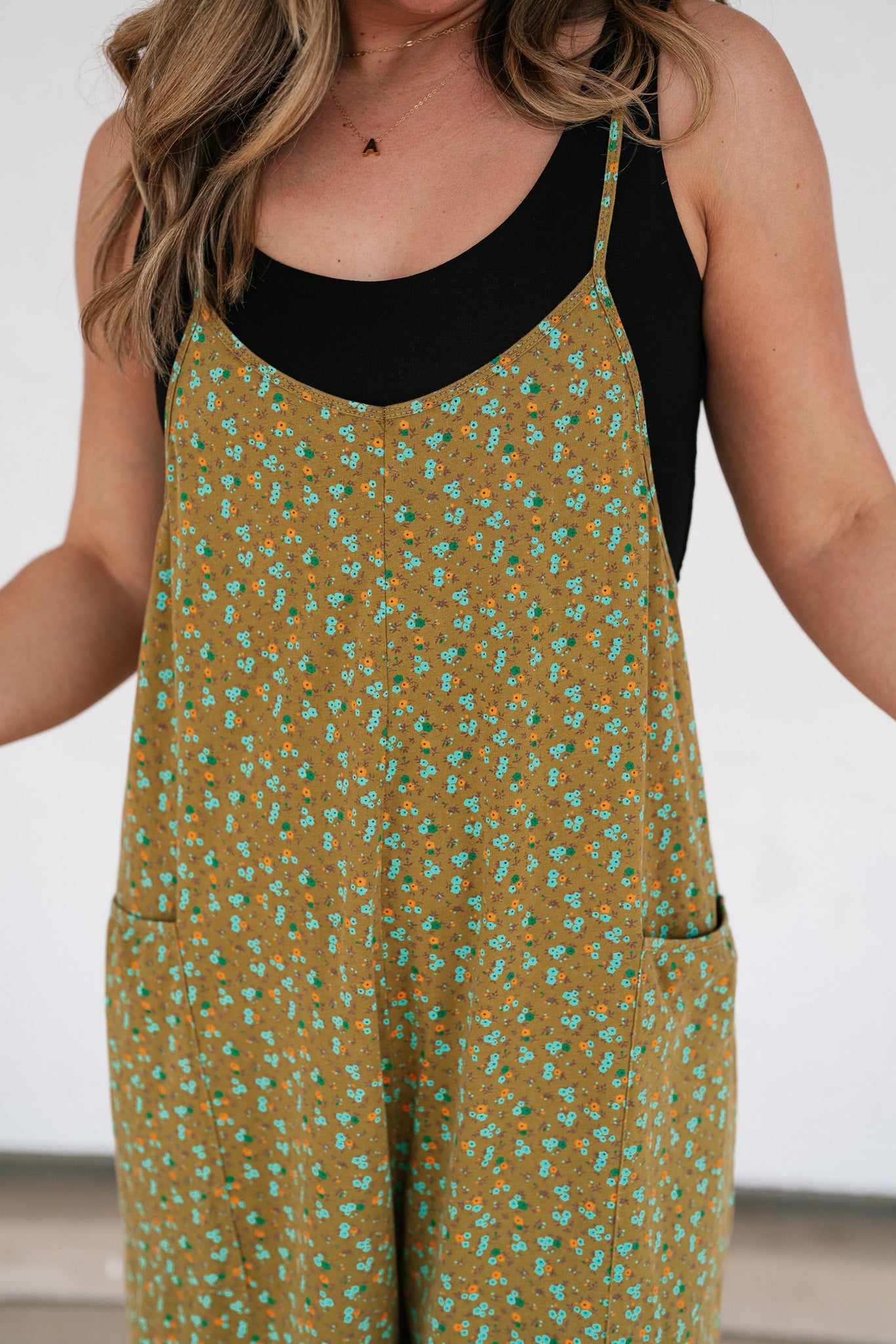 Our Dreamscape Floral Jumpsuit Designed with a relaxed silhouette and lightweight, breathable fabric, this piece is perfect for warm-weather days or layering through the seasons. The delicate allover floral print adds a soft, feminine touch, while the wide-leg design and oversized fit offer all-day ease and movement. Featuring roomy side pockets and adjustable straps, this jumpsuit is as functional as it is stylish. Pair it with a fitted tank or bralette underneath and your favorite sandals for an easy, throw-on-and-go look.