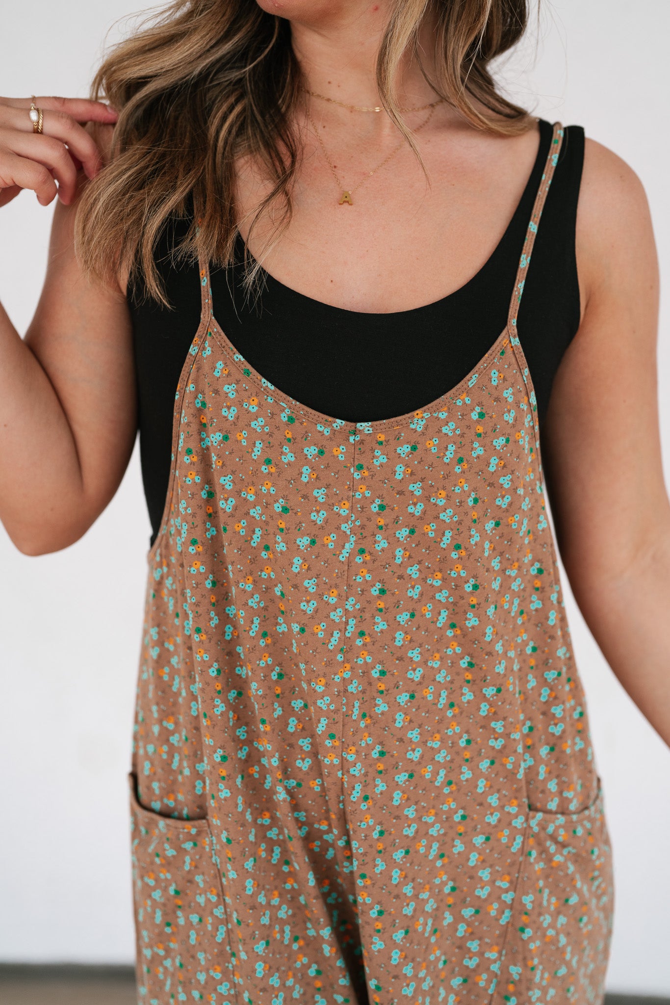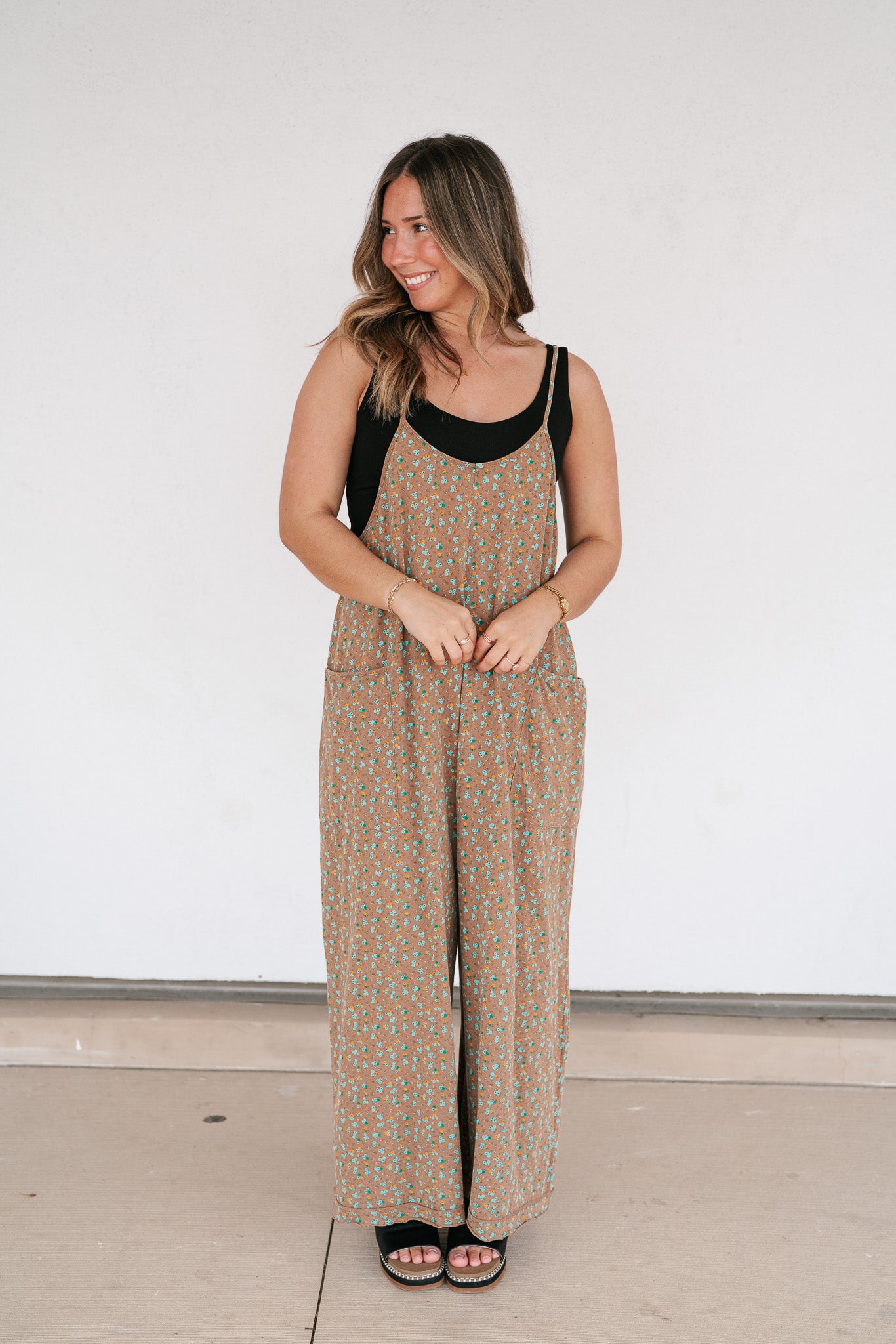 Our Dreamscape Floral Jumpsuit Designed with a relaxed silhouette and lightweight, breathable fabric, this piece is perfect for warm-weather days or layering through the seasons. The delicate allover floral print adds a soft, feminine touch, while the wide-leg design and oversized fit offer all-day ease and movement. Featuring roomy side pockets and adjustable straps, this jumpsuit is as functional as it is stylish. Pair it with a fitted tank or bralette underneath and your favorite sandals for an easy, throw-on-and-go look.