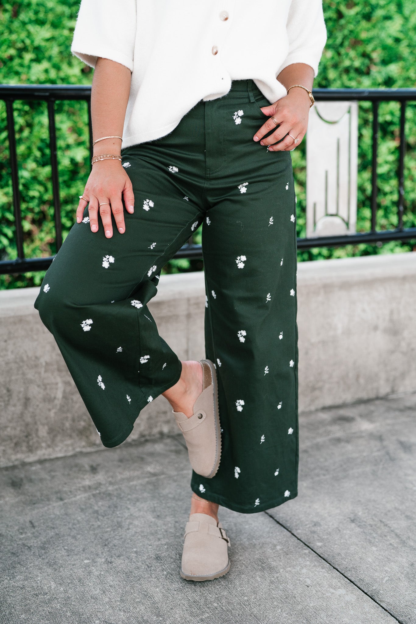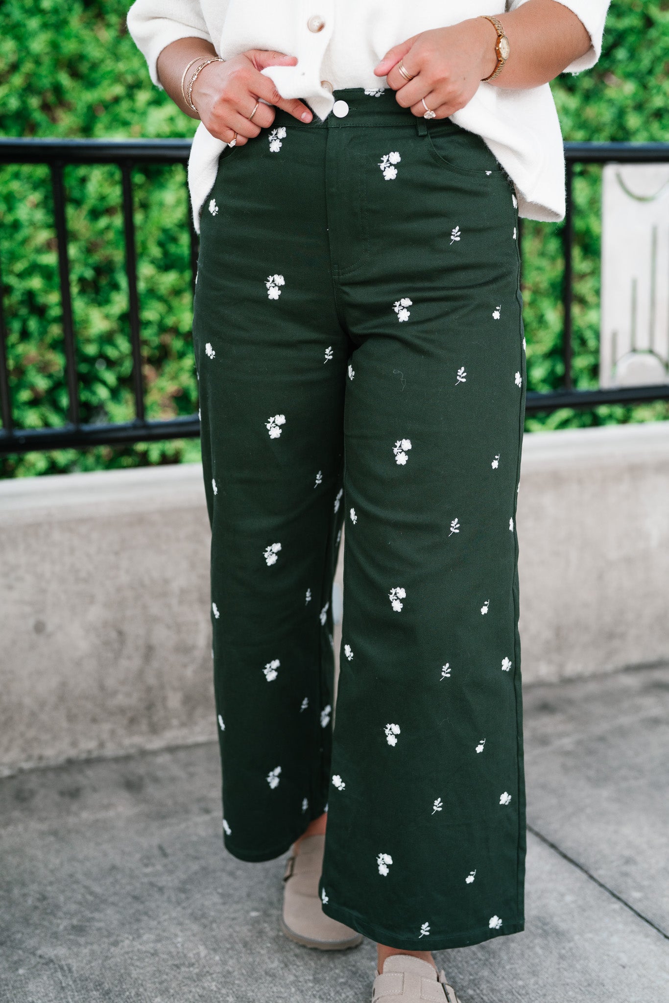 Embrace effortless elegance with the Olive Bloom Floral Wide Leg Pants, showcasing a rich deep olive background adorned with delicate white embroidered floral details. These wide leg pants combine comfort and style with a flowing silhouette that flatters every figure. Crafted from lightweight, breathable fabric, they offer all-day ease whether you’re dressing up for brunch or enjoying casual weekend vibes. The intricate embroidery adds a subtle, feminine touch, making these pants a standout piece in your wardrobe. Pair them with a simple blouse or knit top for a chic, laid-back look that’s perfect for any season.