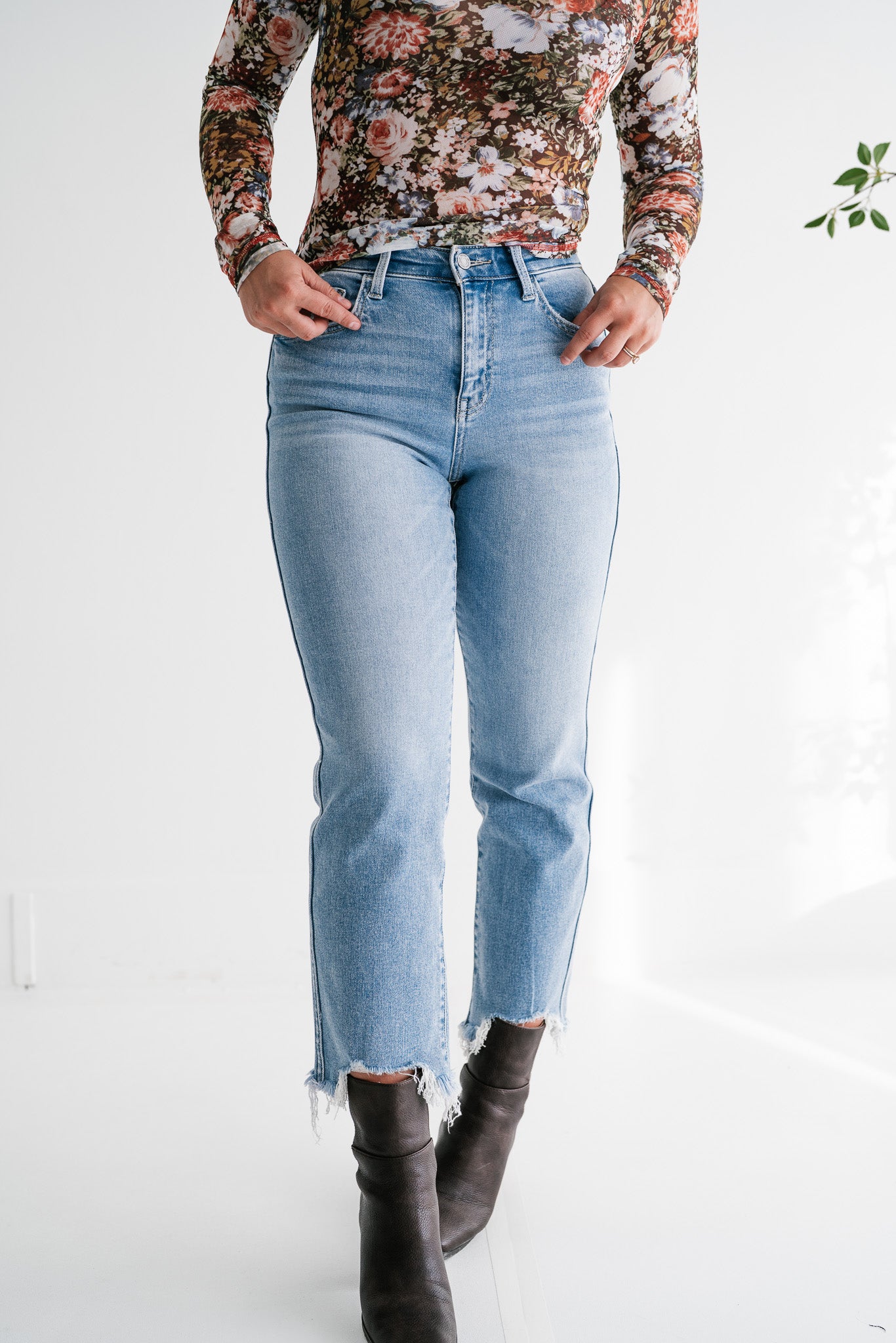 Avalon Trendy Light Wash Straight Leg Jeans | Frayed Hem & Ankle Slits
