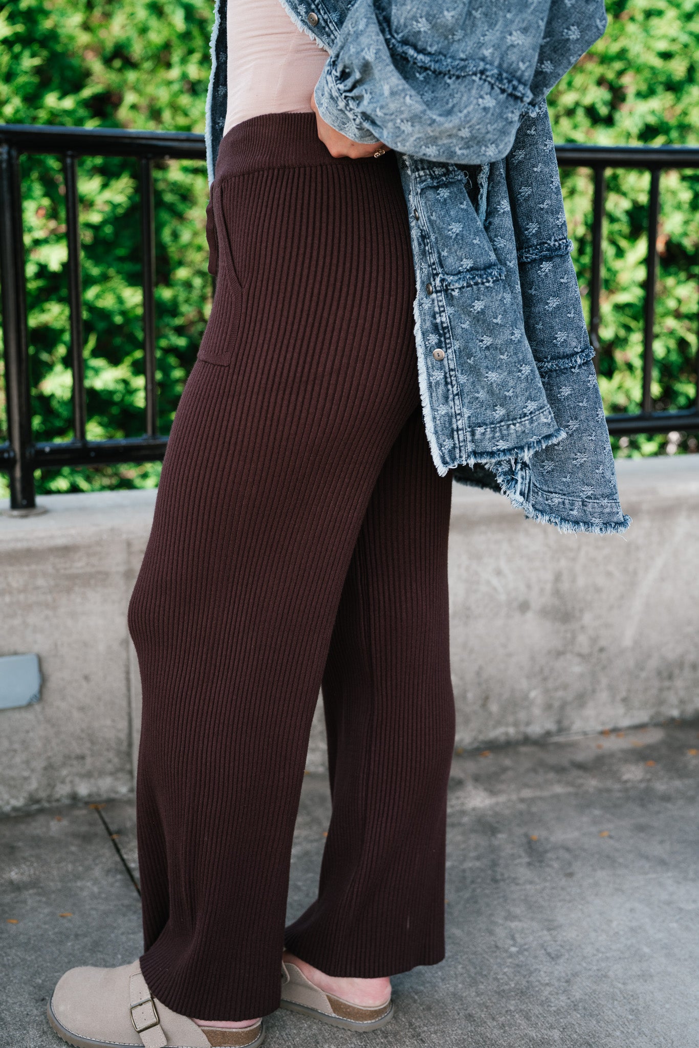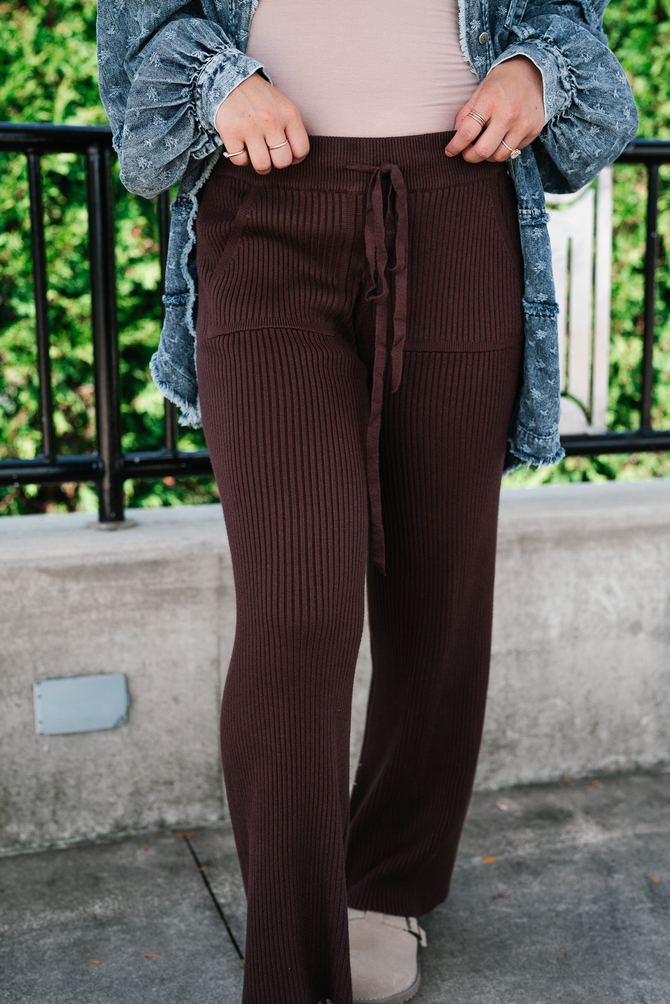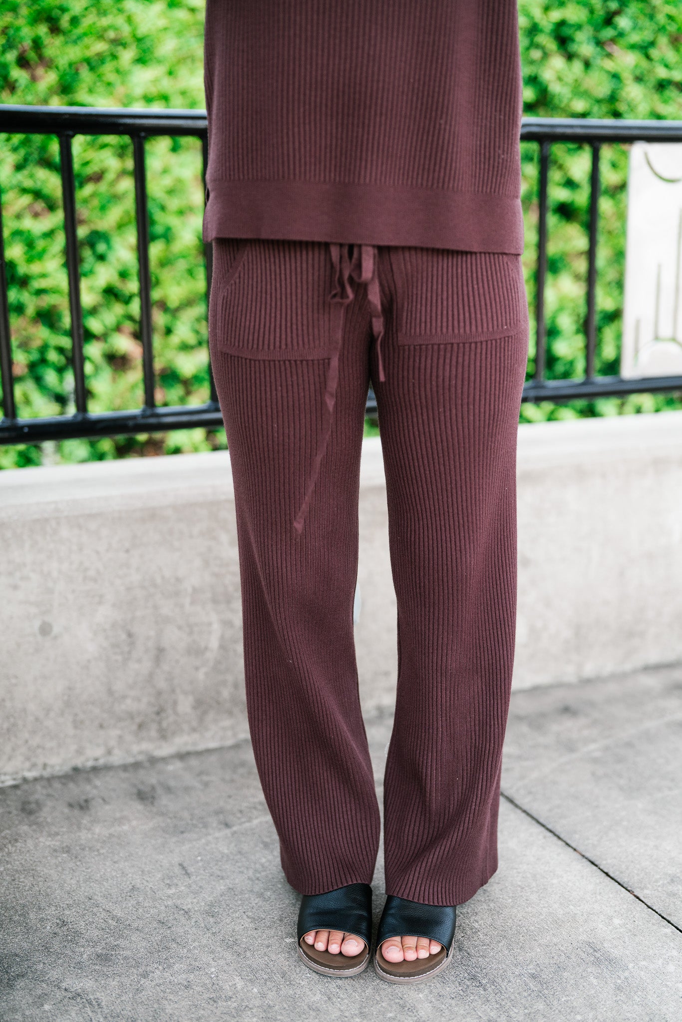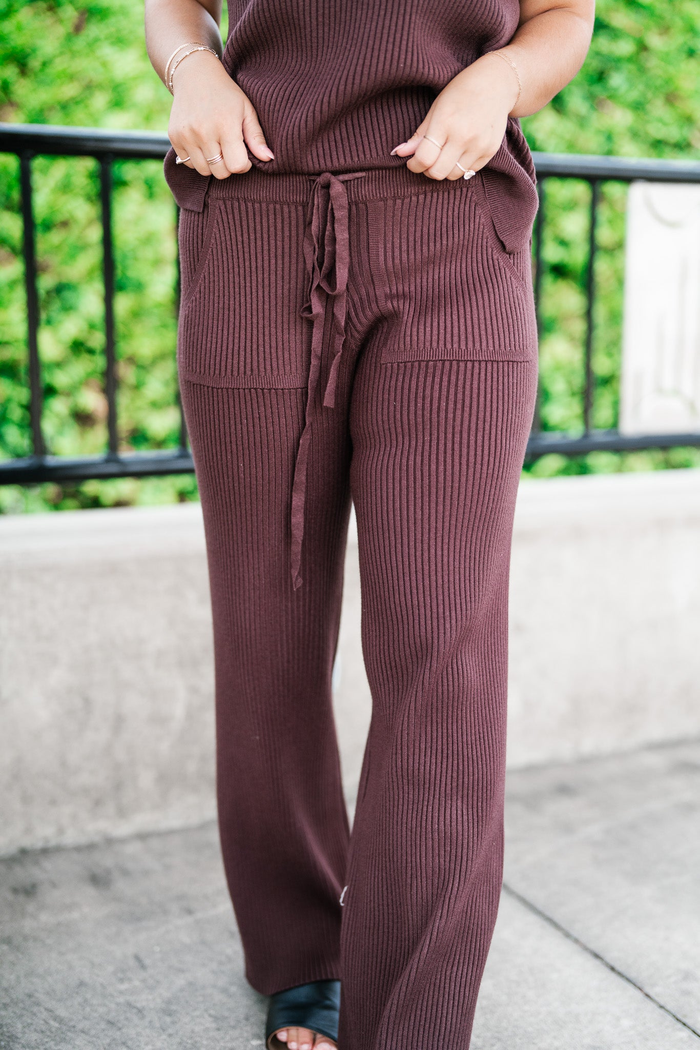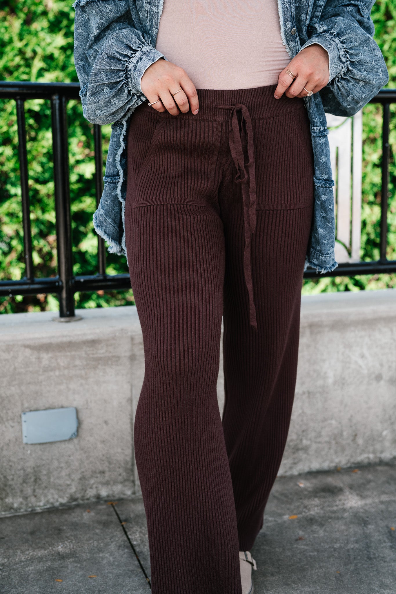 Comfort Breeze Ribbed Wide Leg Pant - Brown will elevate your loungewear collection.