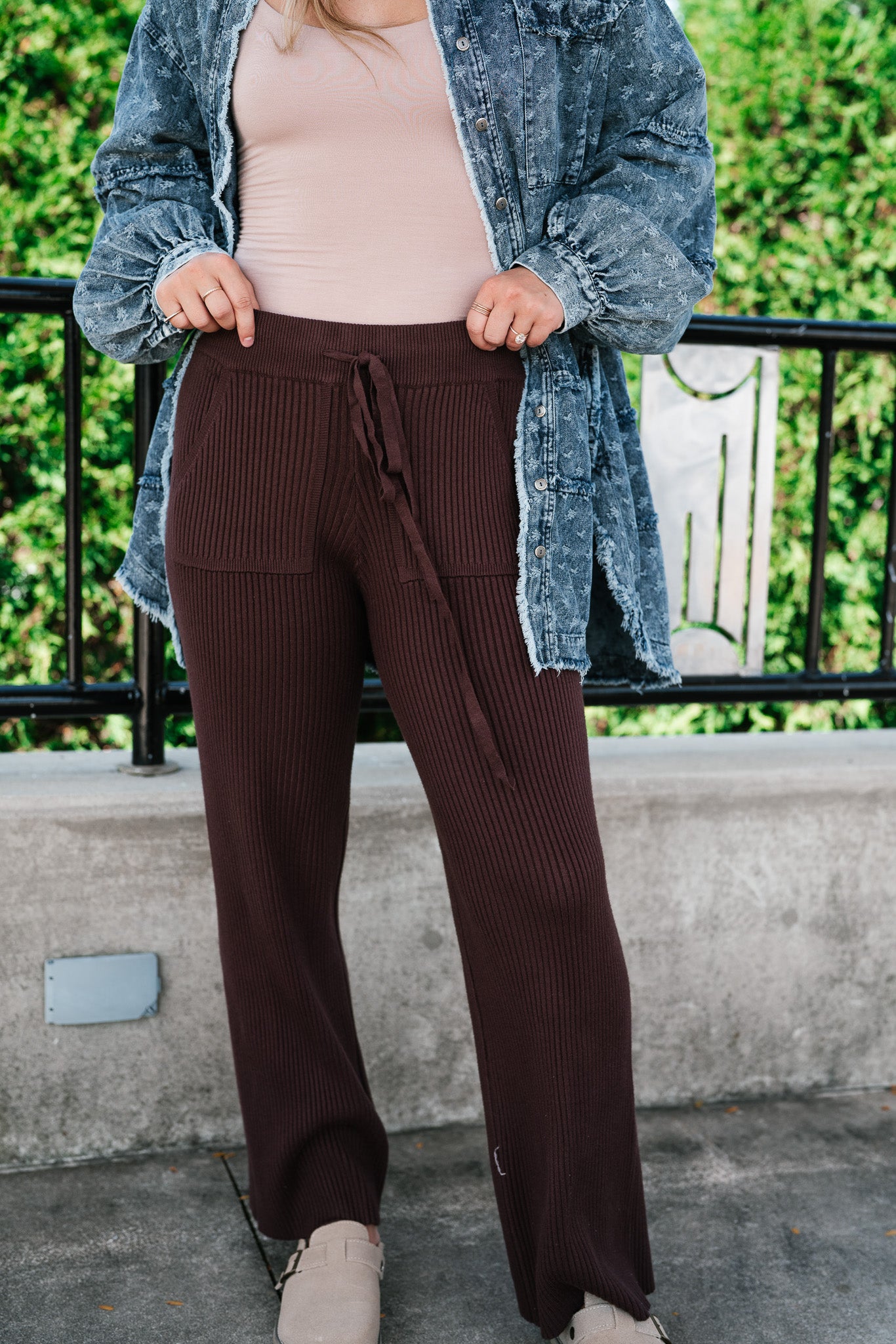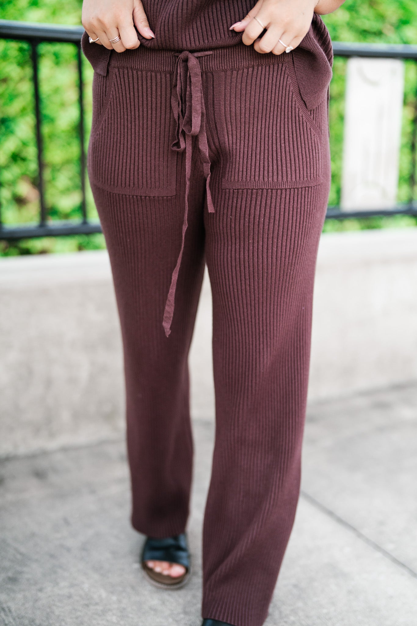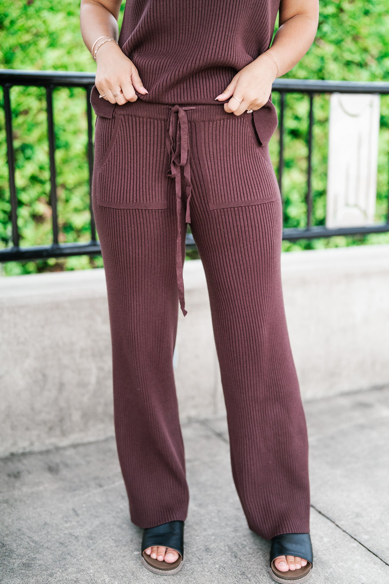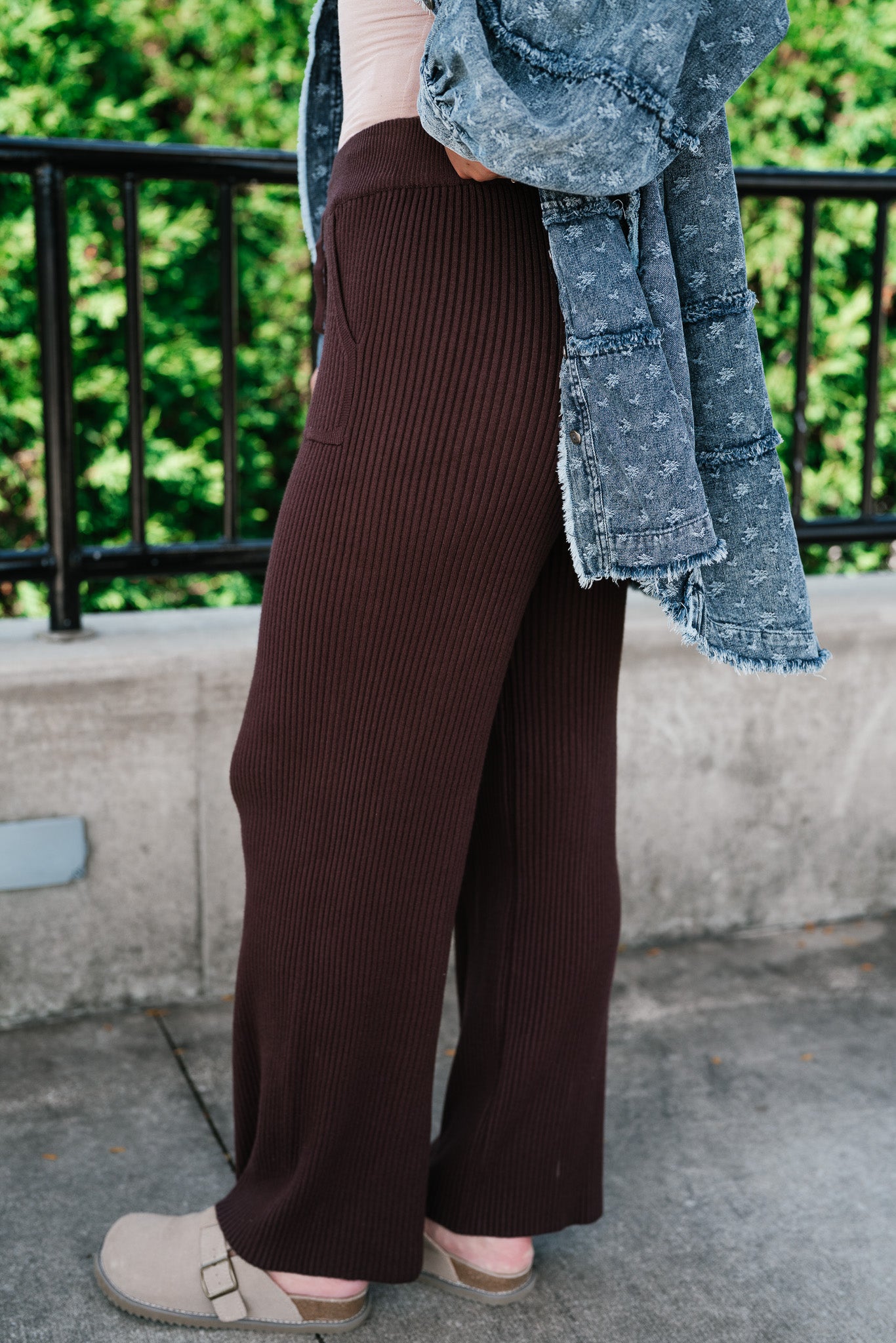Comfort Breeze Ribbed Wide Leg Pant - Brown will elevate your loungewear collection.