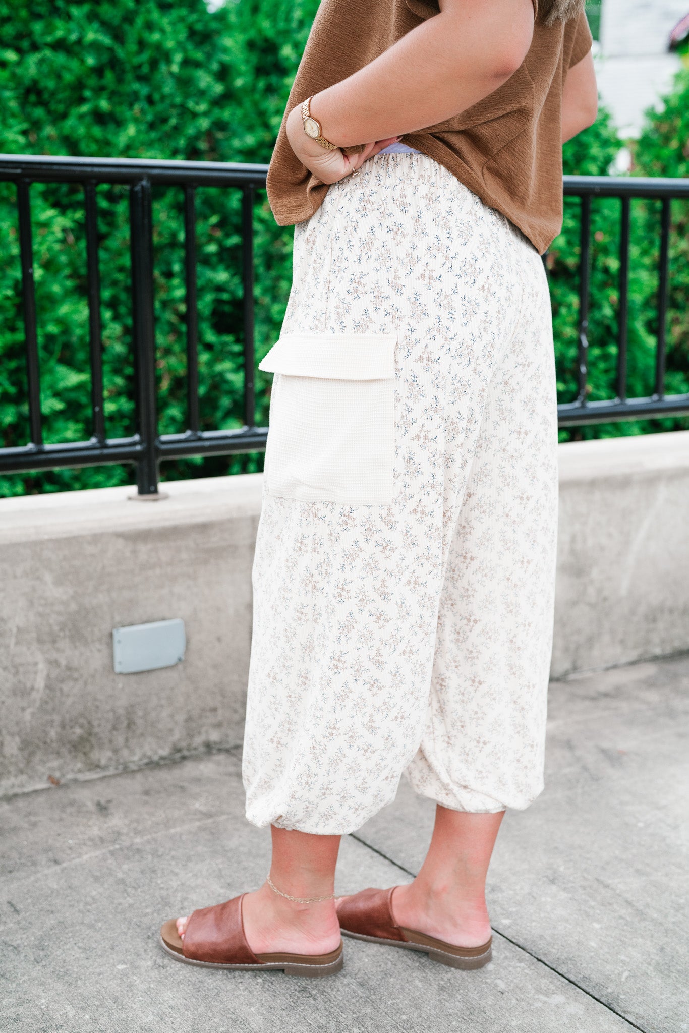 Say hello to breezy charm with the Summer's End Dainty Floral Balloon Pant. Designed with a soft, feminine floral print and a relaxed balloon silhouette, these pants offer a playful yet polished feel. They fit like a cropped pant and feature an elastic bottom hem that gives a gently cinched look—perfect for showing off your favorite sandals or sneakers. Lightweight and flowy with an easy pull-on waistband, these pants are made for late summer strolls, coffee dates, and laid-back days with style.