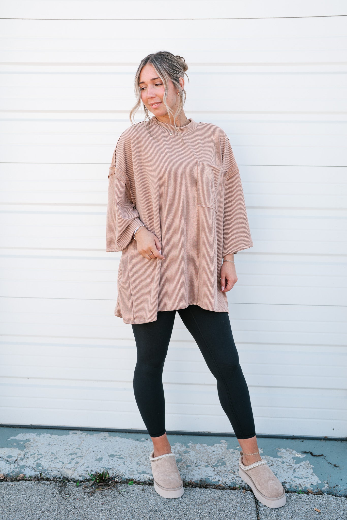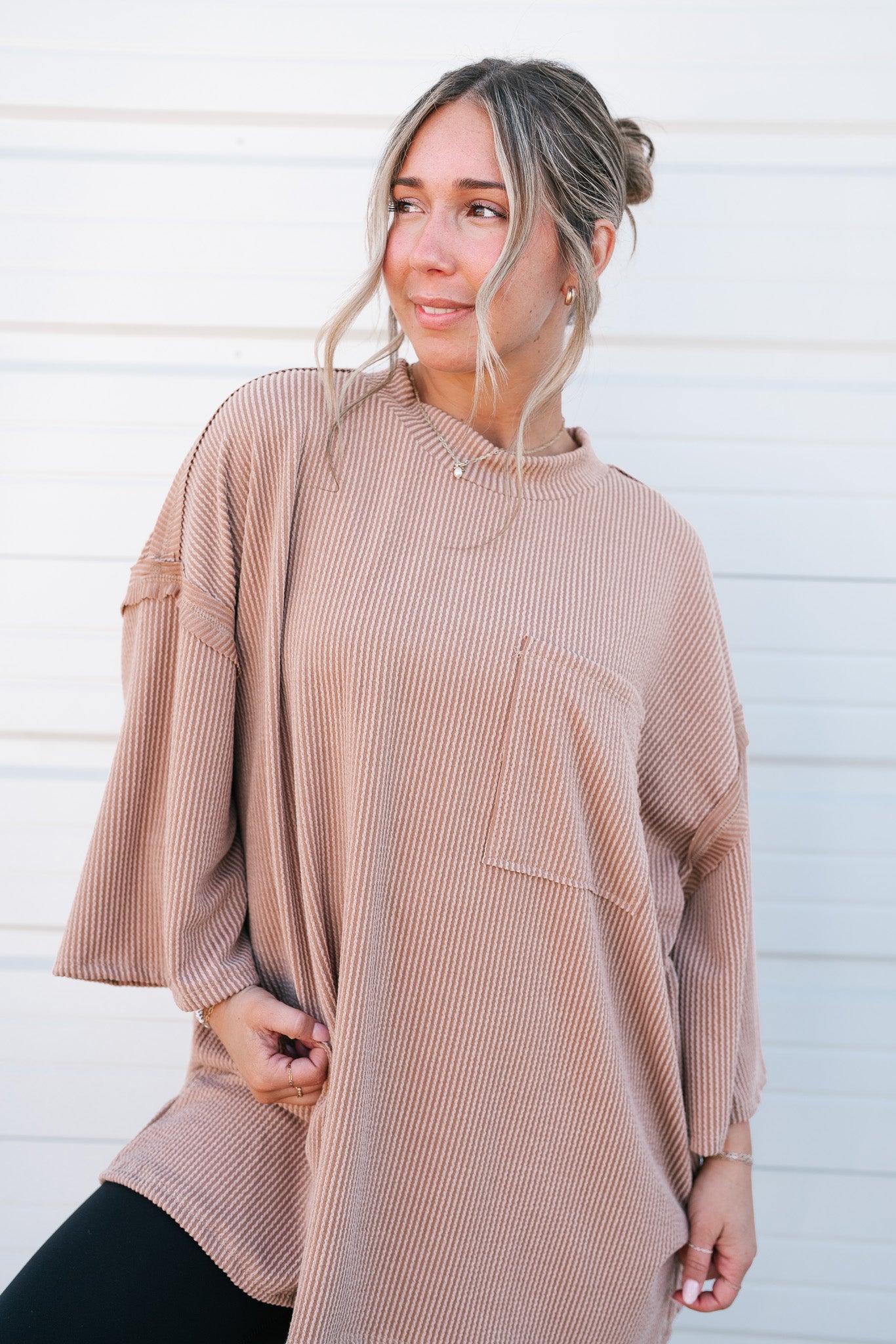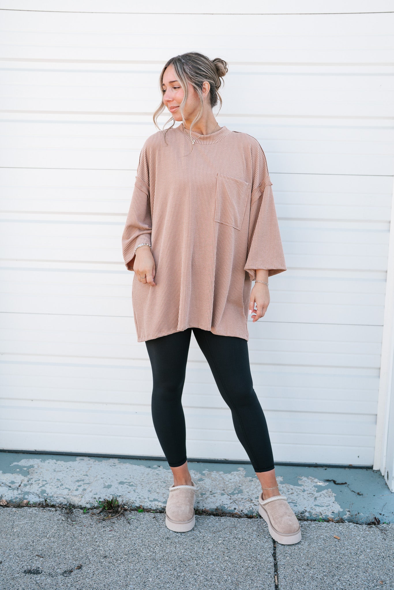 Elevate your everyday fashion with our first Birch & Bell Exclusive - the Forever Ideal Ribbed Top, the ultimate blend of comfort and style. Designed with a longer fit, this top pairs perfectly with leggings, giving you that effortlessly chic look. The drop shoulder design and reversed seam detail add a touch of casual sophistication, making it a versatile addition to your wardrobe.