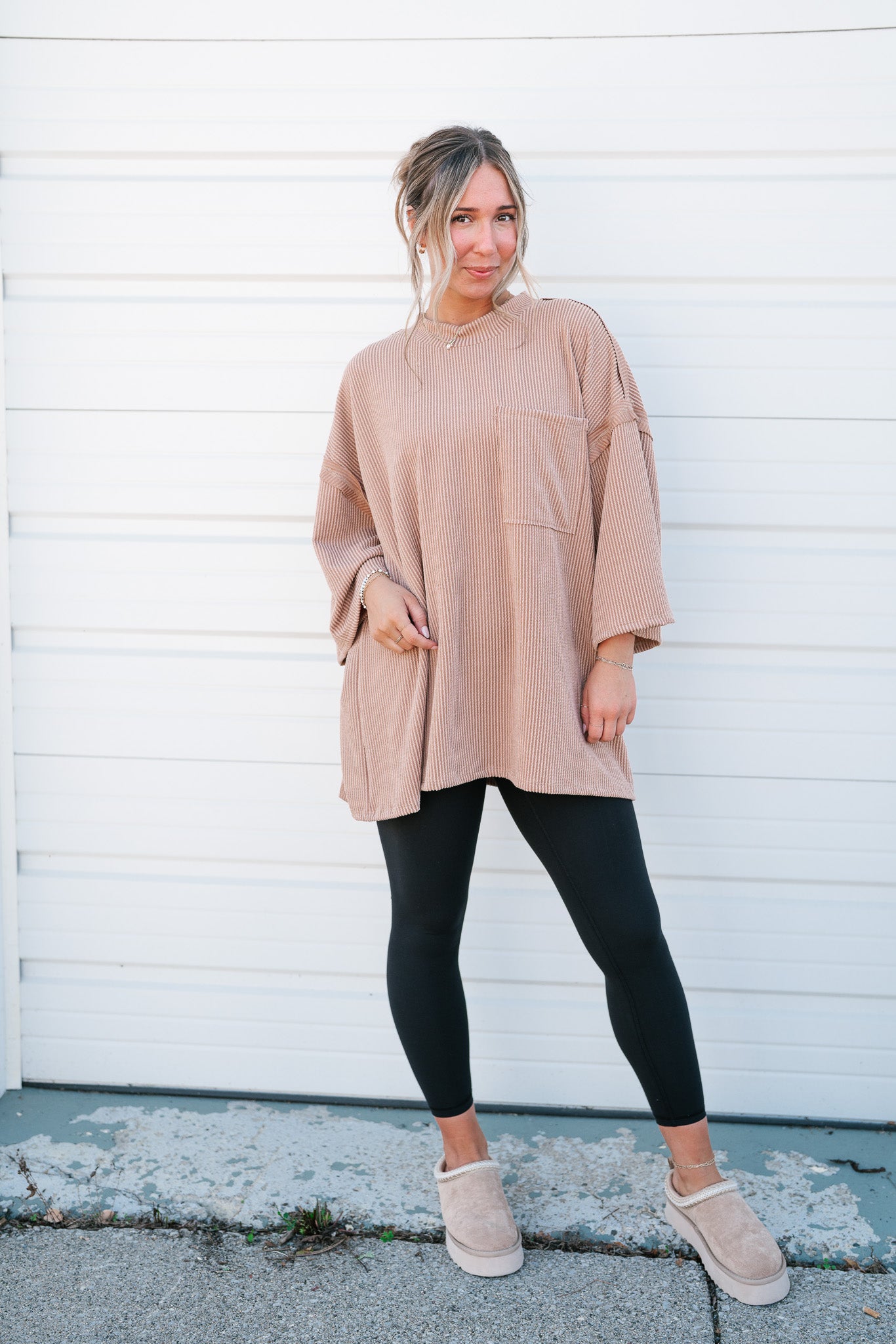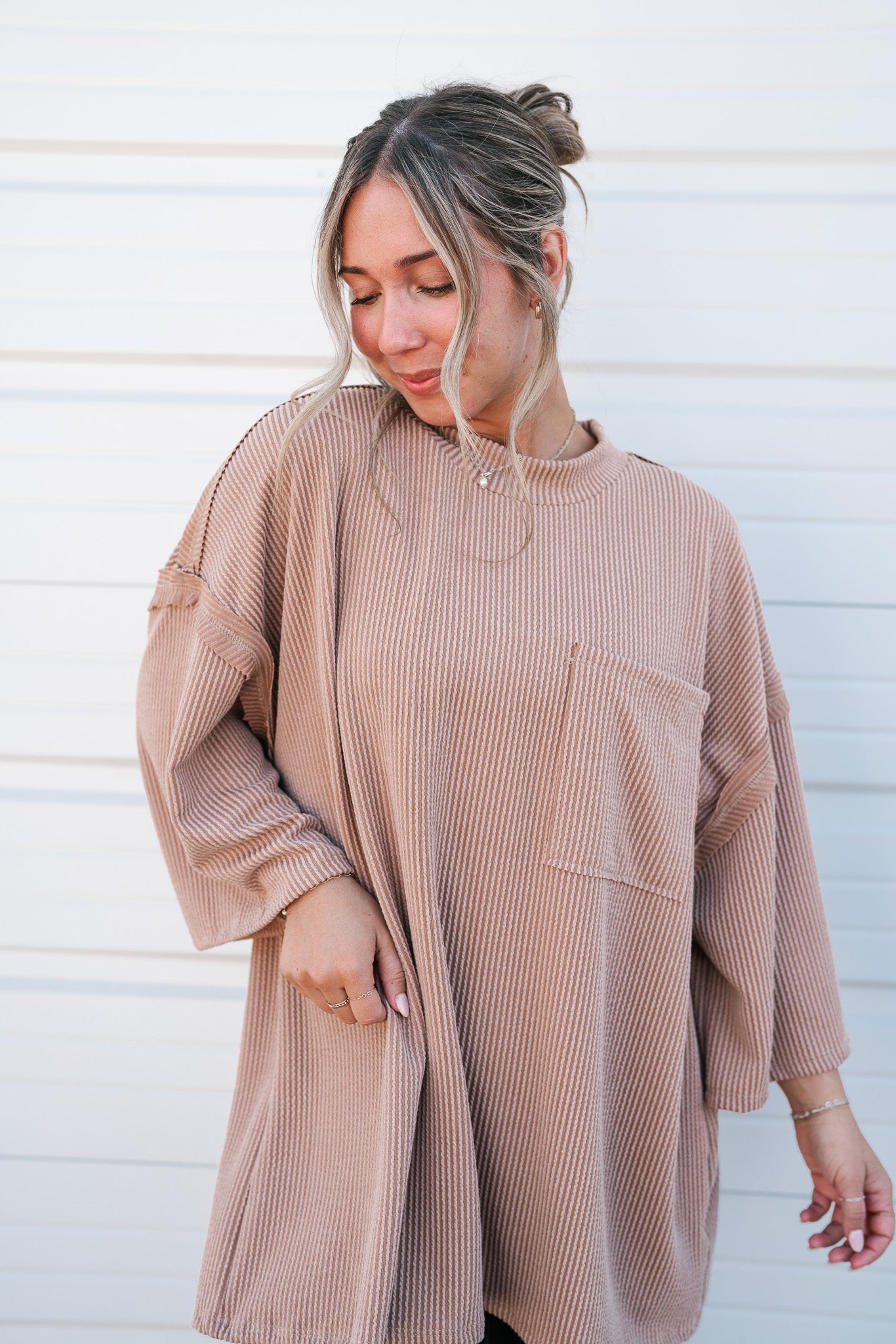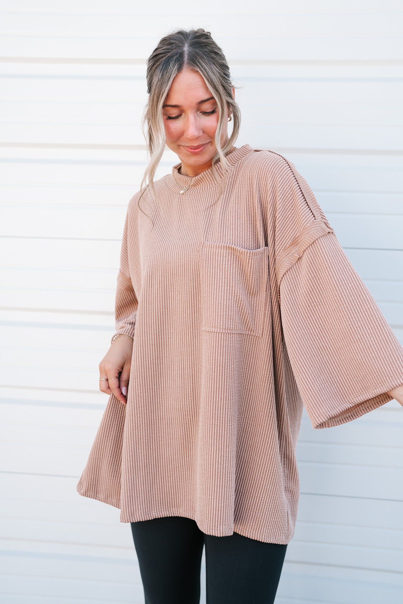 Elevate your everyday fashion with our first Birch & Bell Exclusive - the Forever Ideal Ribbed Top, the ultimate blend of comfort and style. Designed with a longer fit, this top pairs perfectly with leggings, giving you that effortlessly chic look. The drop shoulder design and reversed seam detail add a touch of casual sophistication, making it a versatile addition to your wardrobe.