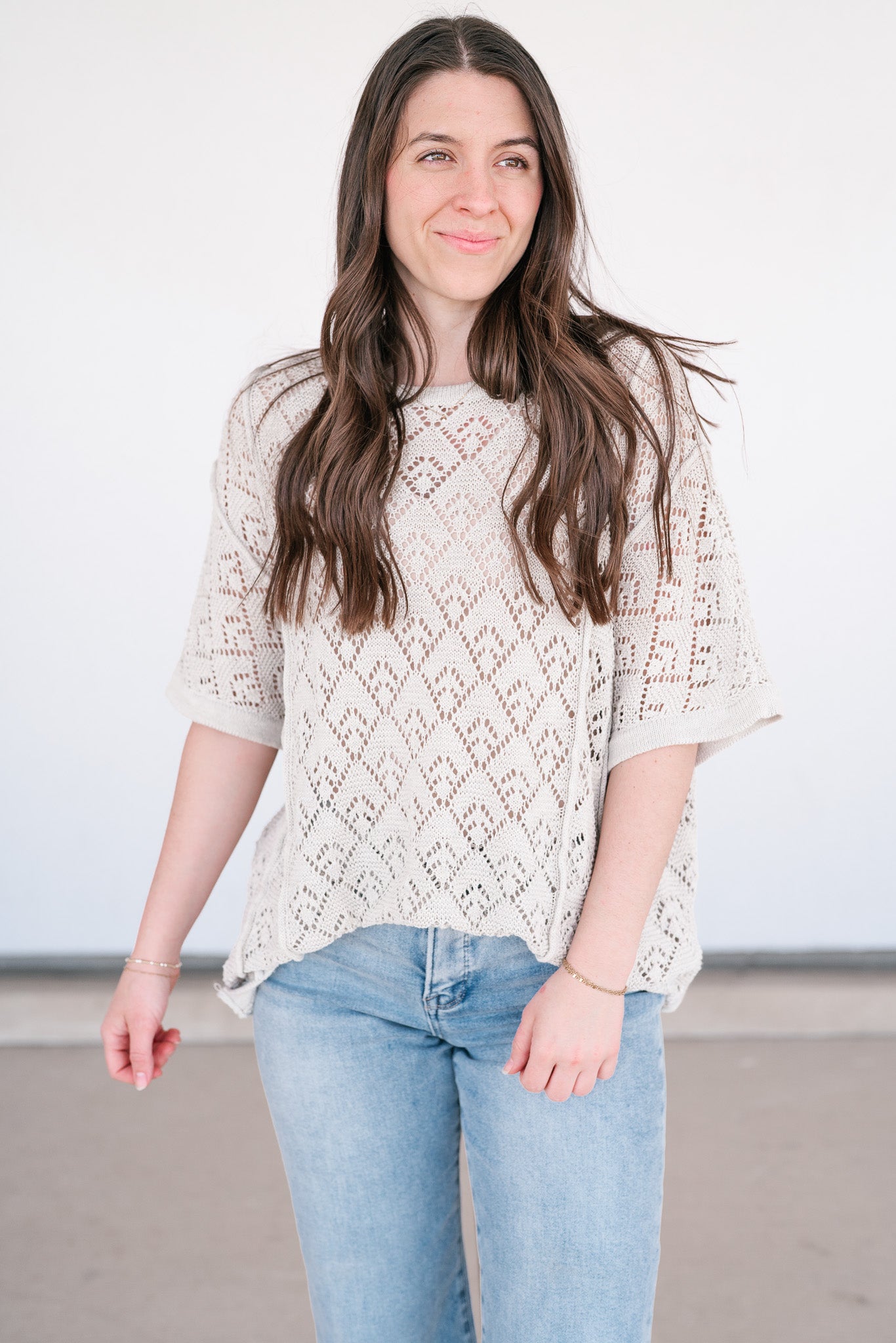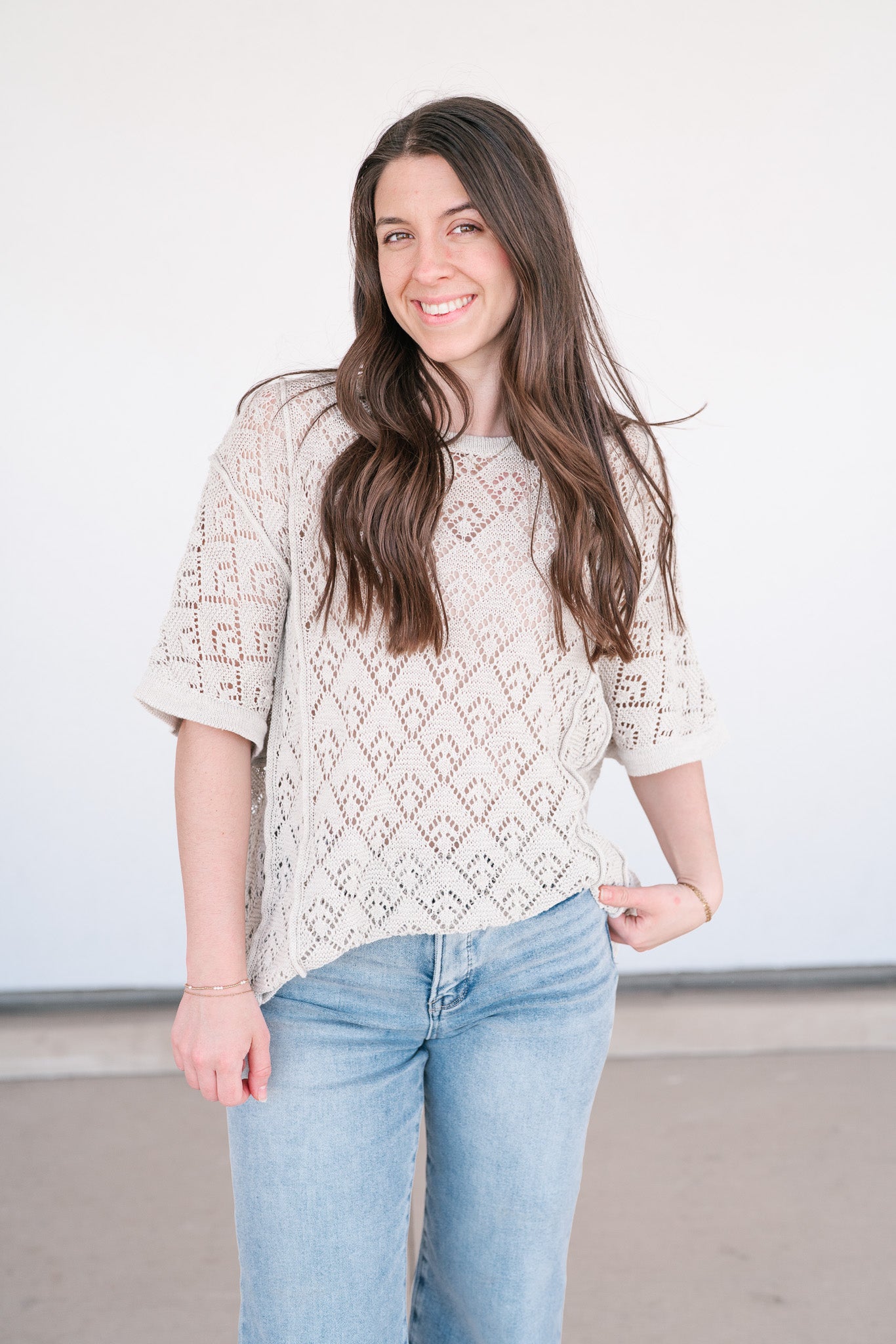 Light, airy, and effortlessly chic — the Lillia Open Knit Top is the perfect layer for warmer days. Featuring a relaxed, slightly slouchy fit and open-knit texture, this khaki-colored beauty pairs perfectly with denim shorts or wide-leg pants for an easy, laid-back look.