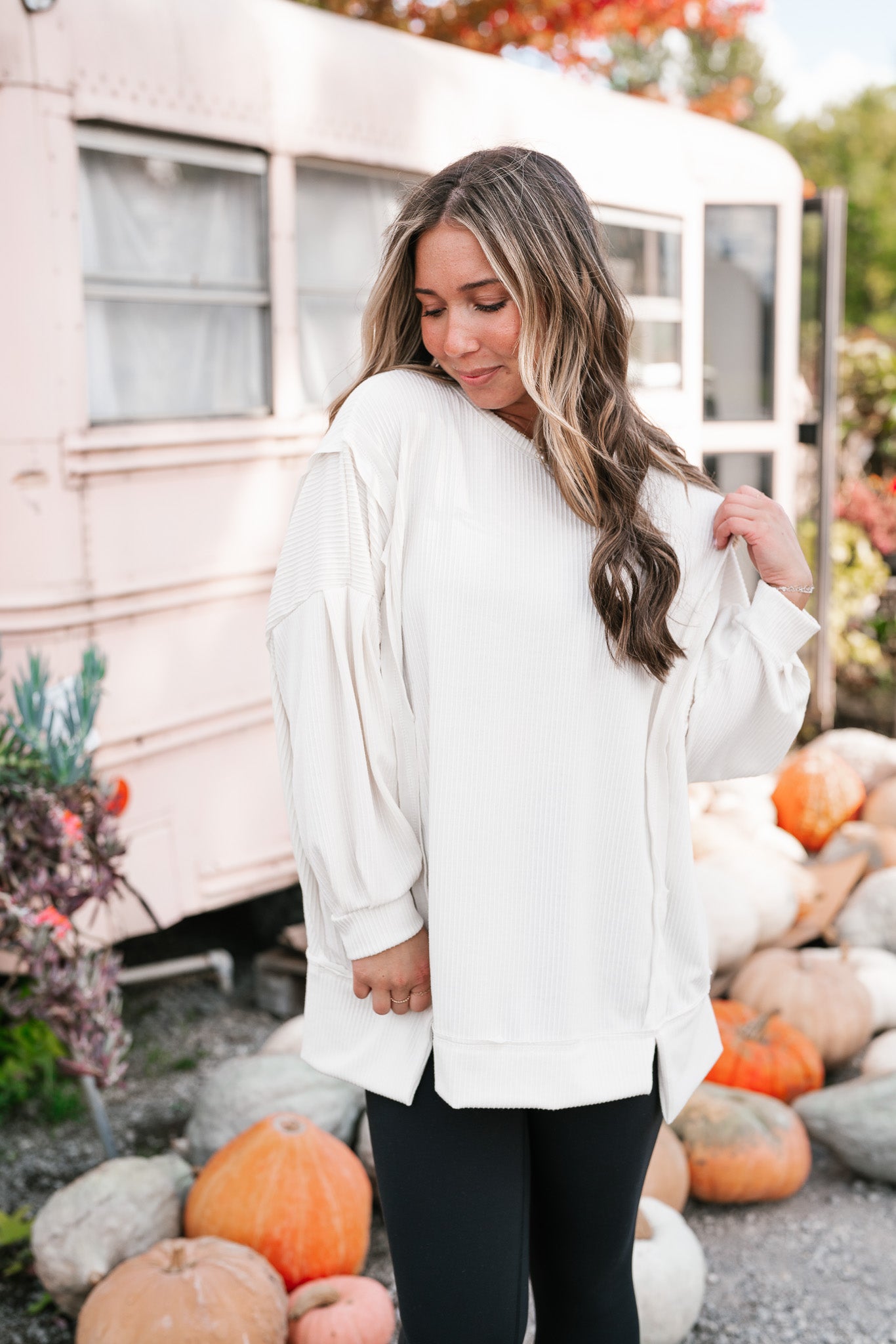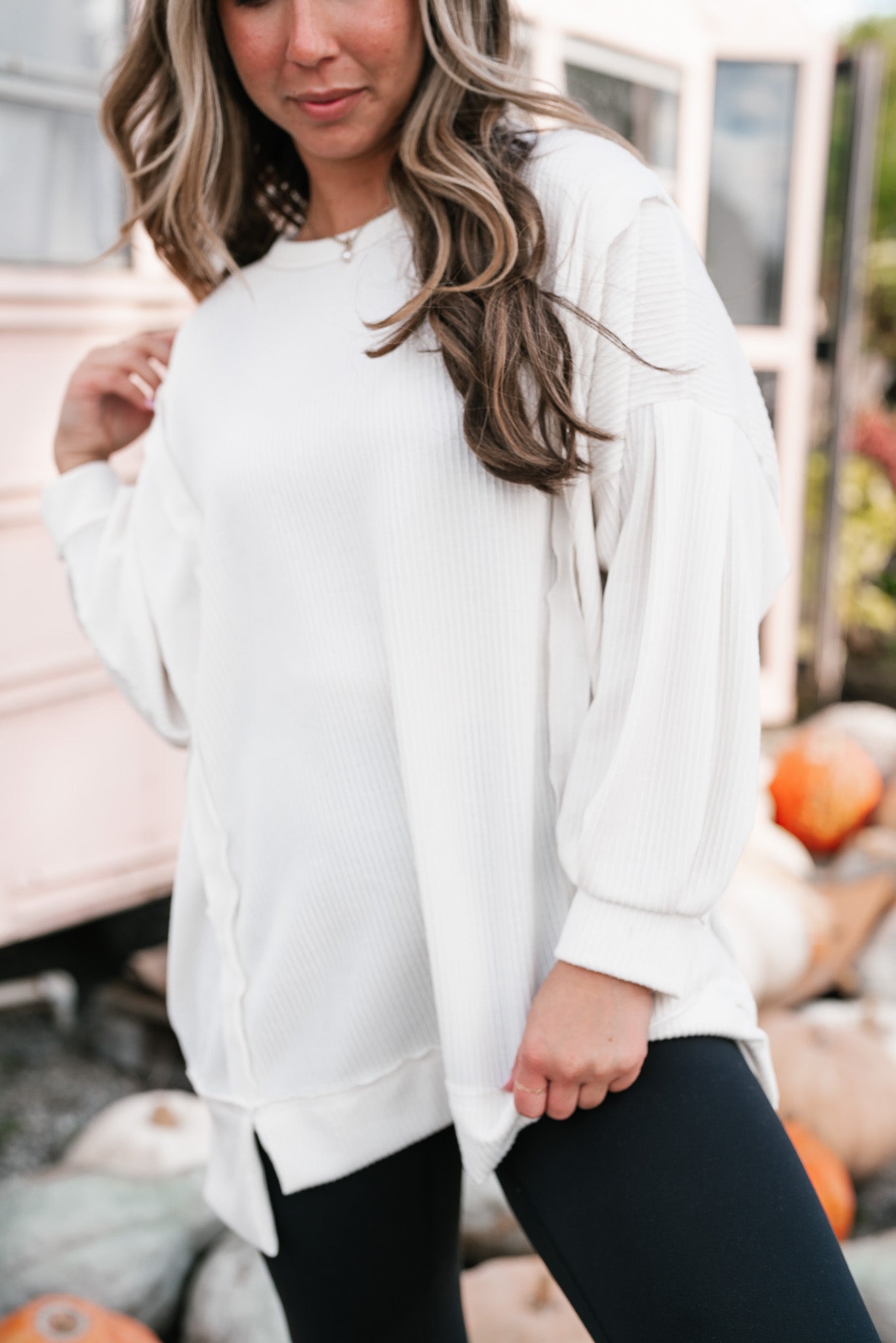 Northern Ribbed Oversized Long Sleeve Top - Off White – Birch & Bell Boutique