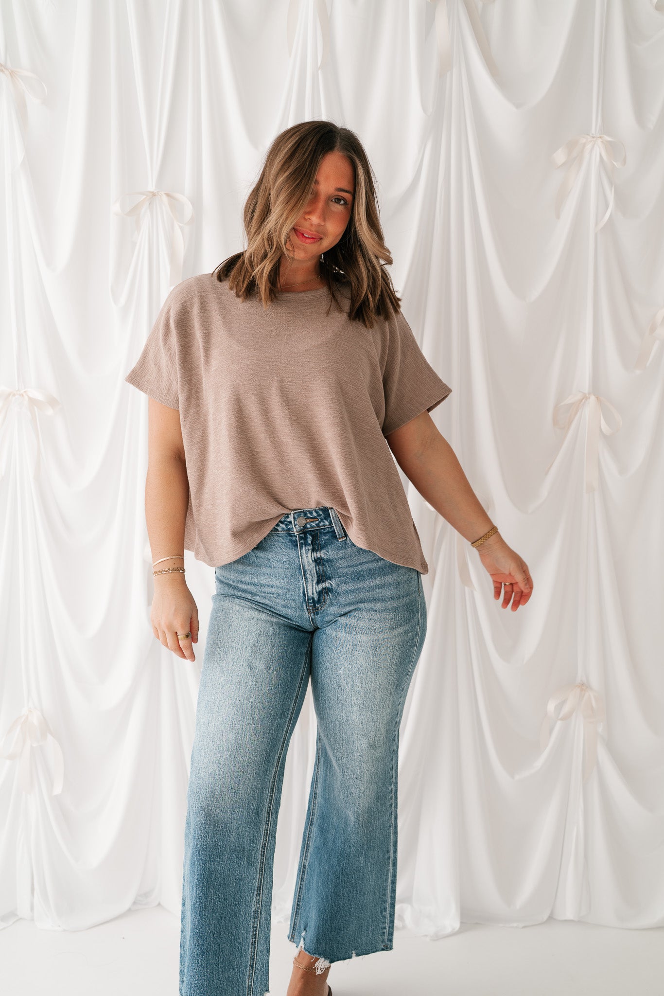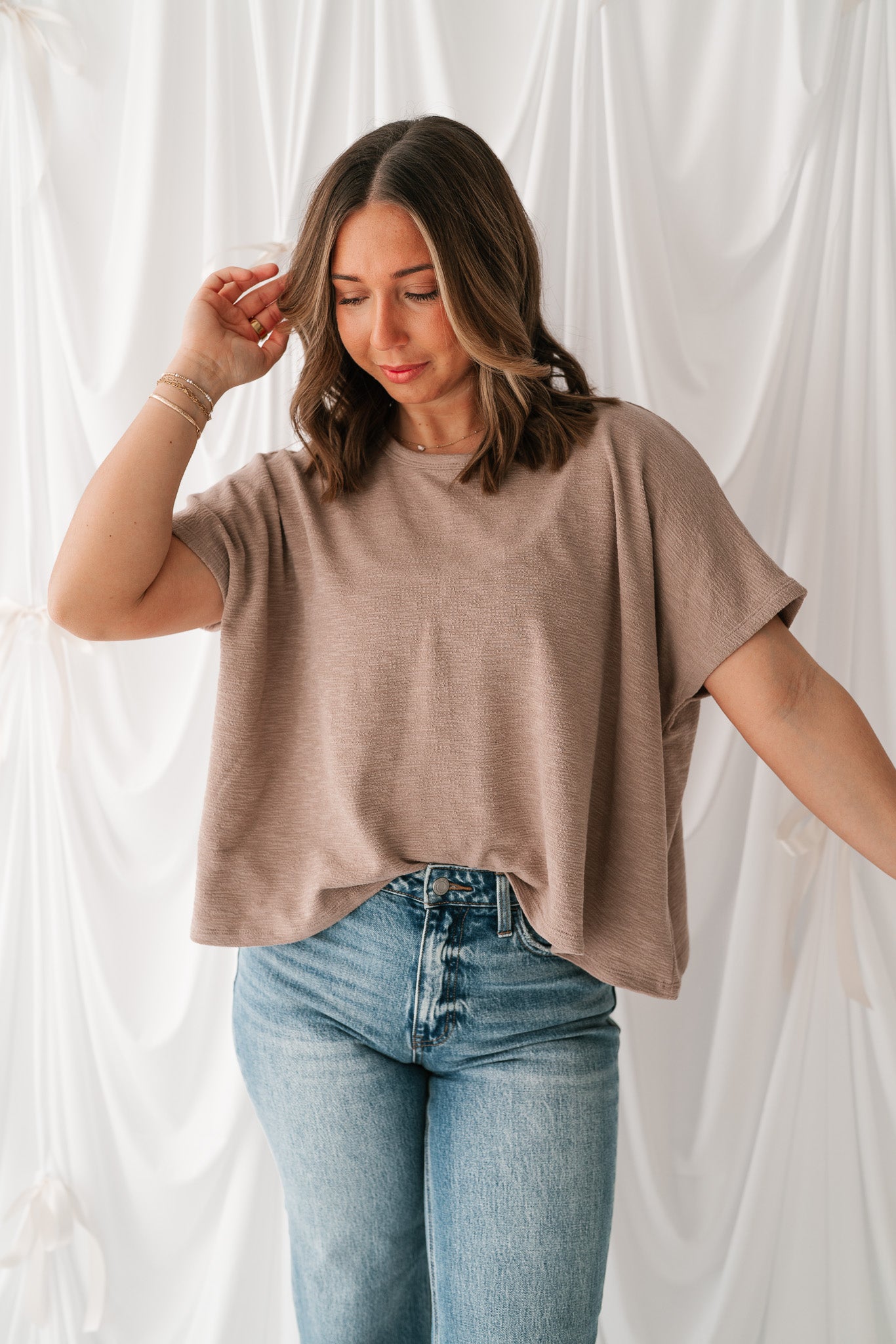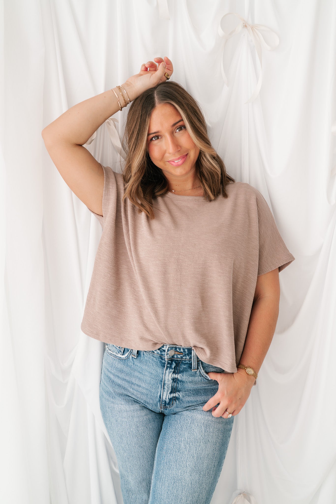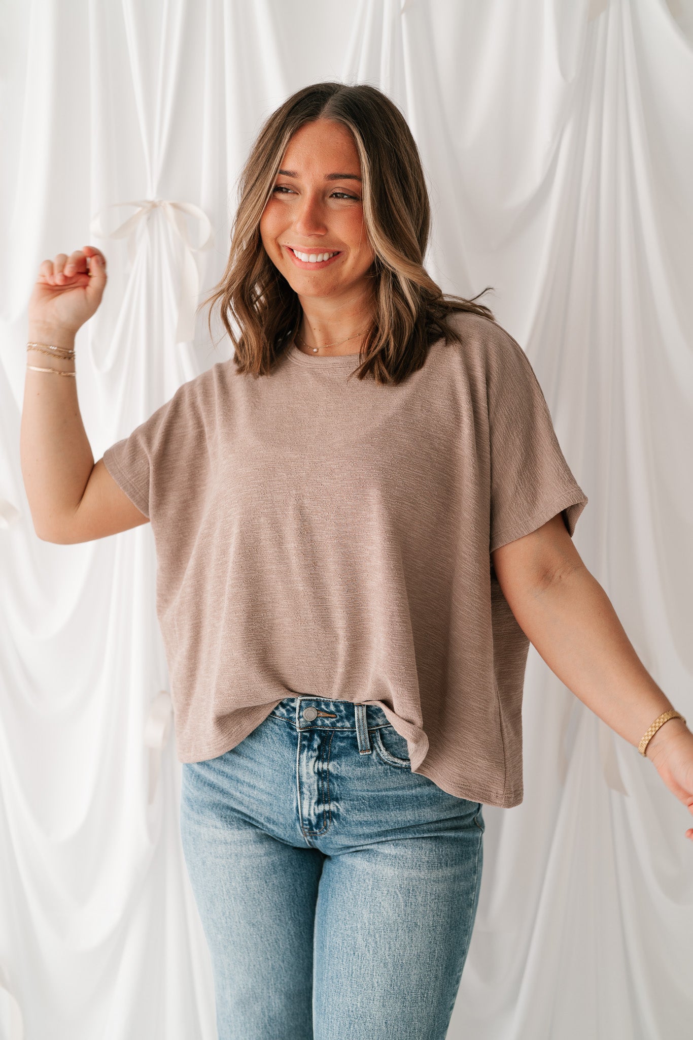 Pure Ease Women’s Oversized Slub Cotton Top – Ash Mocha | Effortless Relaxed Fit Everyday Top
