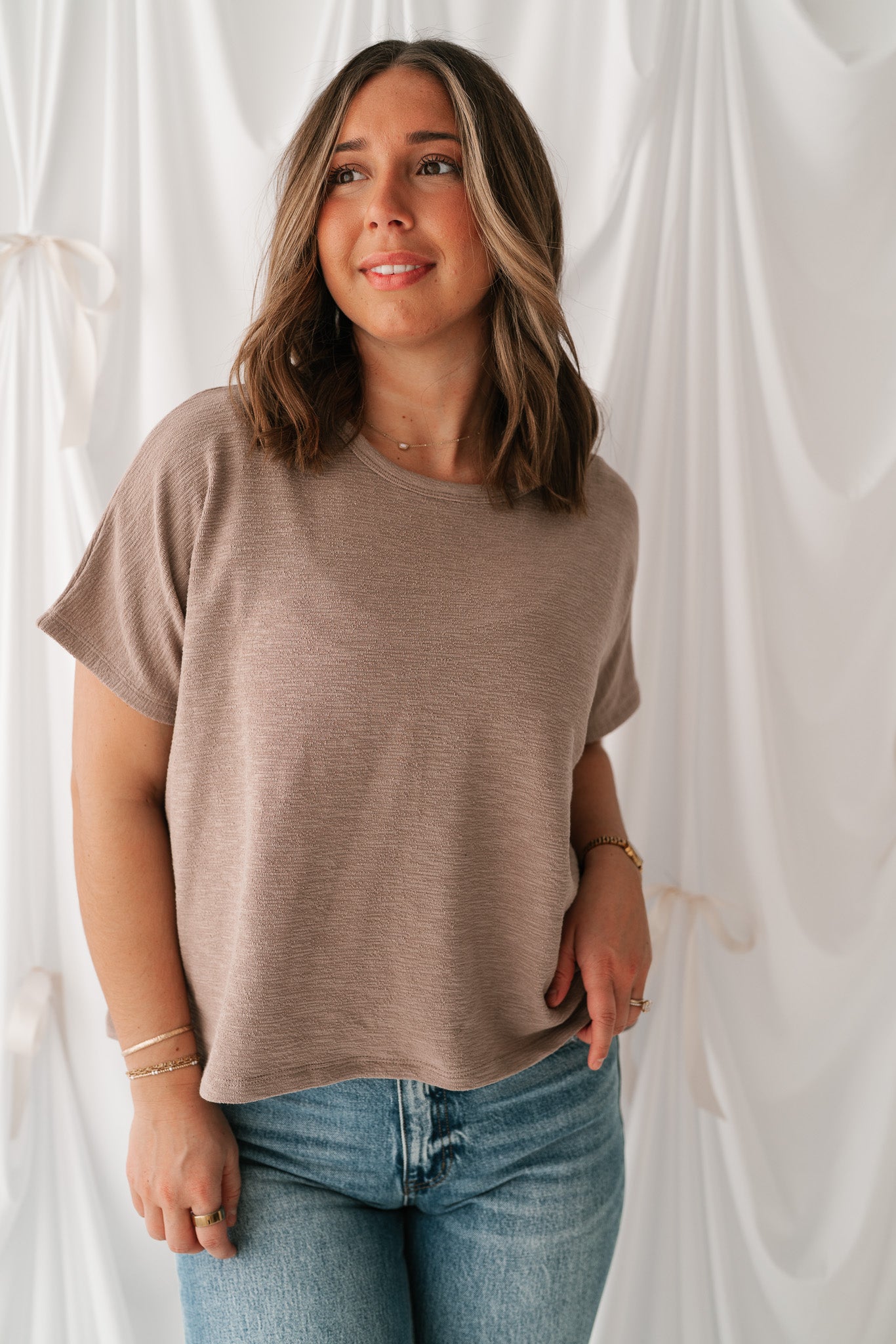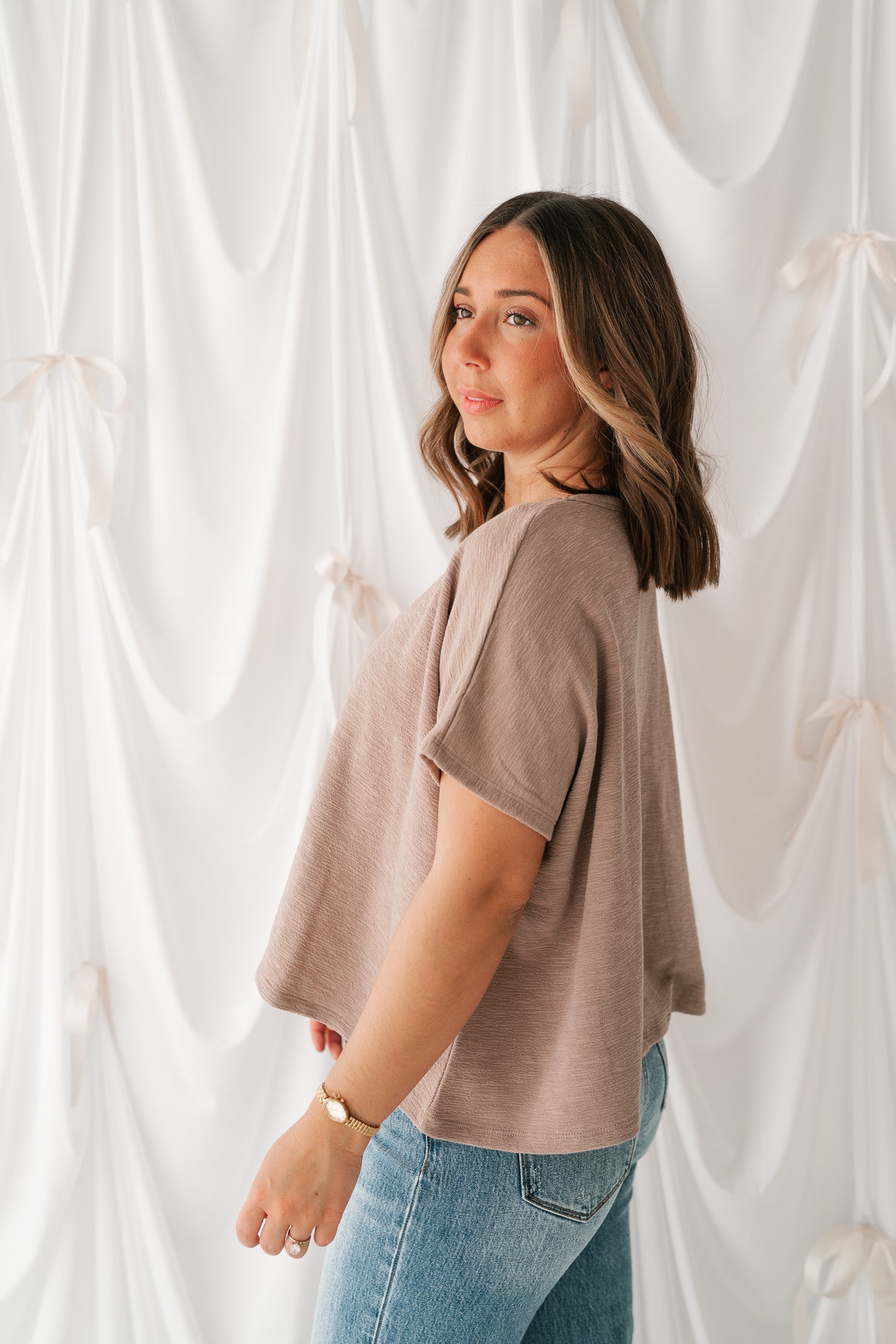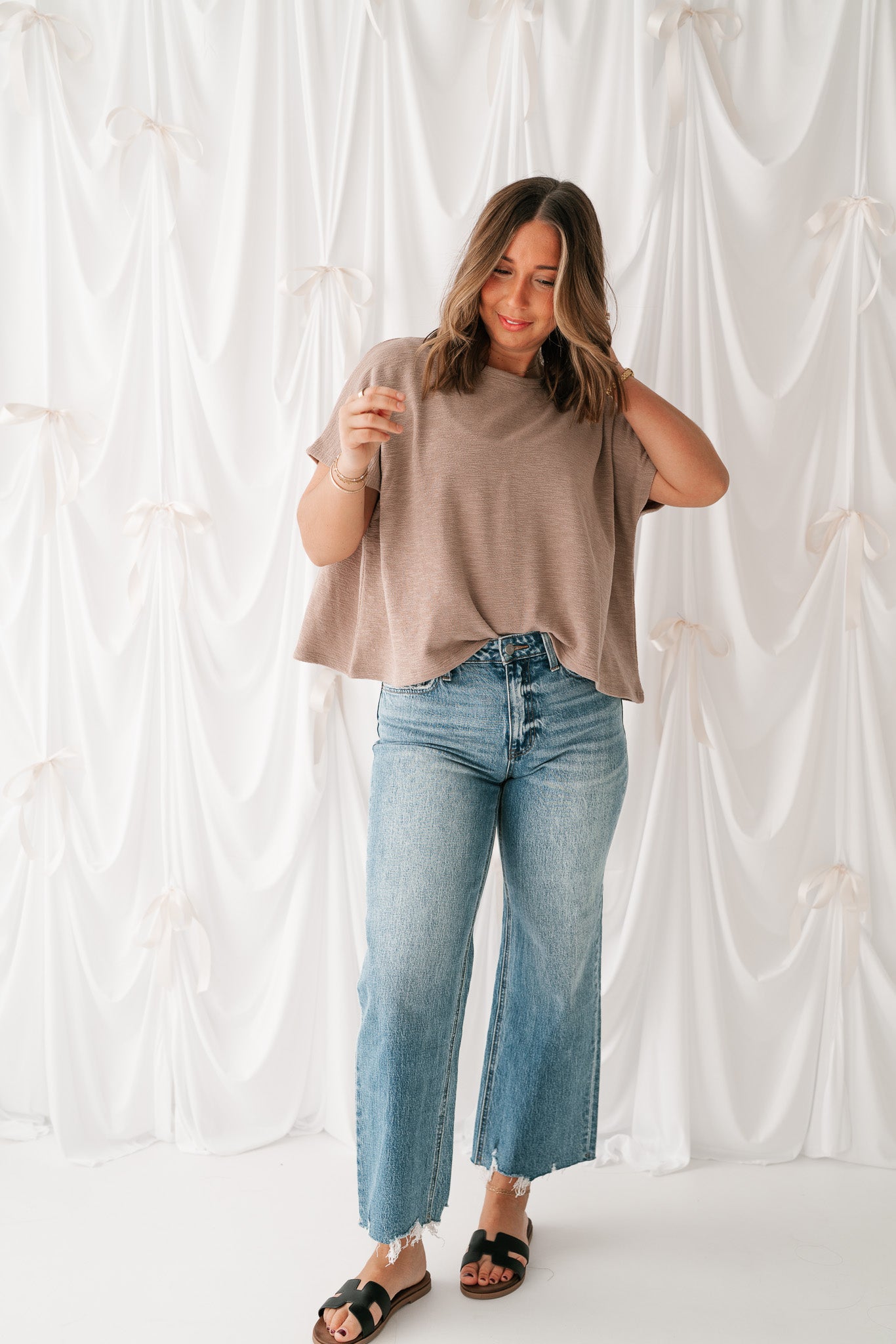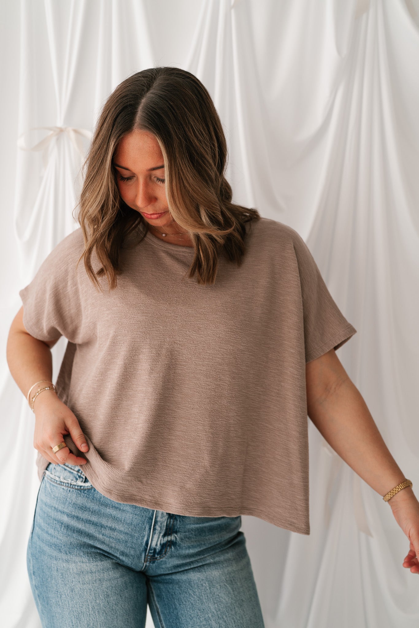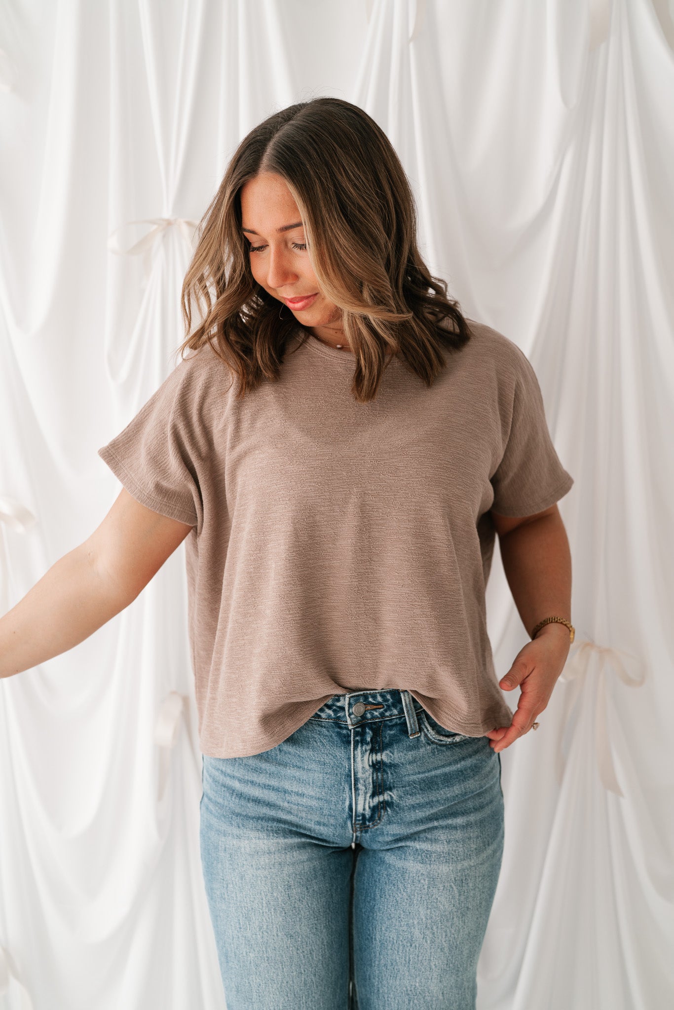 Pure Ease Women’s Oversized Slub Cotton Top – Ash Mocha | Effortless Relaxed Fit Everyday Top