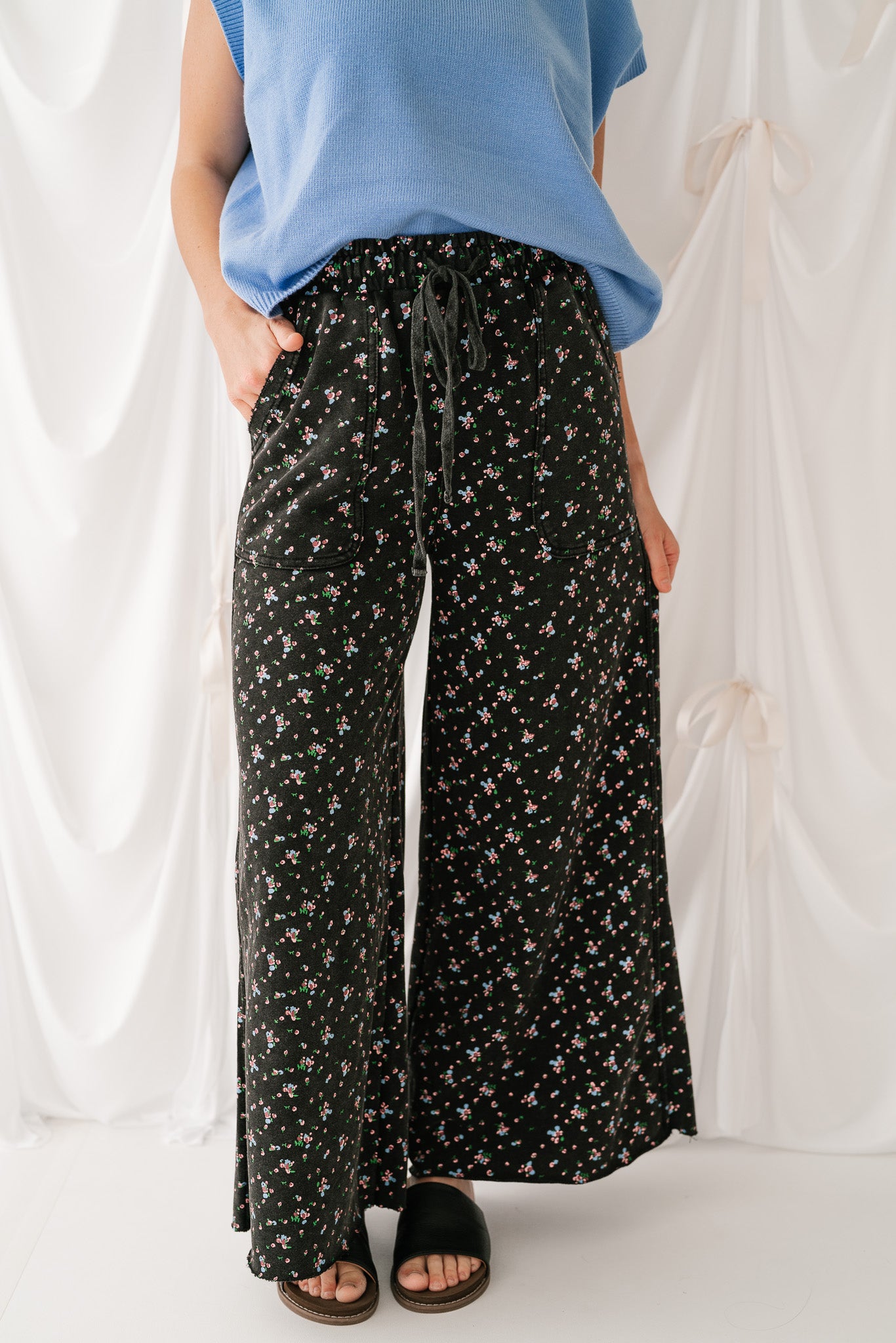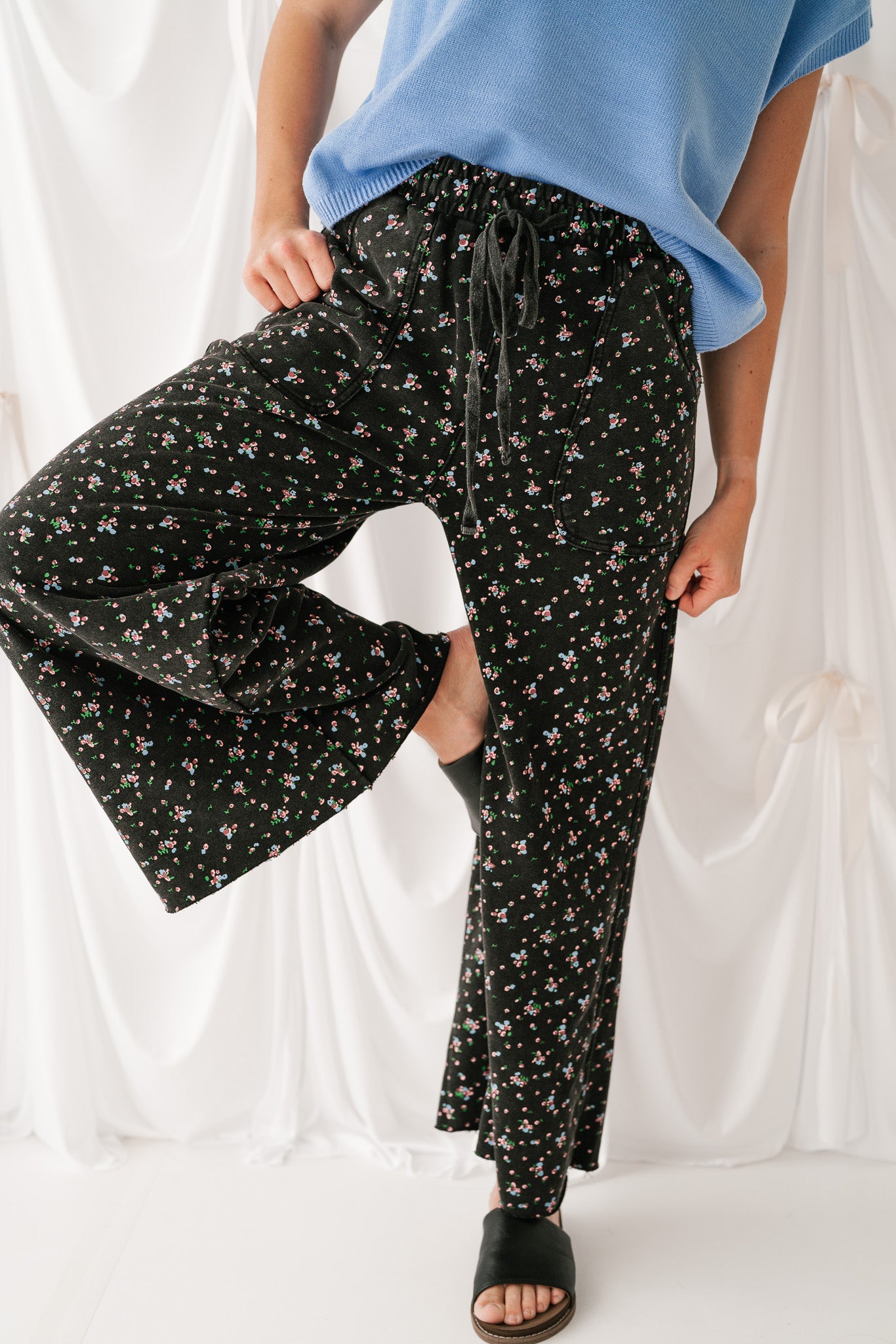 Soft Petals Relaxed Boho Floral Wide Leg Drawstring Lounge Pants