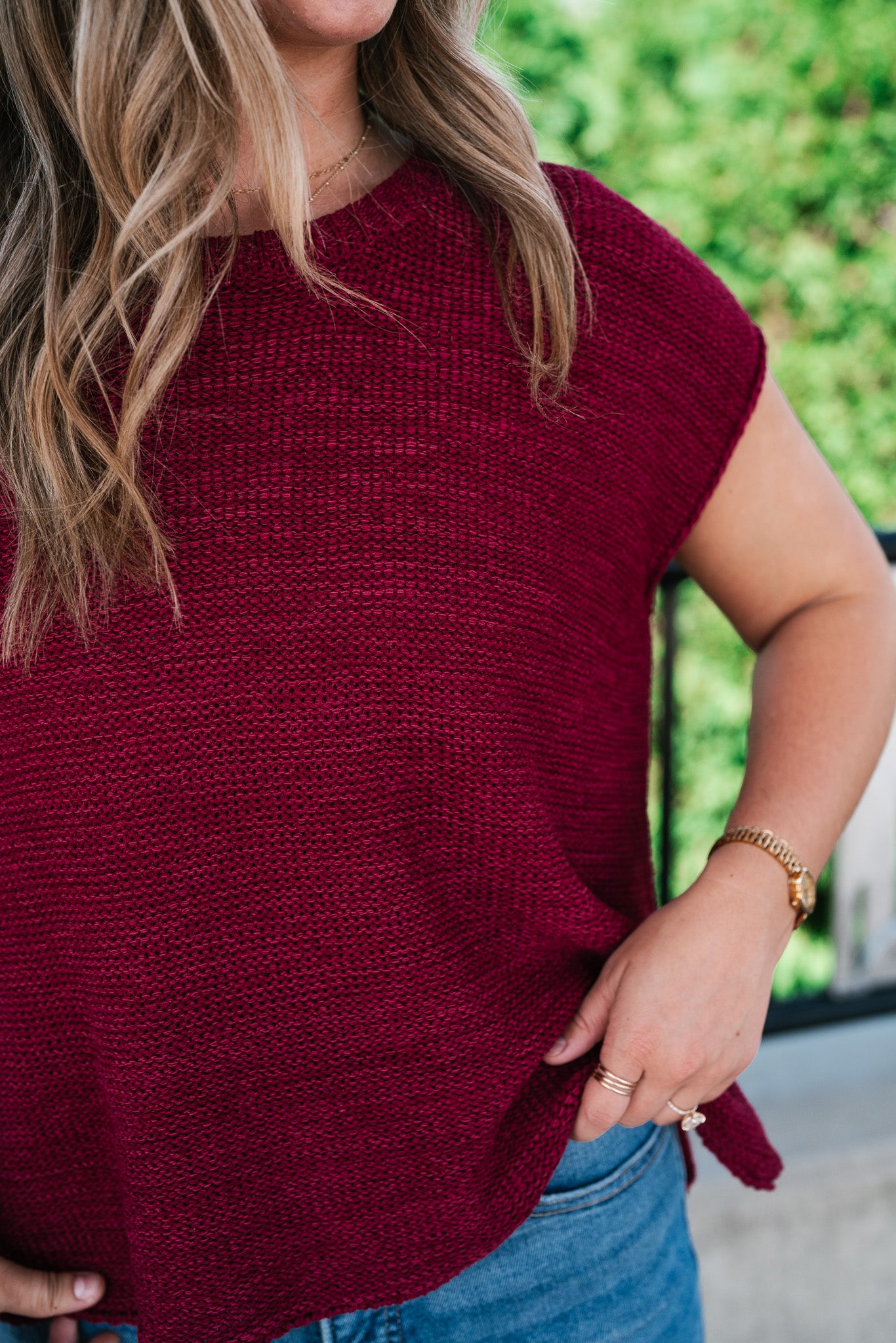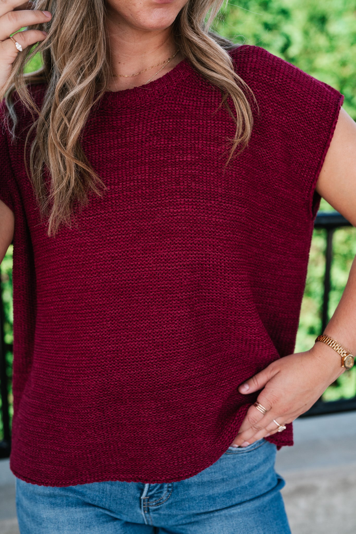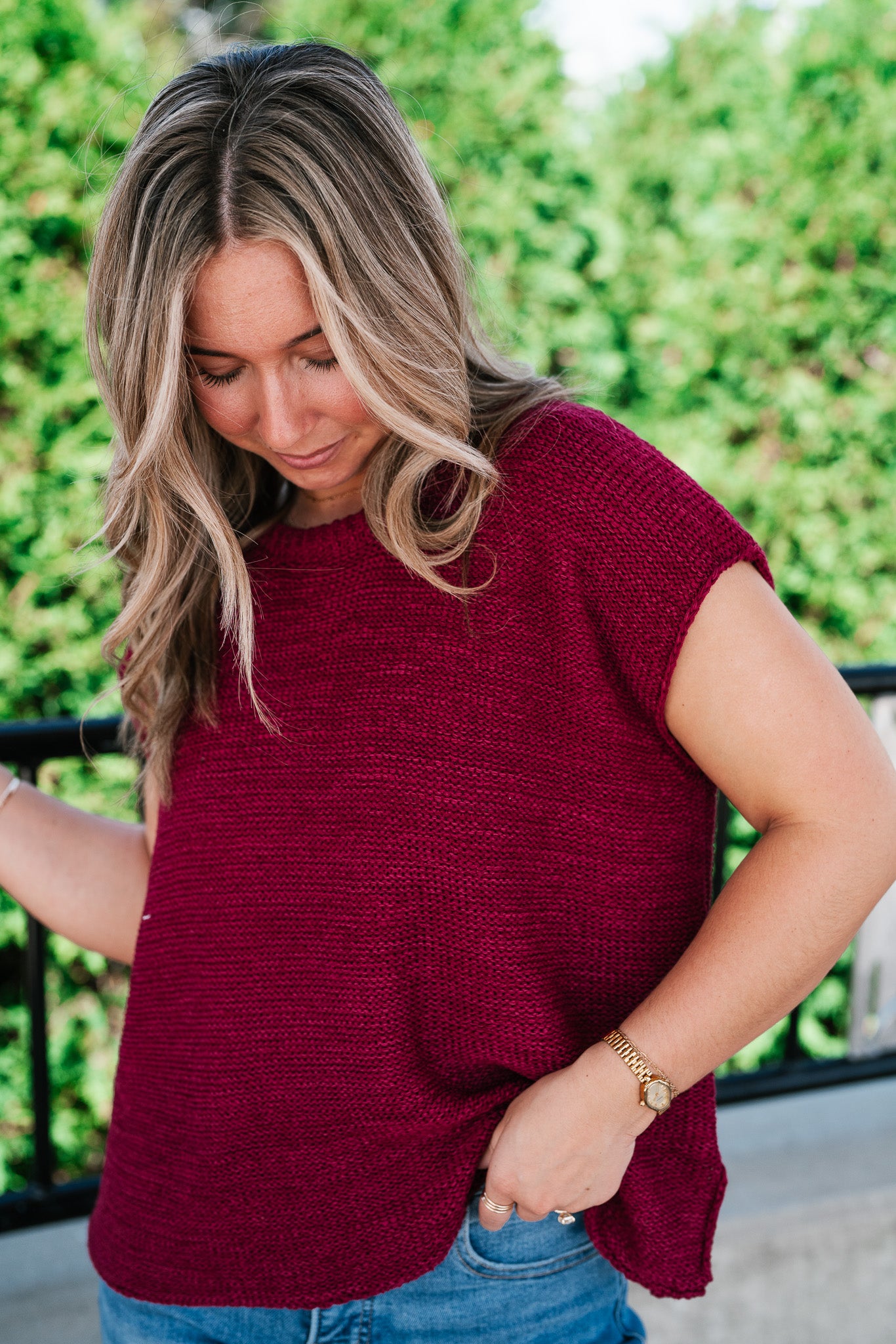 Everyday Ease Crew Neck Sweater Tank - Burgundy adds an effortless touch of style to your wardrobe.