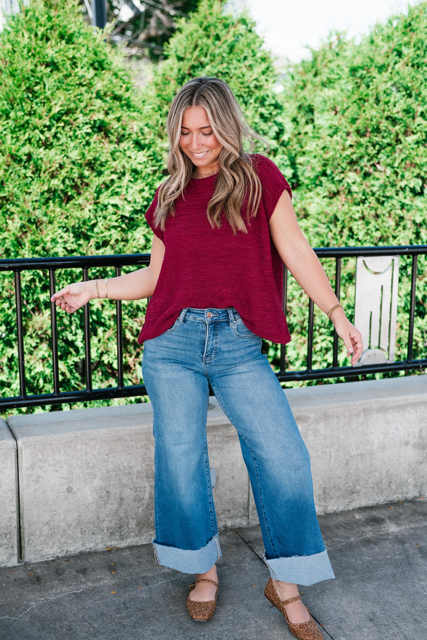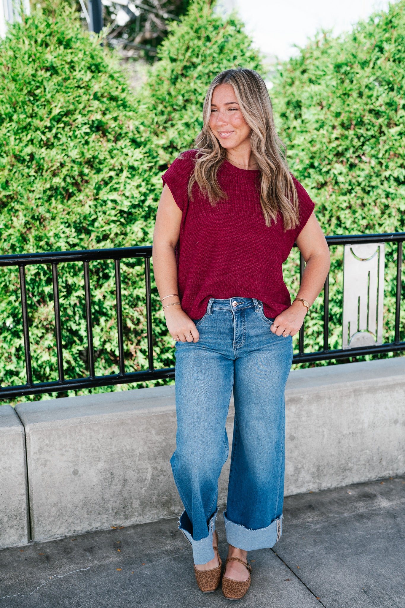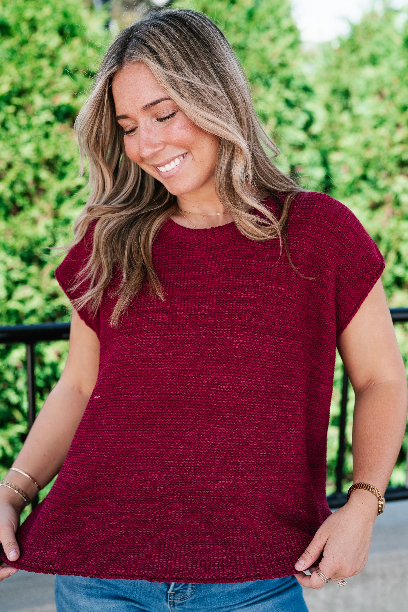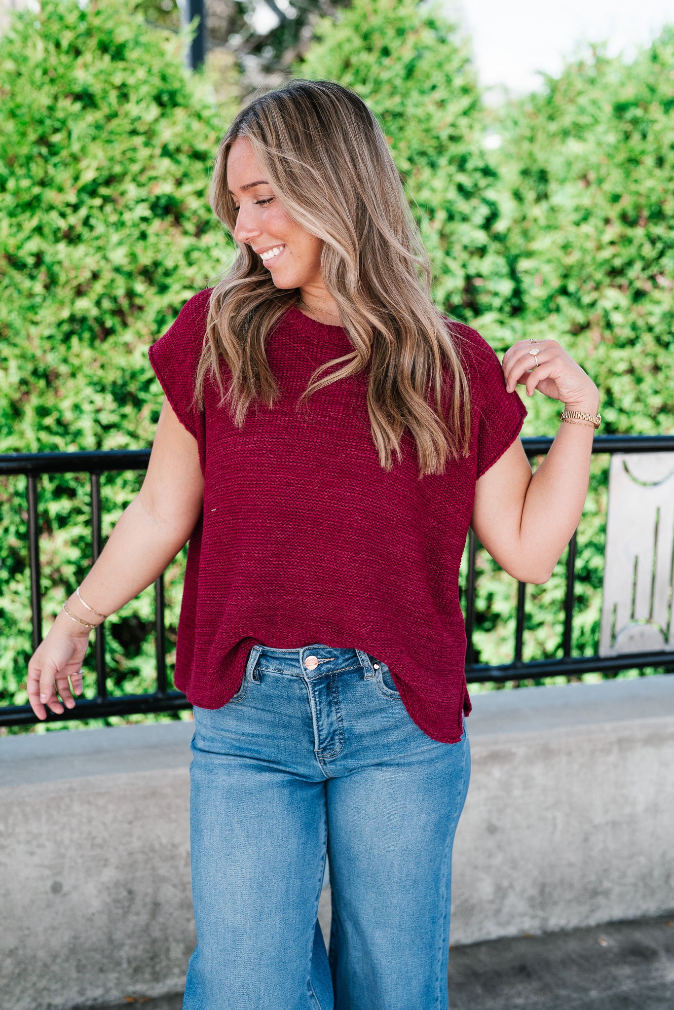 Everyday Ease Crew Neck Sweater Tank - Burgundy adds an effortless touch of style to your wardrobe.