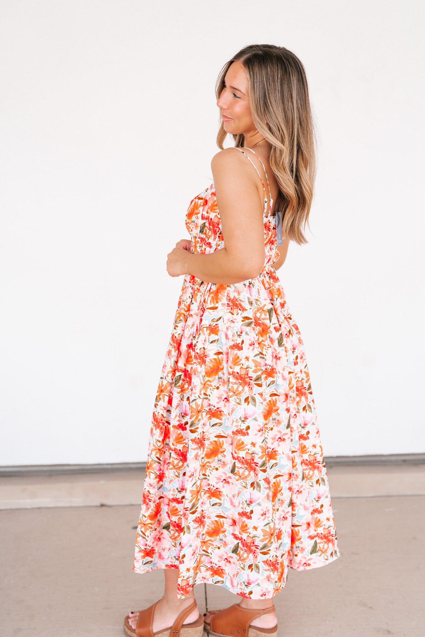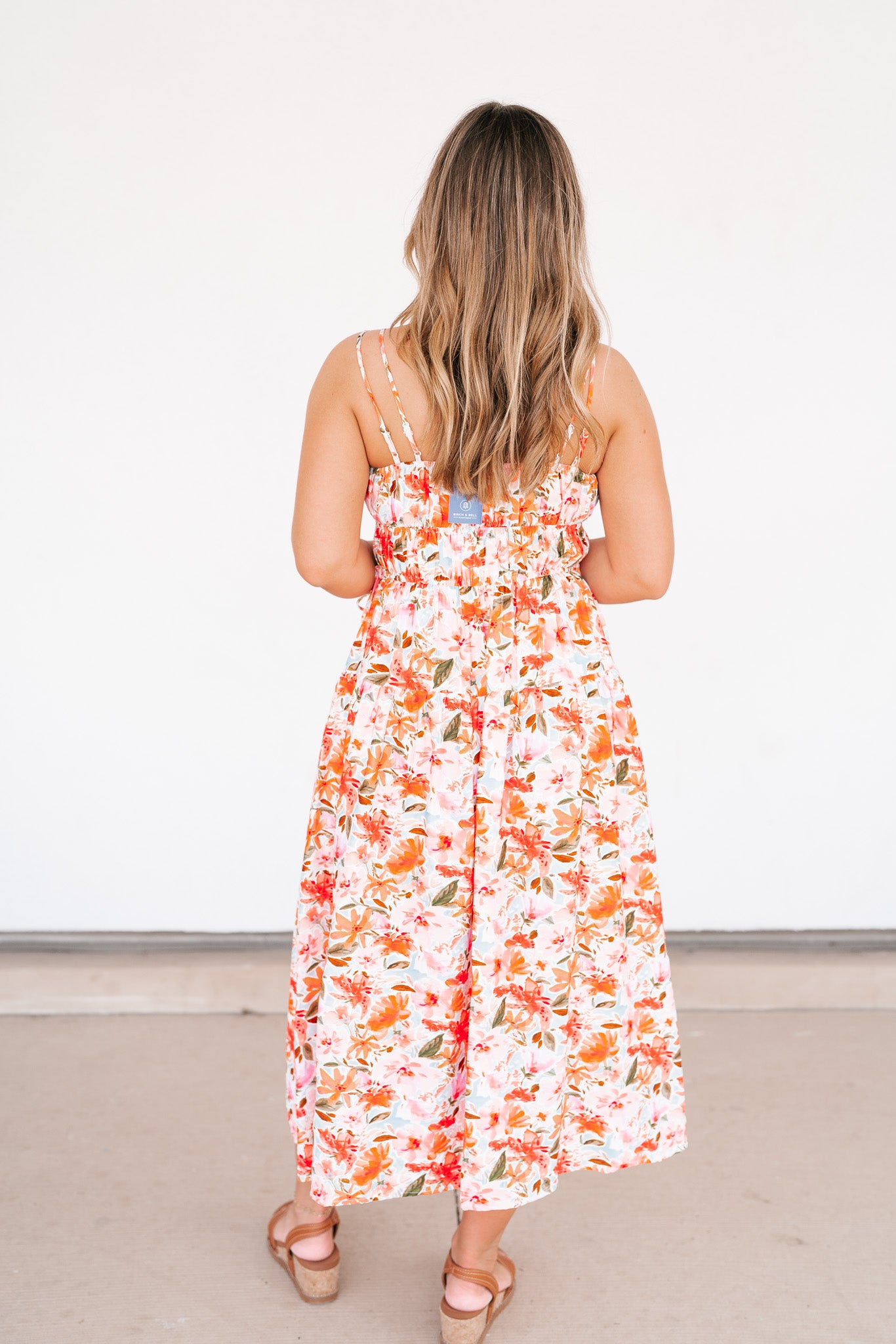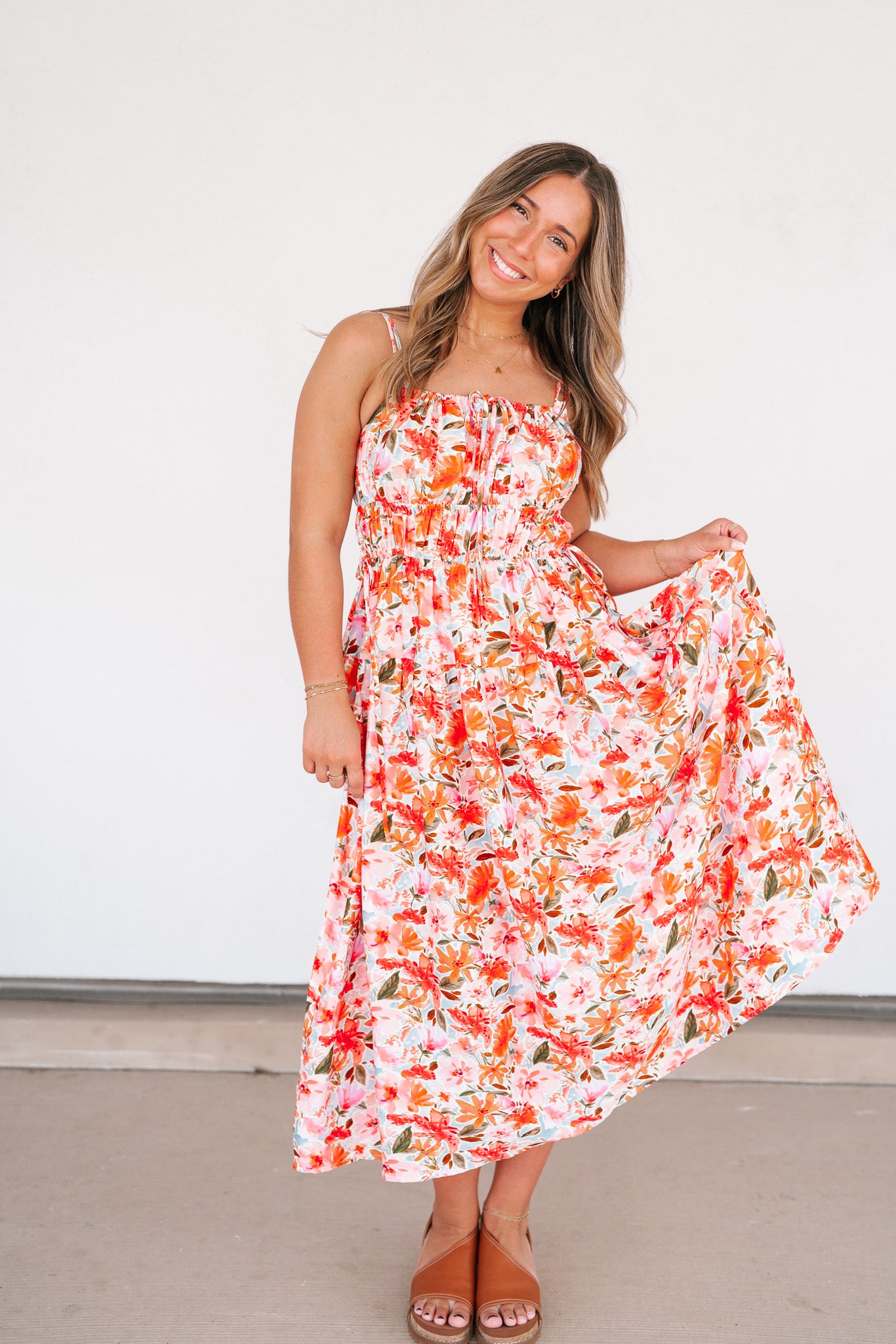 Step into the season in style with the Fresh Bloom Floral Midi Dress — a dreamy blend of elegance and charm. Featuring a vibrant floral print, a flattering midi length, and a feminine silhouette, this dress is perfect for everything from brunch dates to weddings. The soft, breathable fabric and flowy skirt offer all-day comfort, while delicate details like the ruched waistline enhance its romantic feel. Pair it with heels or sandals for a fresh, polished look that effortlessly transitions from day to night.