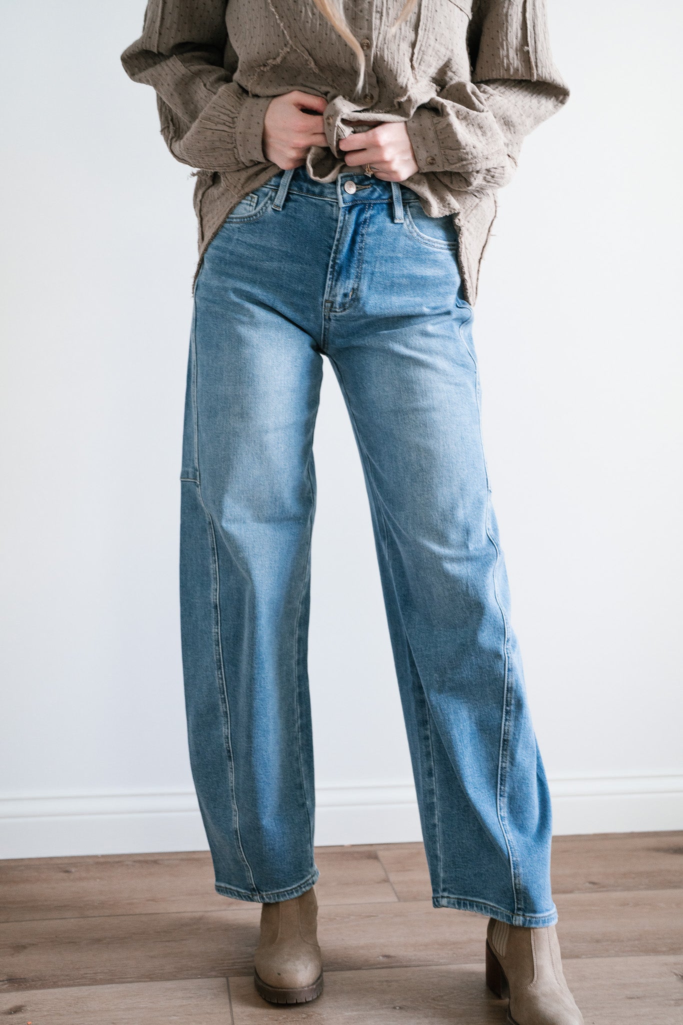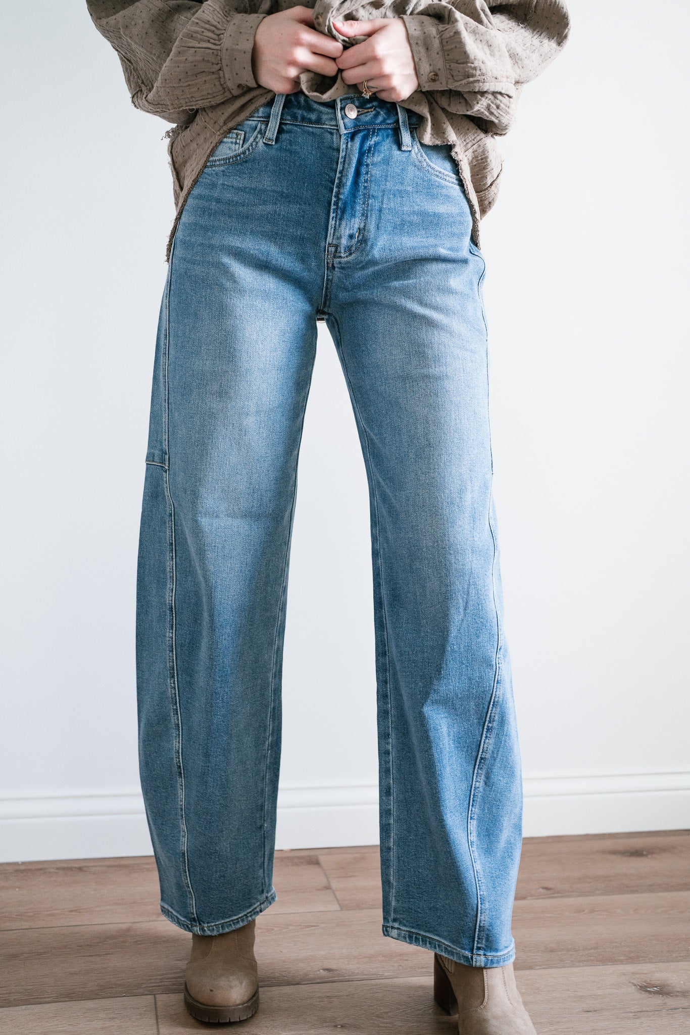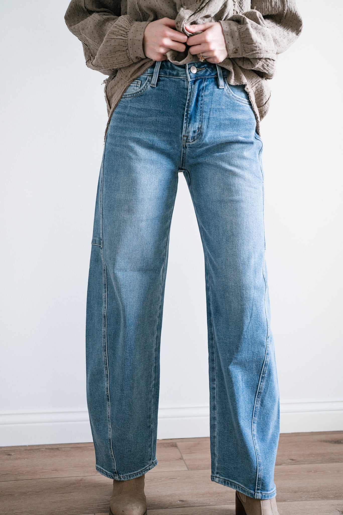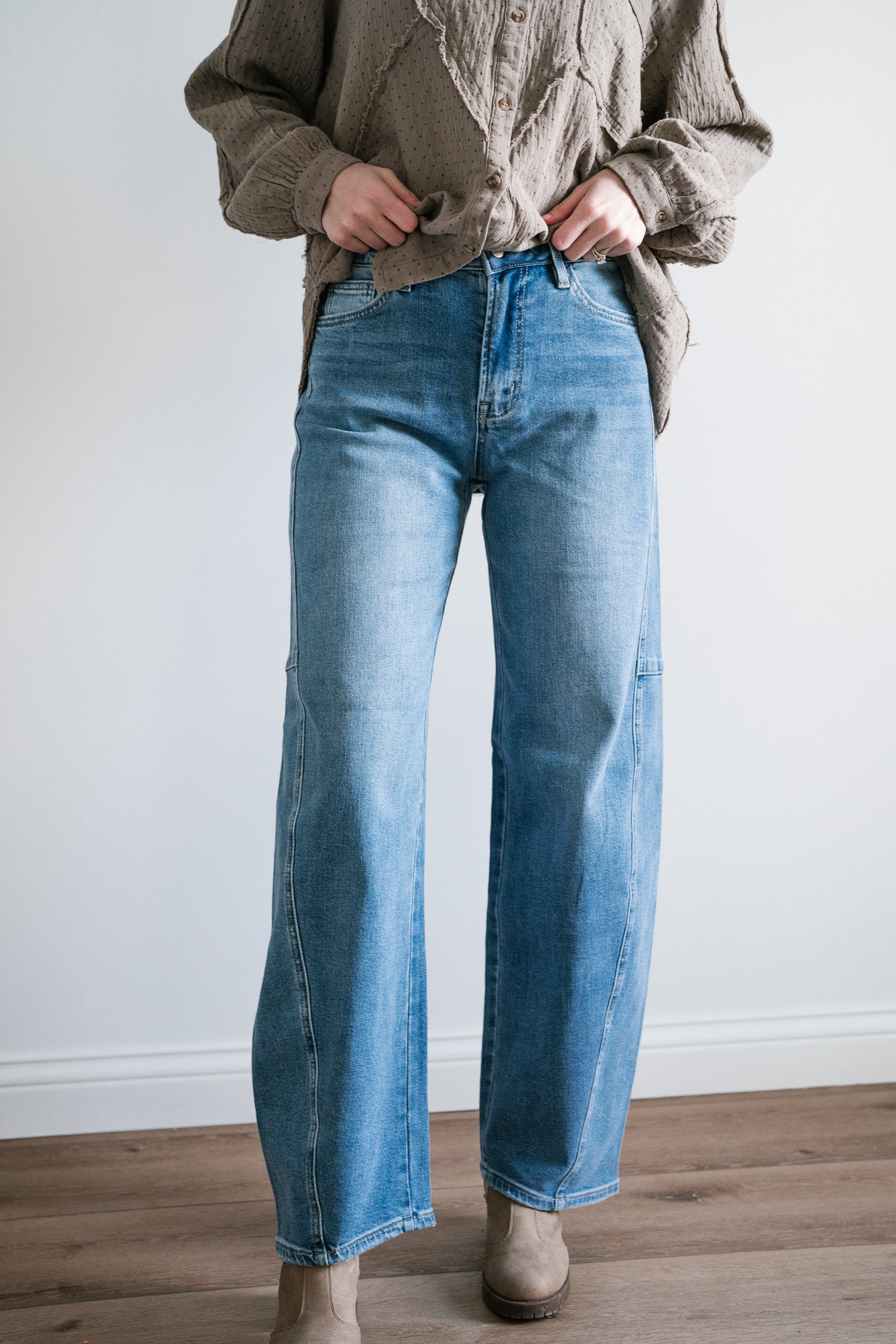 Step into timeless style and ultimate comfort with the "Lovervet Ellora High Rise Wide Barrel Jeans". Designed with a flattering high-rise waist, these jeans feature a contemporary wide-barrel silhouette that strikes the perfect balance between structure and ease. Subtle seam details along the legs add a touch of refinement to this laid-back look, while the light-wash denim makes them an effortless choice for every season.