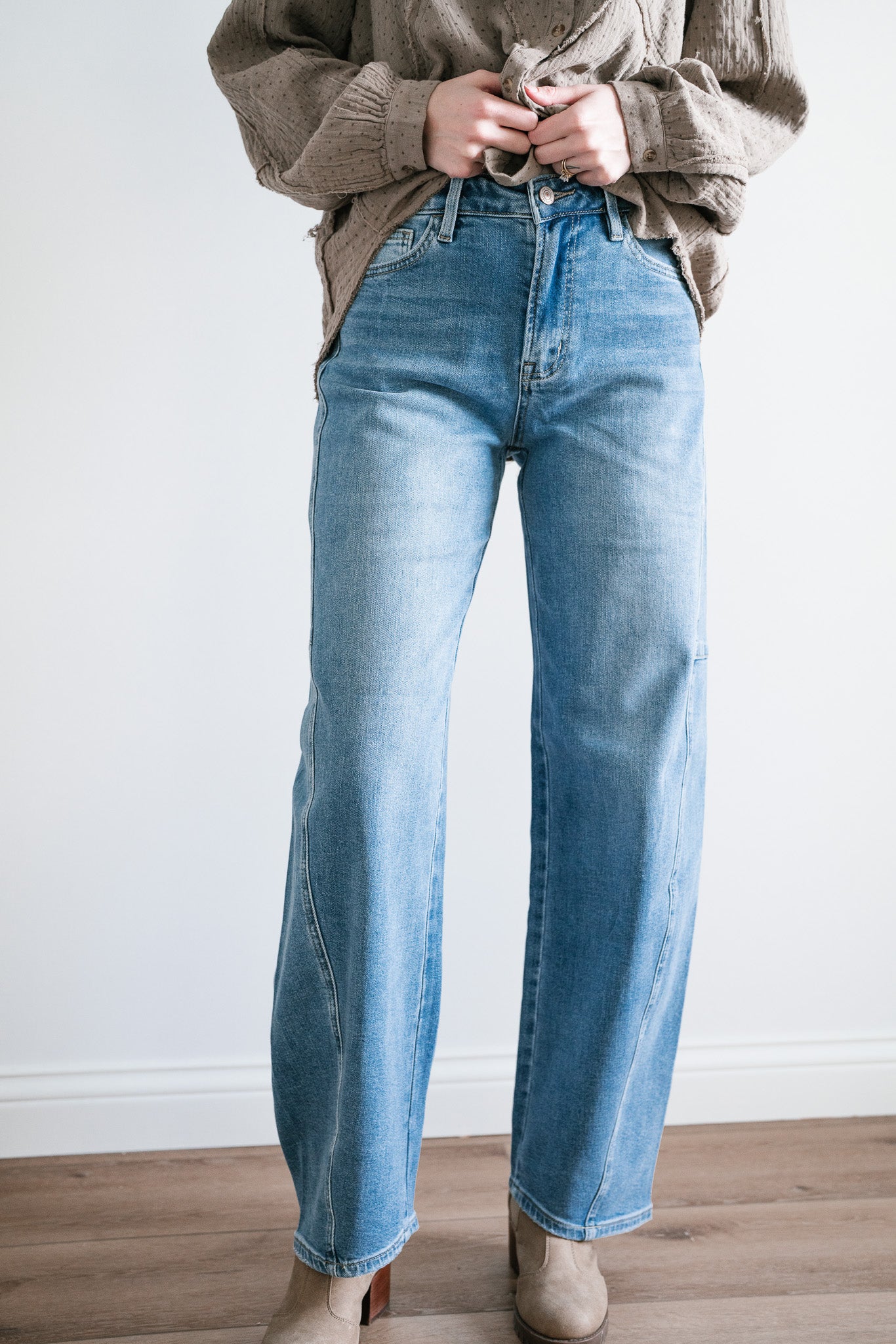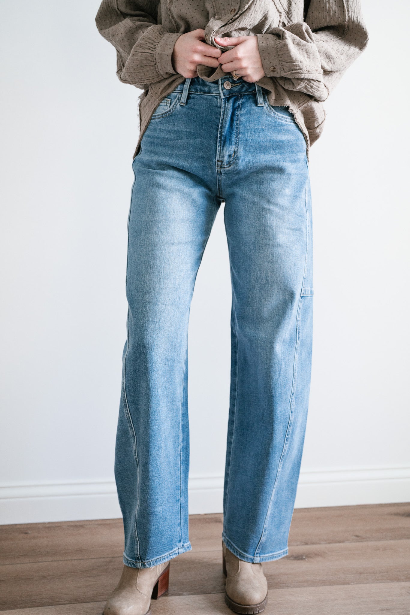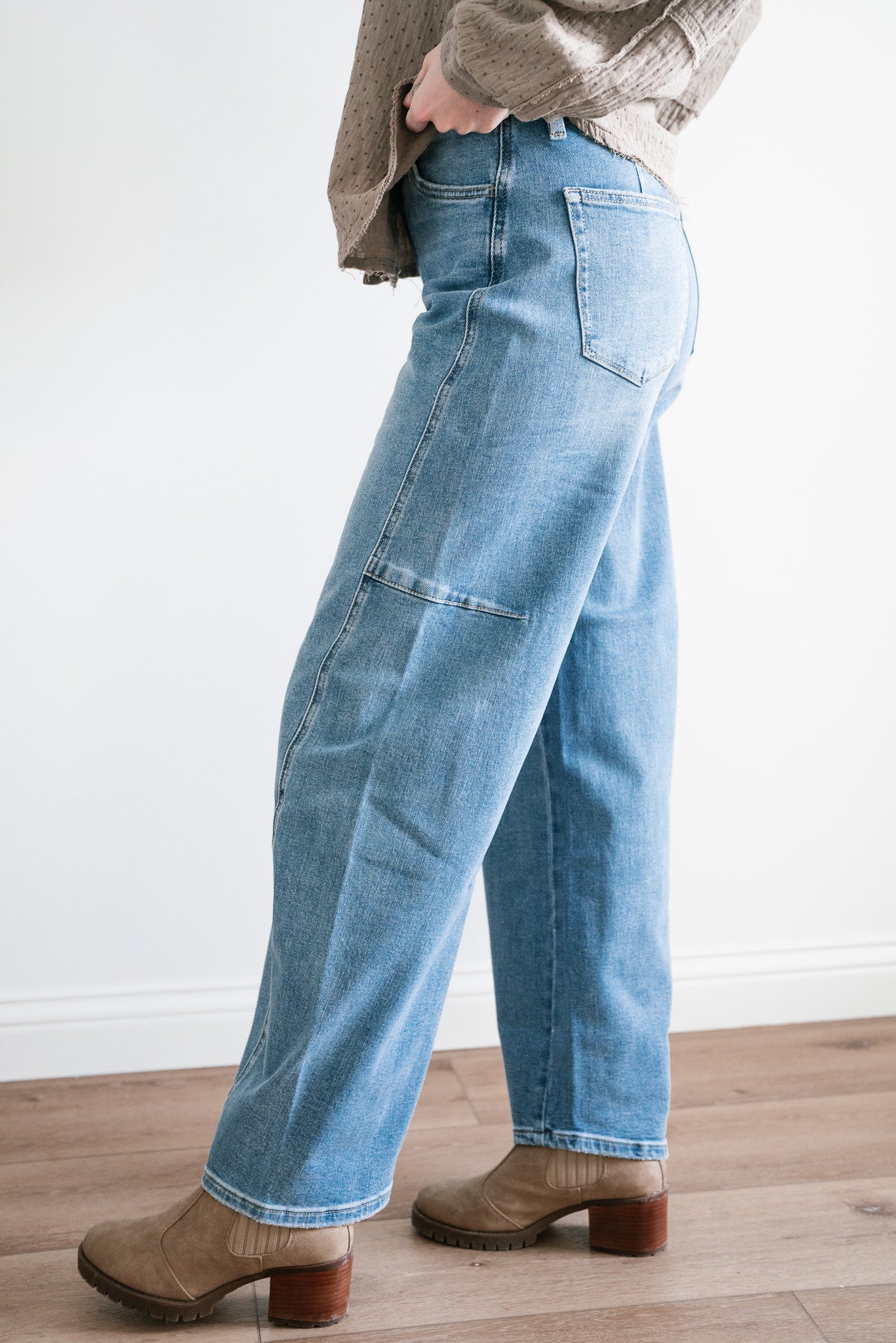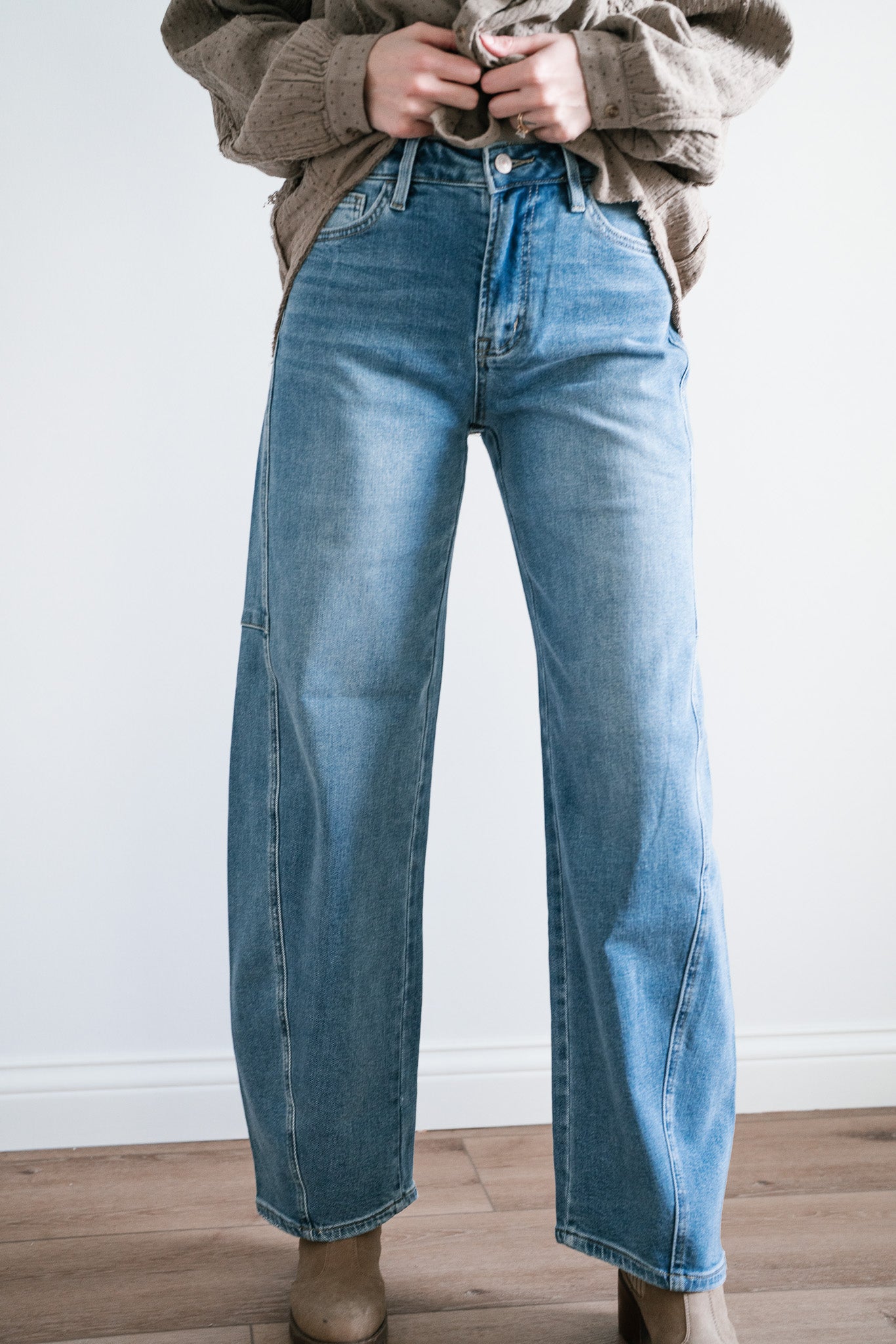 Step into timeless style and ultimate comfort with the "Lovervet Ellora High Rise Wide Barrel Jeans". Designed with a flattering high-rise waist, these jeans feature a contemporary wide-barrel silhouette that strikes the perfect balance between structure and ease. Subtle seam details along the legs add a touch of refinement to this laid-back look, while the light-wash denim makes them an effortless choice for every season.