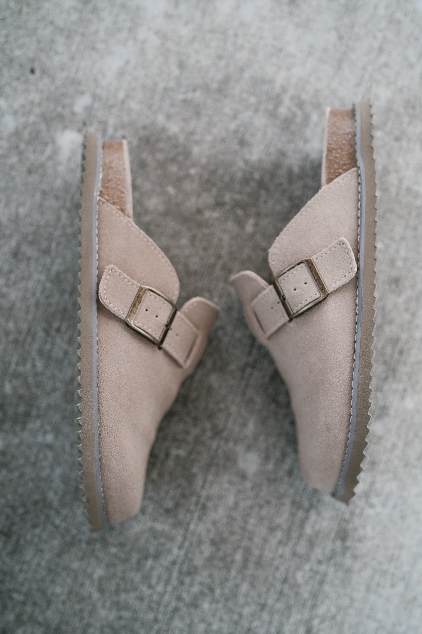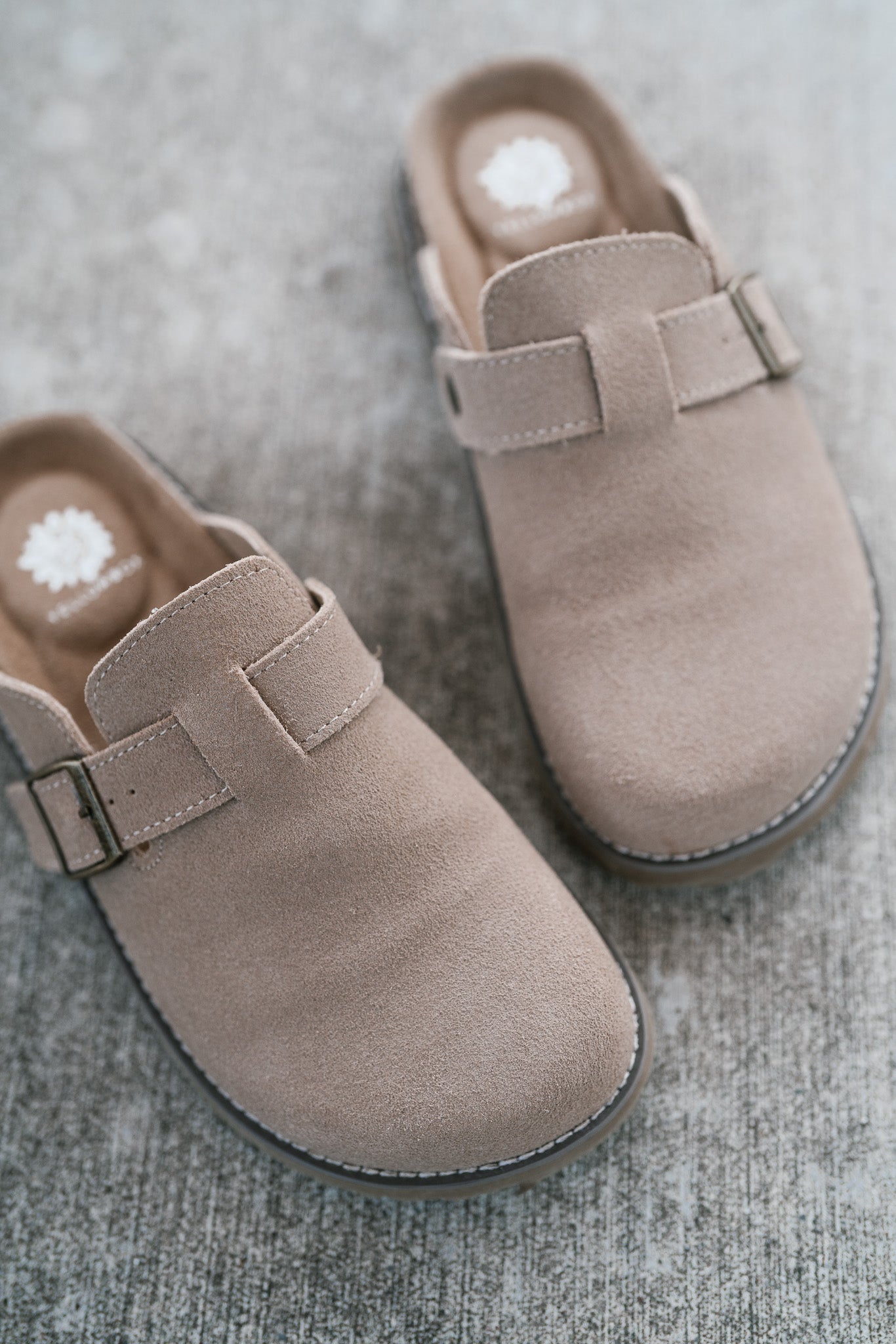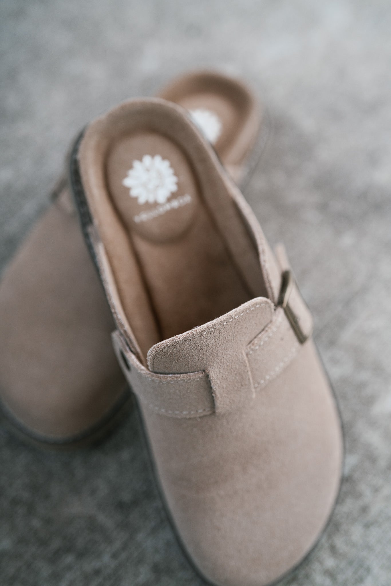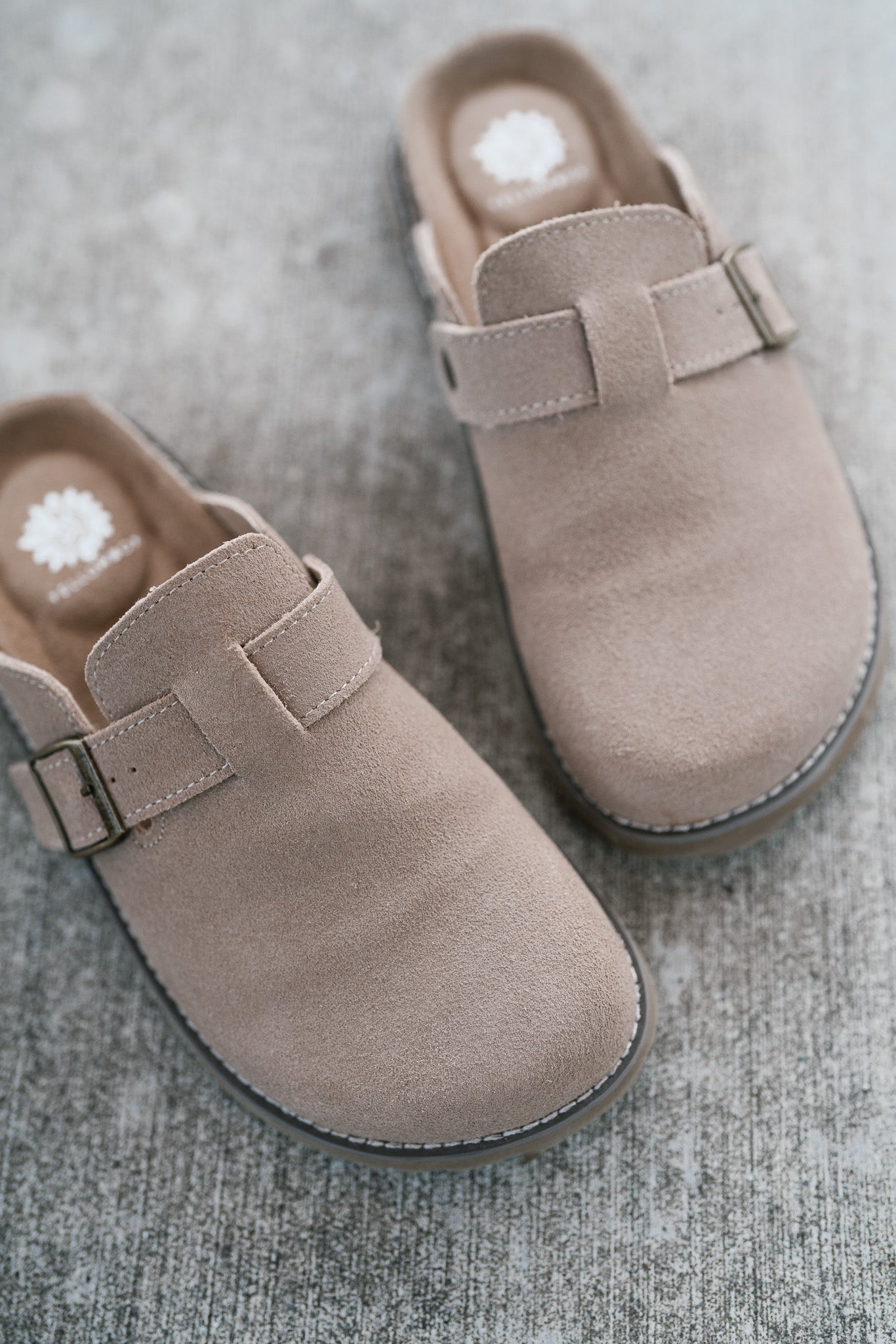 Step into timeless style and all-day comfort with the Maible Suede Clog in Taupe. Crafted from buttery-soft suede, these clogs feature a classic rounded toe, sturdy wooden-inspired sole, and an easy slip-on design for effortless wear. The warm taupe hue pairs beautifully with everything from cozy fall knits to breezy spring dresses, making them a versatile year-round staple. Designed for both fashion and function, the Maible Suede Clog offers a cushioned footbed and durable construction, perfect for casual days, weekend outings, or adding a rustic-chic touch to your look.